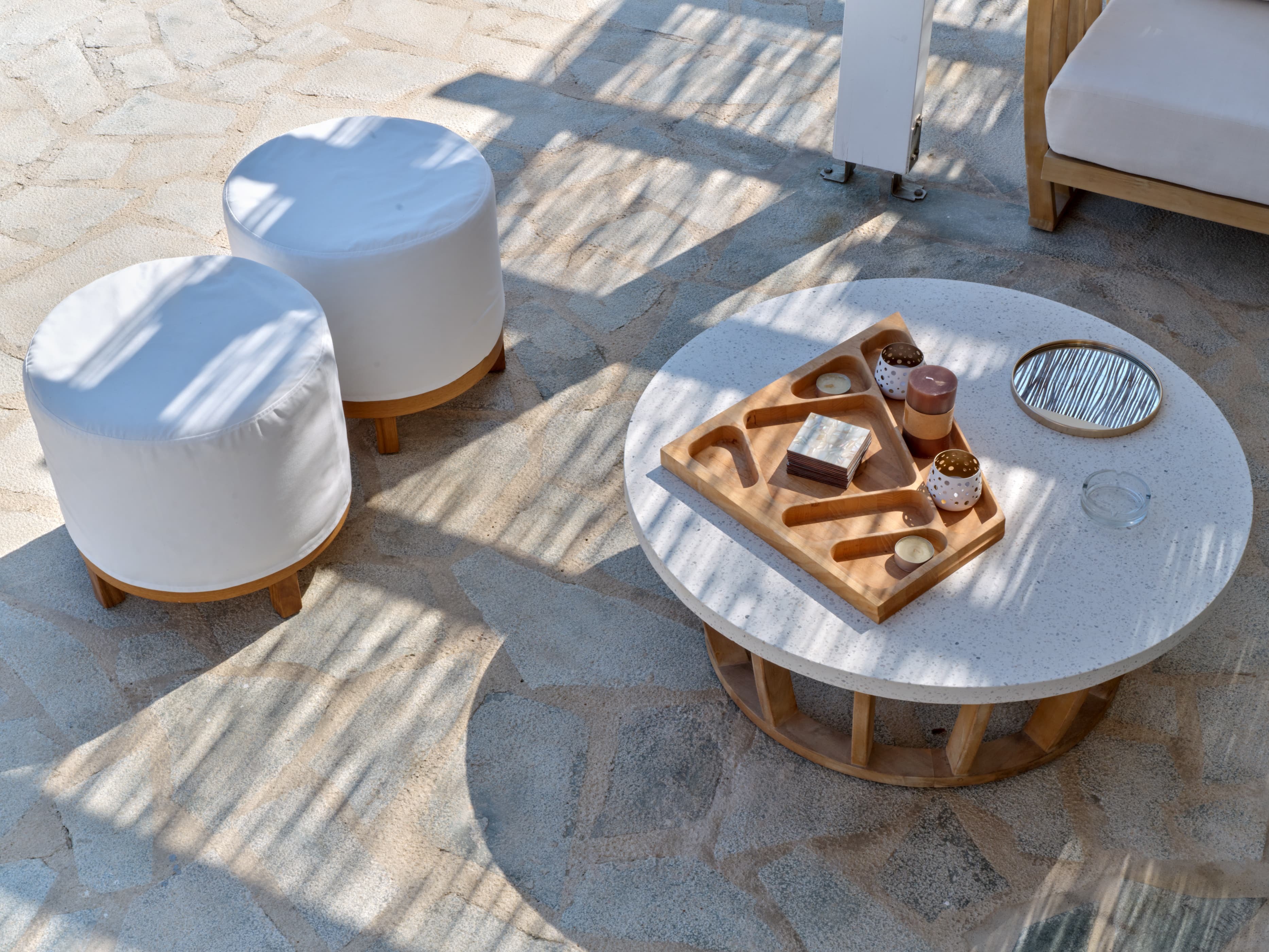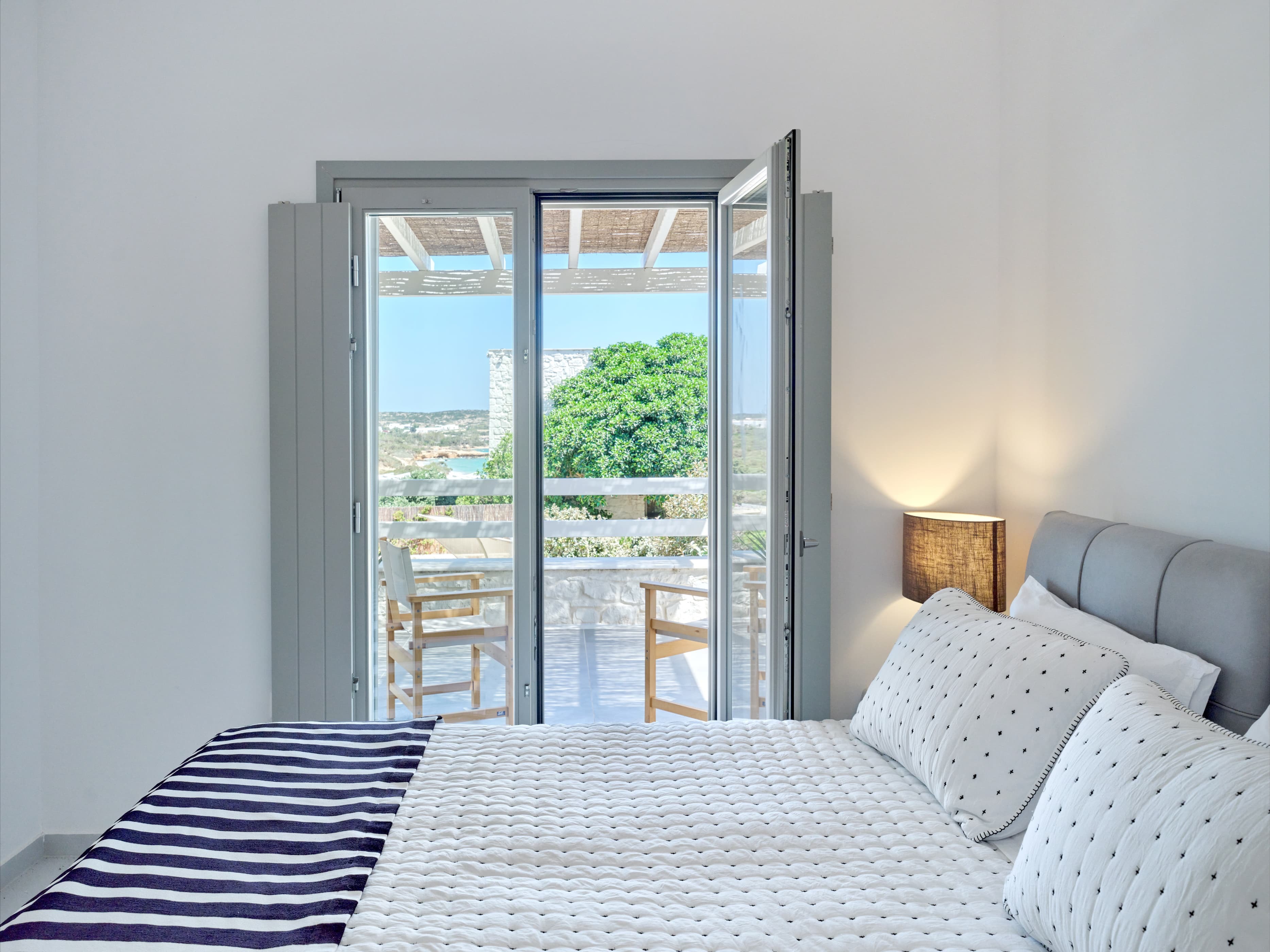 Set at the edge of Santa Maria Bay, overlooking the crystal blue waters of the Aegean, Aethera Bay offers a perspective that feels both expansive and quietly composed. From this position, the coastline unfolds effortlessly, with uninterrupted sea views and sunsets that settle slowly across the horizon.