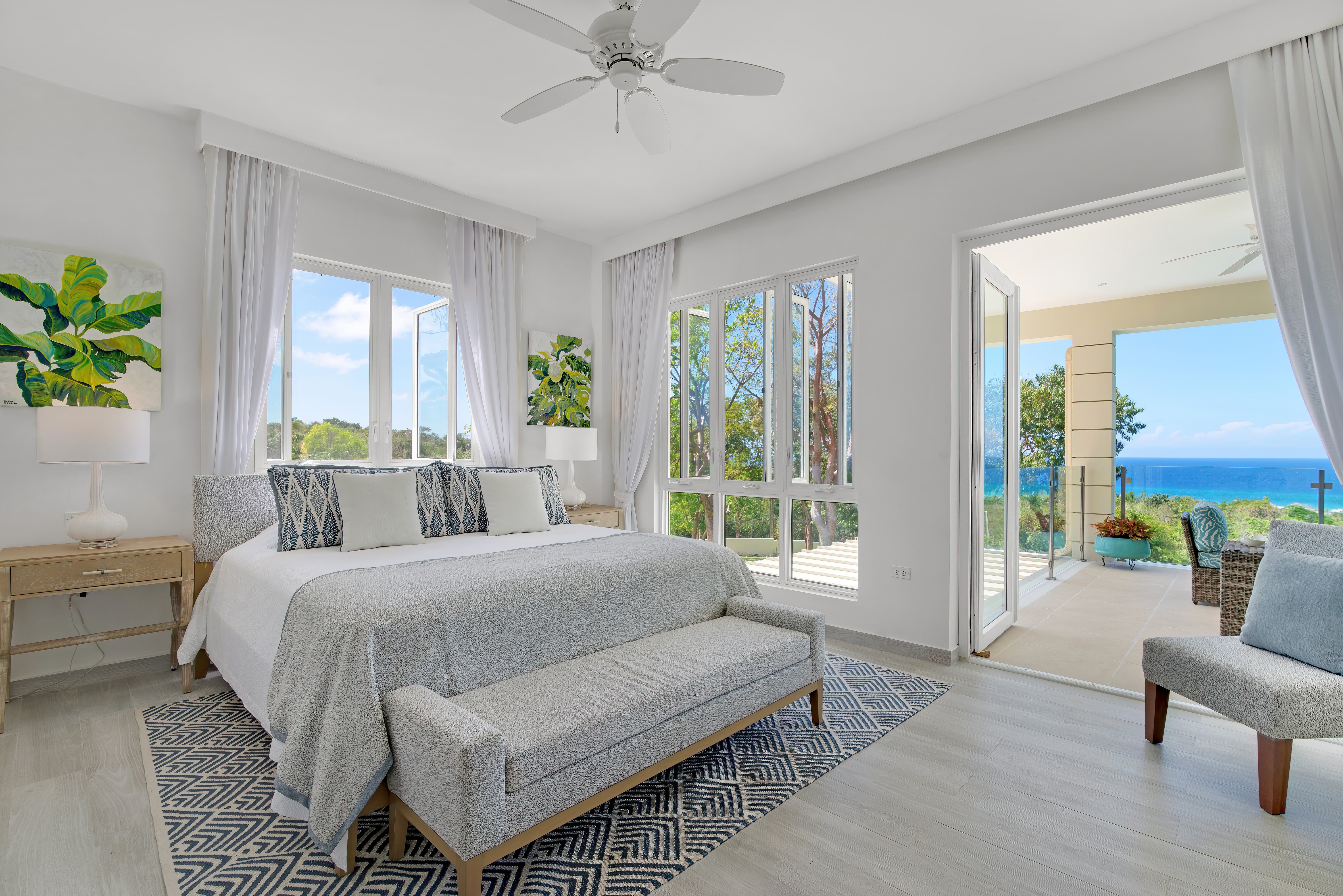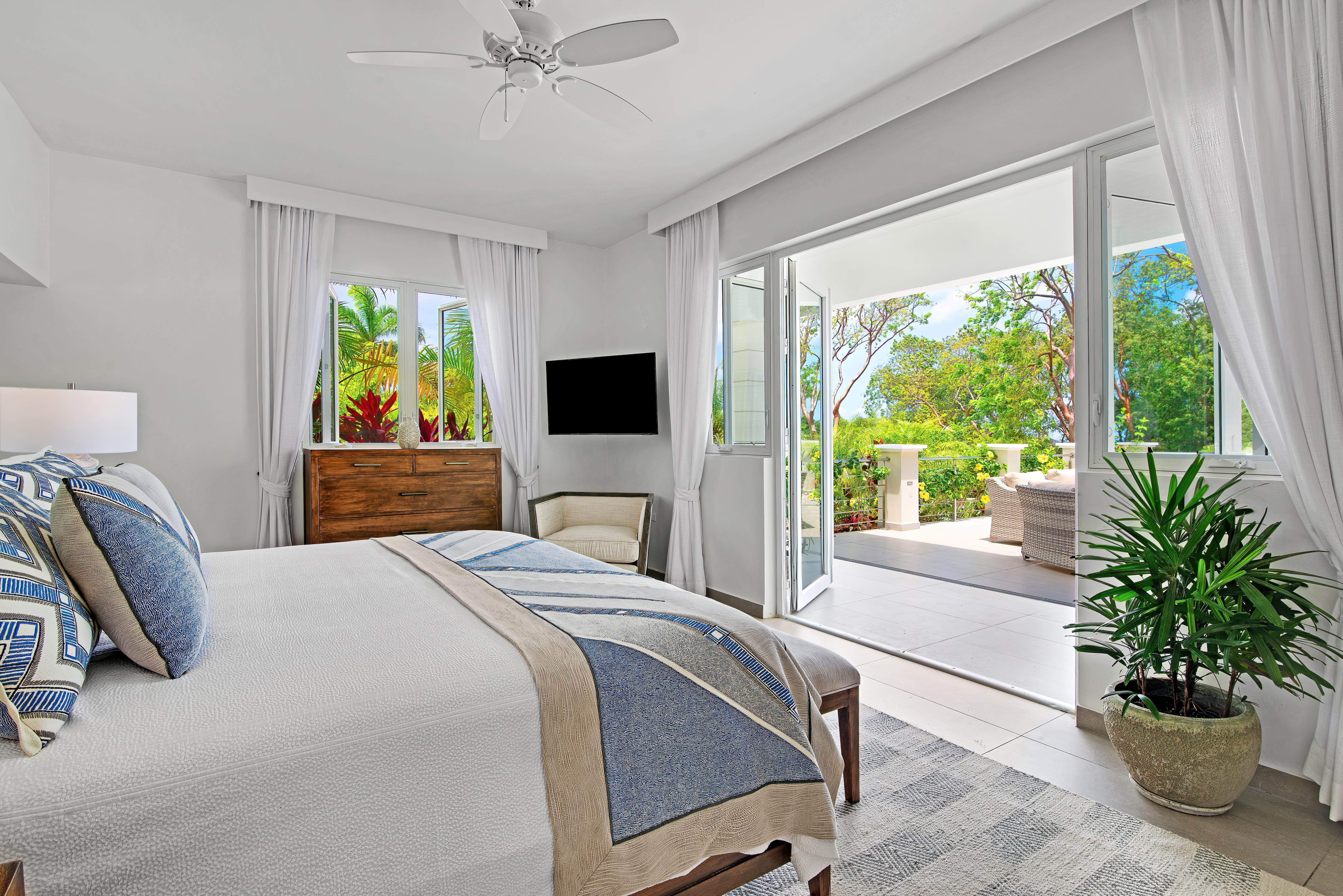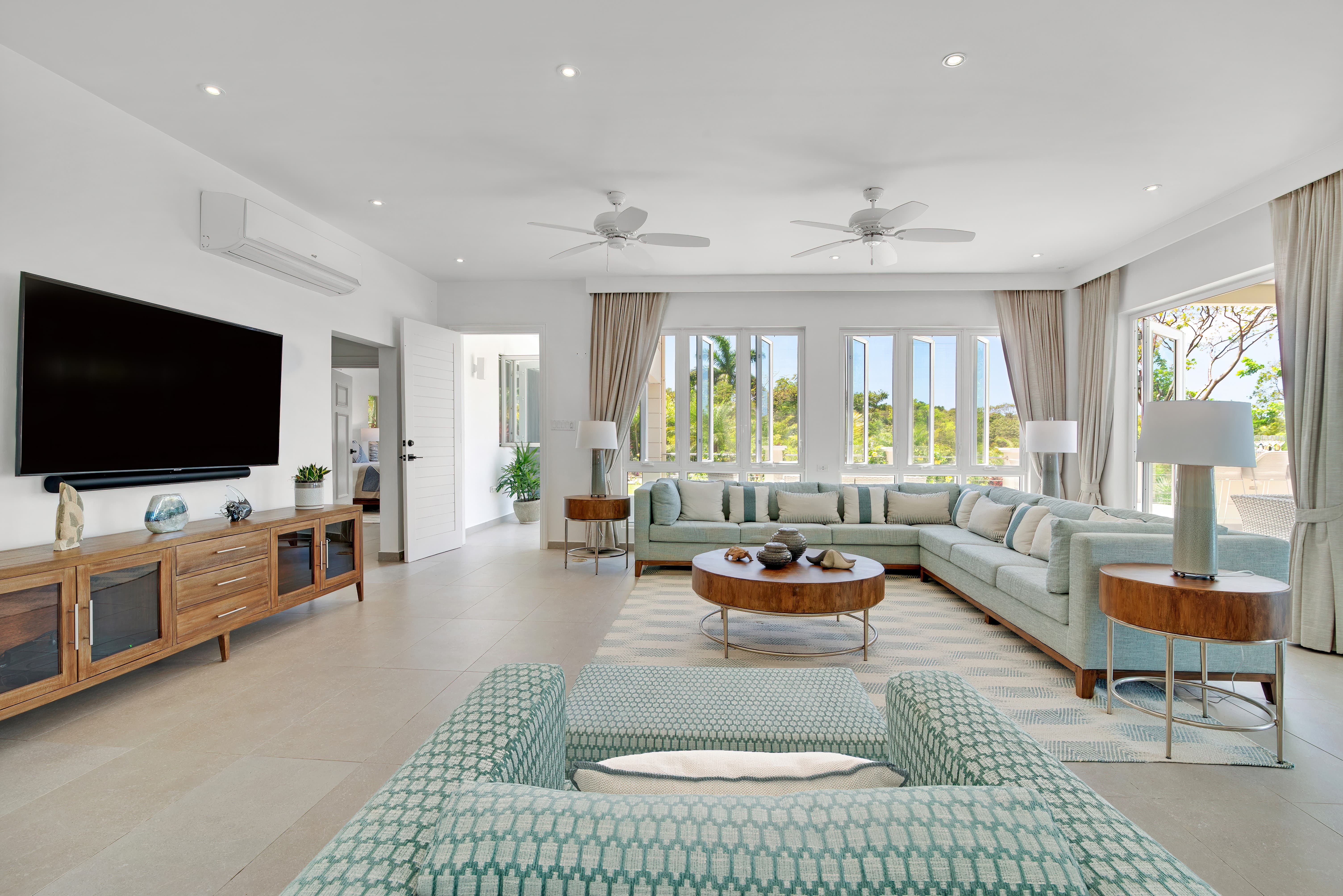 Air conditioning is provided throughout the villa to ensure comfort year round, complemented by ceiling fans that encourage natural airflow and cooling.