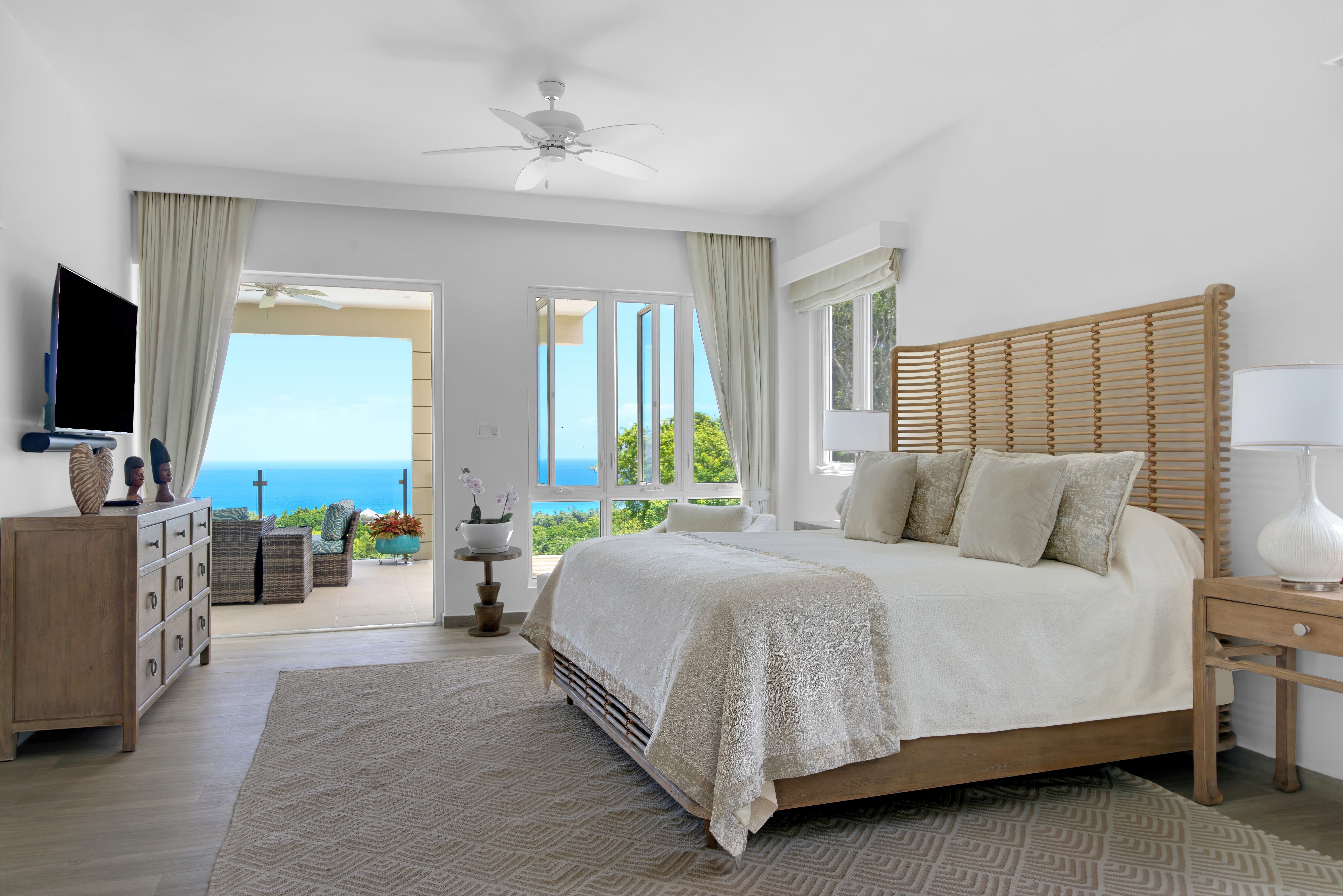Bougain Villa Jamaica sits above the shimmering waters of Half Moon Bay on Jamaica’s north coast, a modern Caribbean sanctuary where light, breeze, and panoramic sea views shape every moment. Gracefully perched on its hillside setting, the villa’s open concept interiors draw the outdoors in, inviting sunlit days and warm evenings defined by unhurried rhythms and the soft sound of waves beyond.