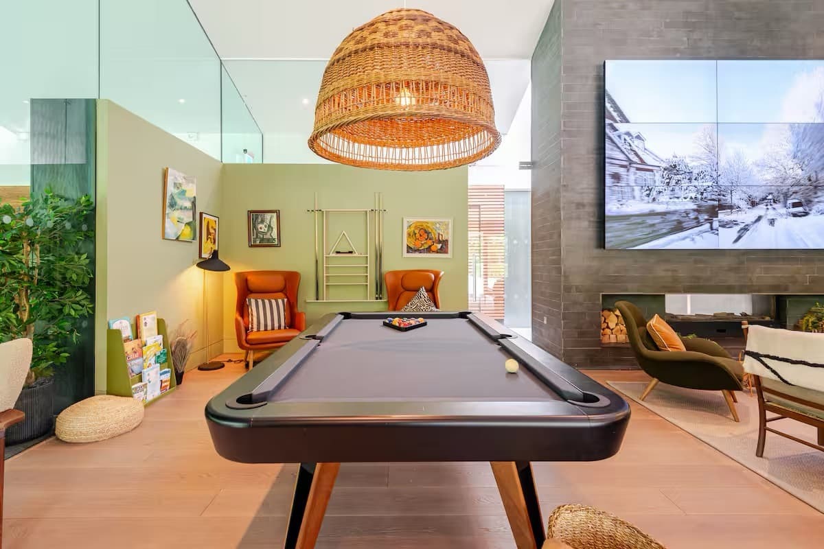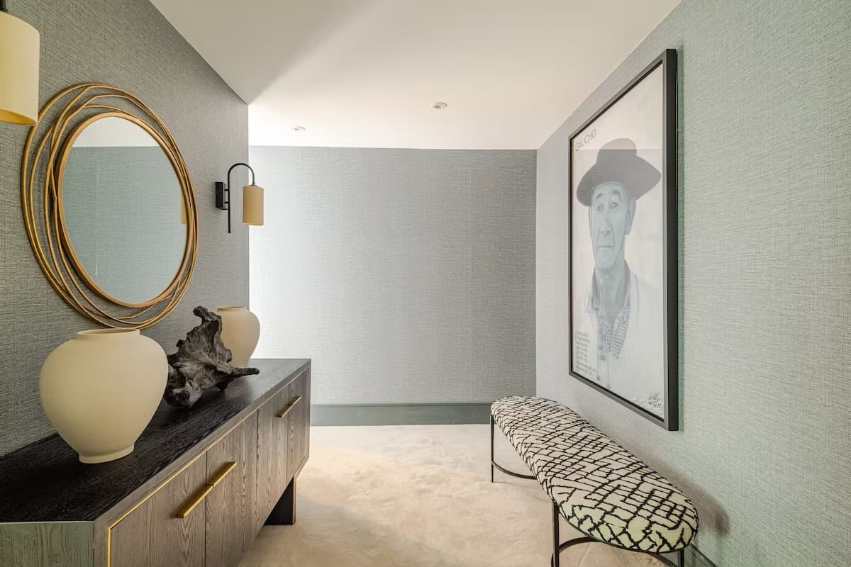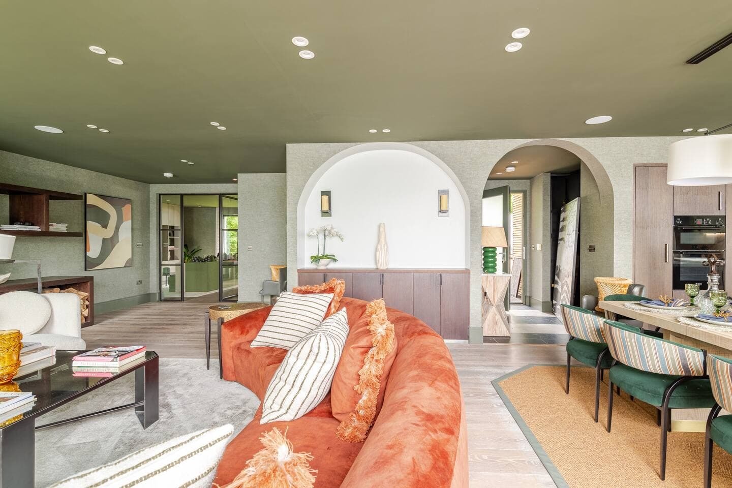 Bowmore Lodge offers generous, light filled living areas designed around the lake views. The main living space is open and welcoming, with large windows and doors that frame the water and allow daylight to pour in throughout the year. The atmosphere is calm and refined, combining modern classic design with comfortable furnishings that suit both relaxed family time and social gatherings. At 3,500 sq ft, the house feels spacious without losing its sense of warmth.