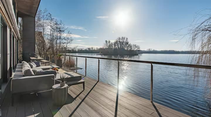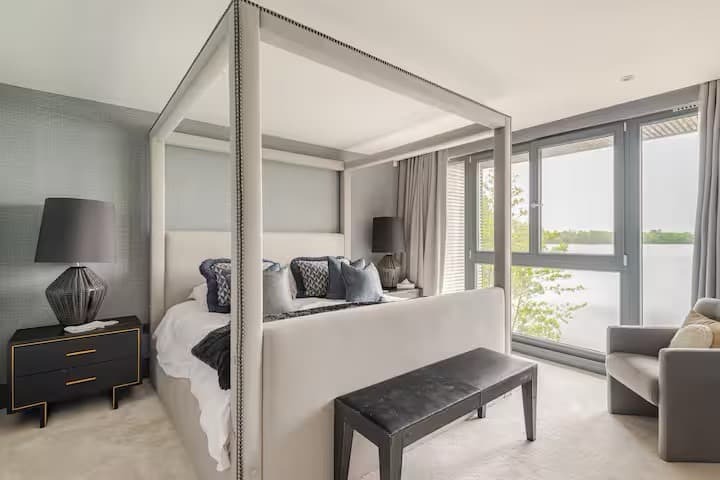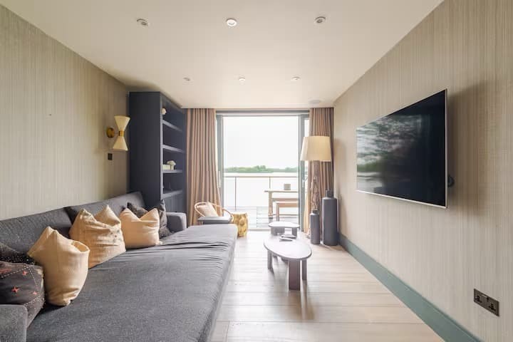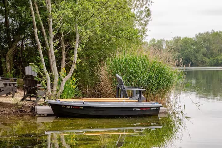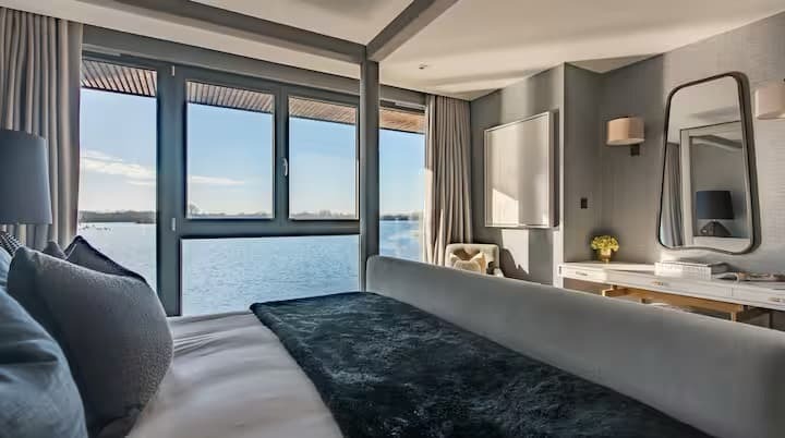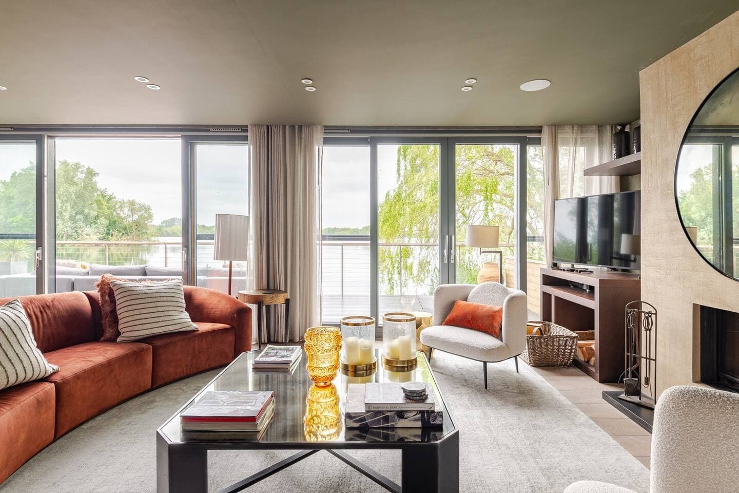 Bowmore House is an elegant lakeside retreat set within the heart of the Cotswolds, offering a rare combination of calm waters, open skies, and a sense of quiet immersion in nature. Positioned directly on the edge of the lake, the house enjoys uninterrupted views and a feeling of gentle seclusion, where days unfold at a slower, more considered pace.