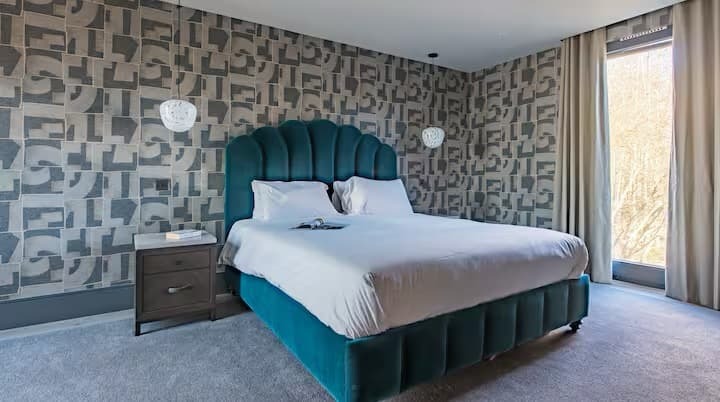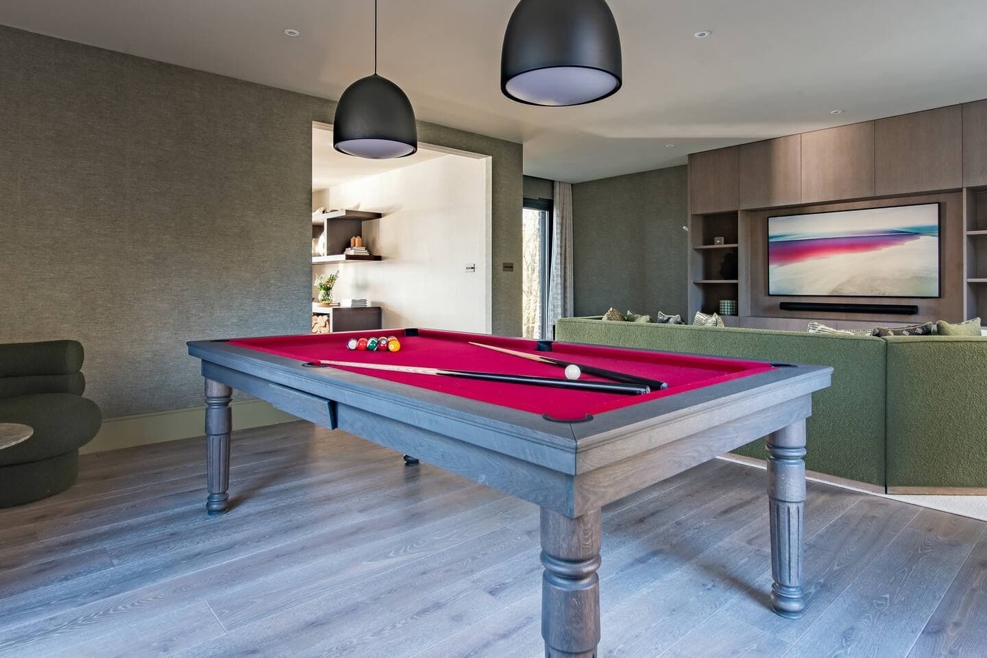 The lodge accommodates up to eleven guests across five well appointed bedrooms. Bedrooms are designed as private retreats, with a mix of ensuite and family bathroom arrangements to suit groups of different compositions. Storage is ample, making the house practical for longer stays. Laundry facilities are available within the property, adding ease and convenience for extended visits.