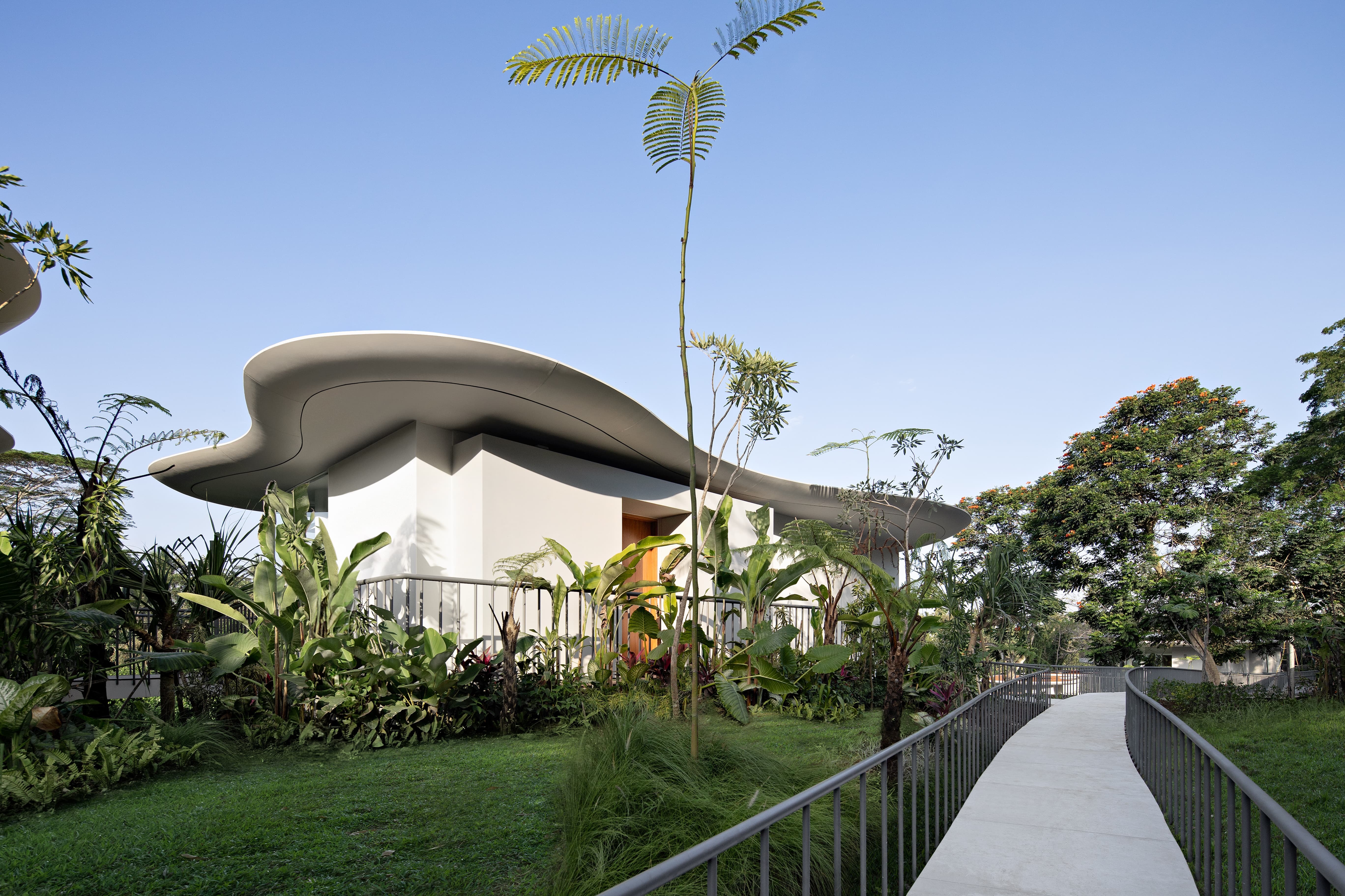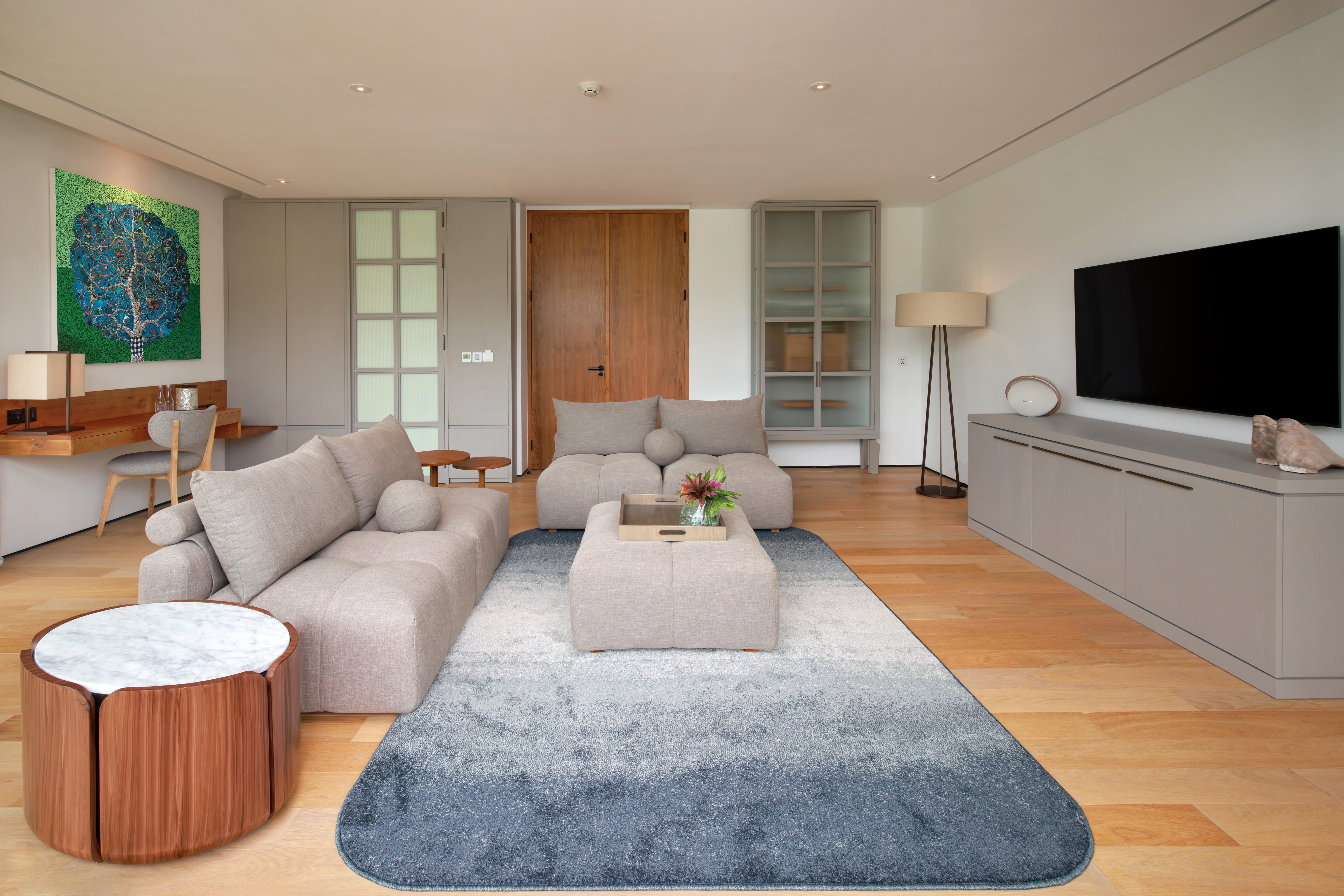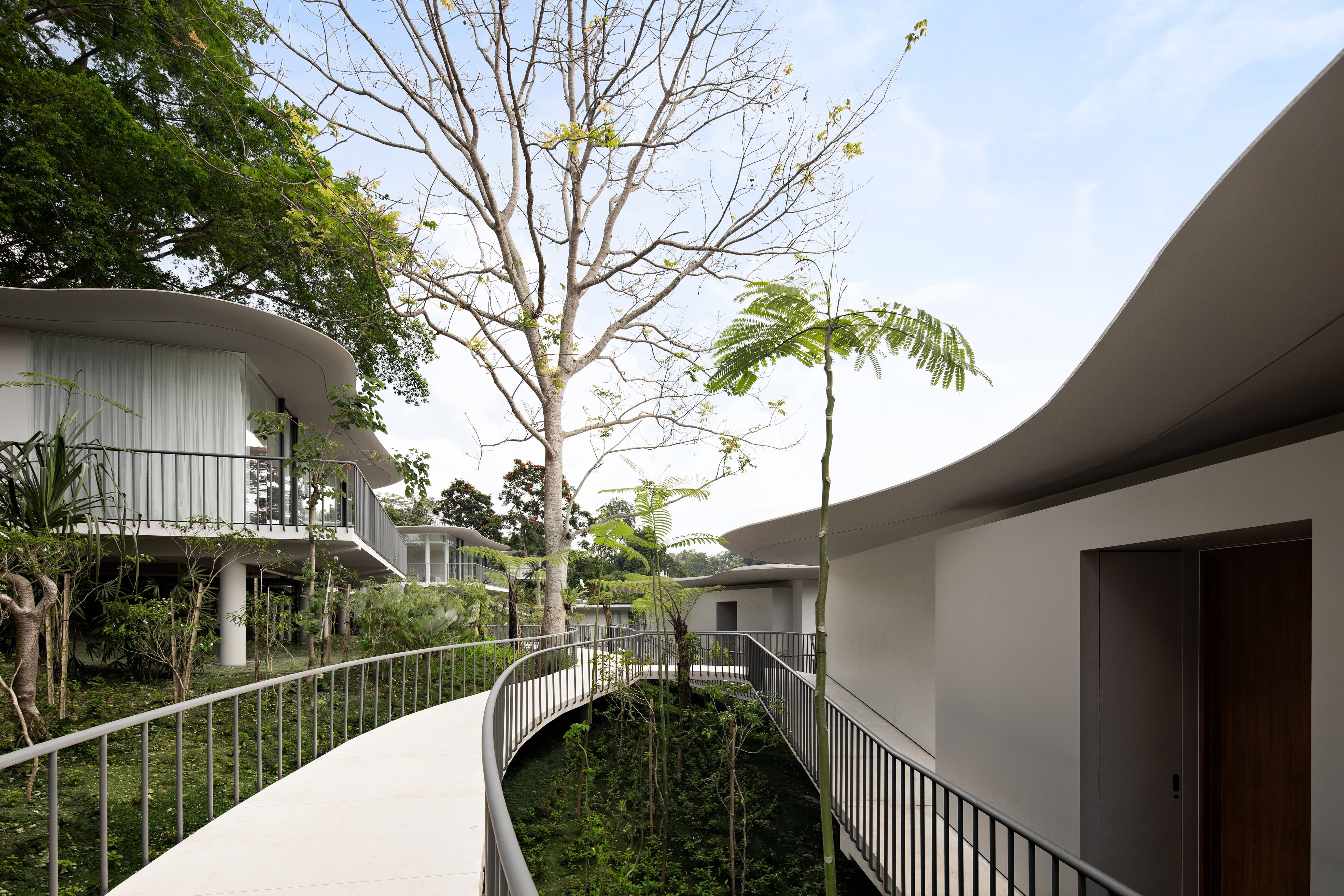 This private estate offers a refined sanctuary where curved modern architecture meets traditional Balinese influences. Villas sit quietly among the surrounding greenery, each designed as a self-contained retreat with spacious living areas, private terraces, and panoramic views across jungle valleys or river ravines. Interiors combine natural textures, soft tones, and thoughtful craftsmanship, creating an atmosphere that feels both sophisticated and deeply connected to nature.