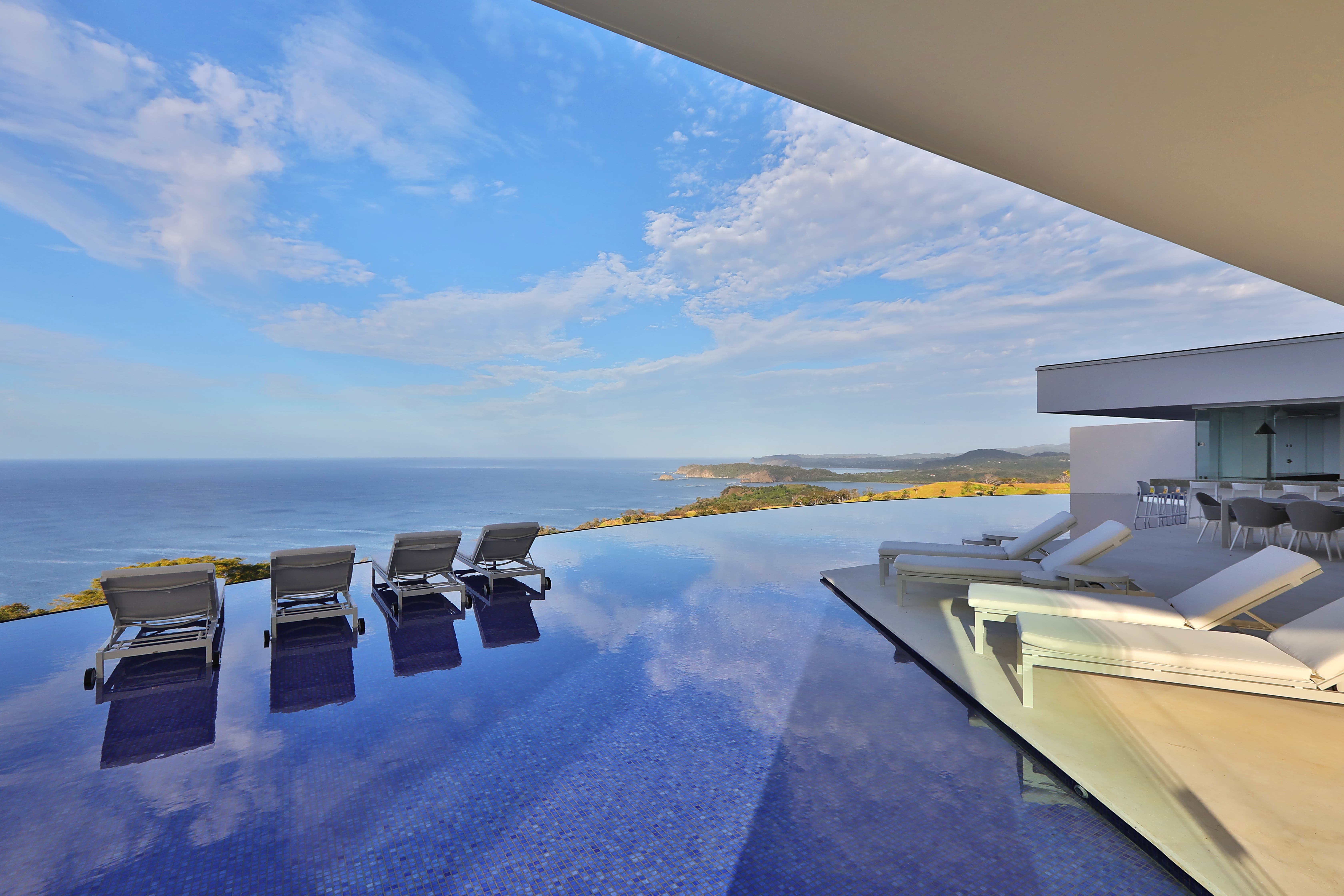 Carrillo Ridge Estate operates as an exclusive fully staffed private villa accommodating up to sixteen guests across eight suites. The property is rented on an exclusive-use basis, ensuring complete privacy for guests throughout their stay.