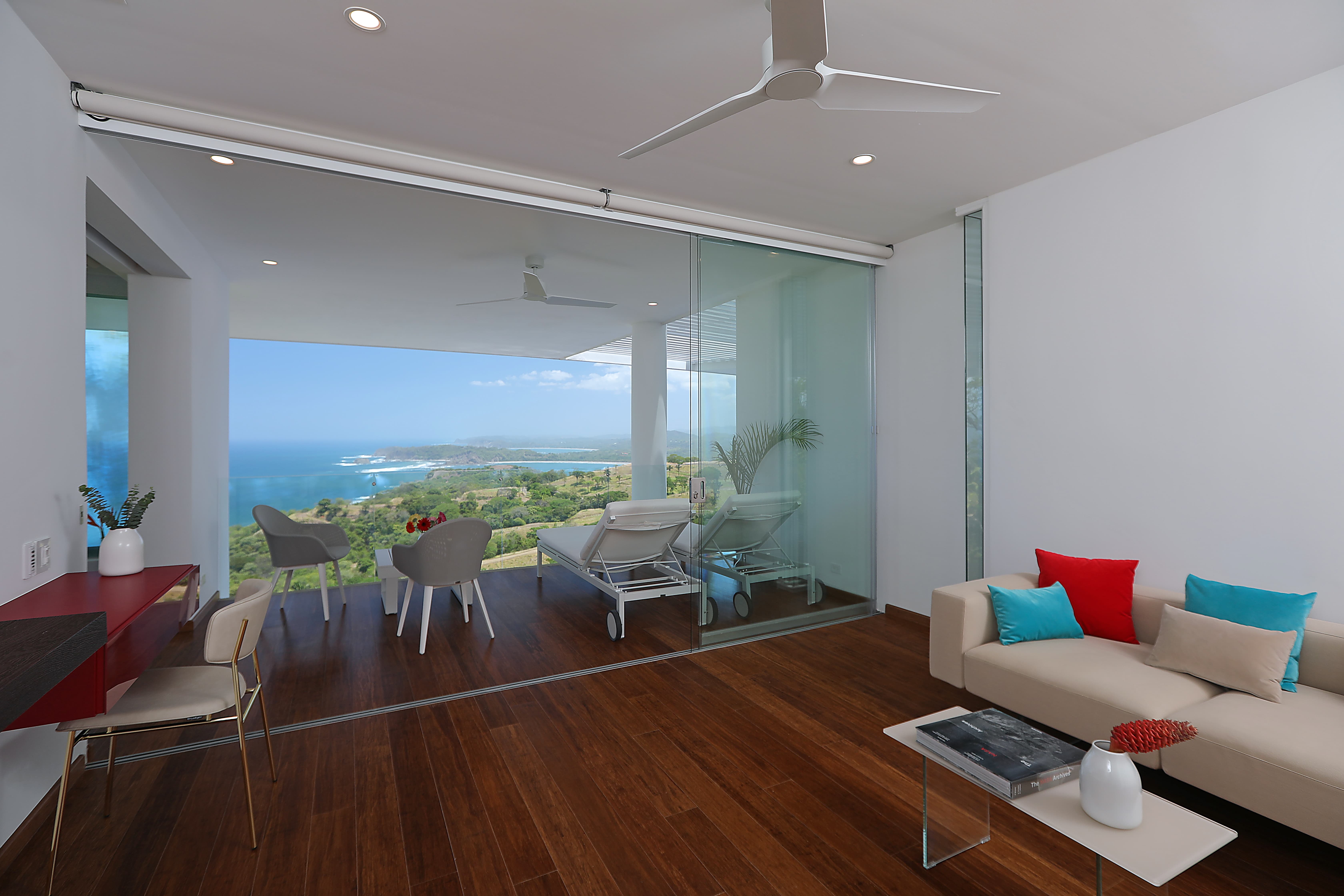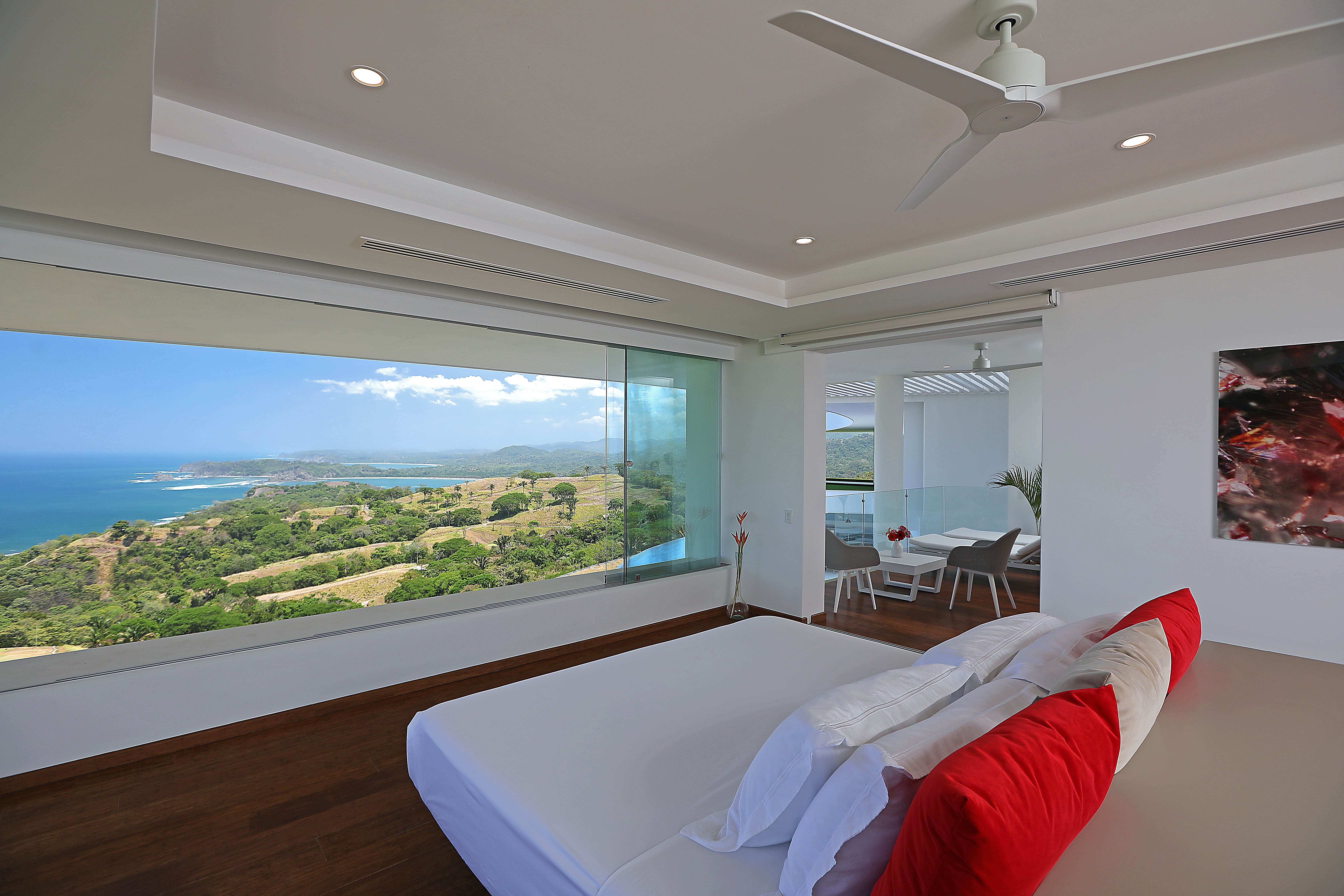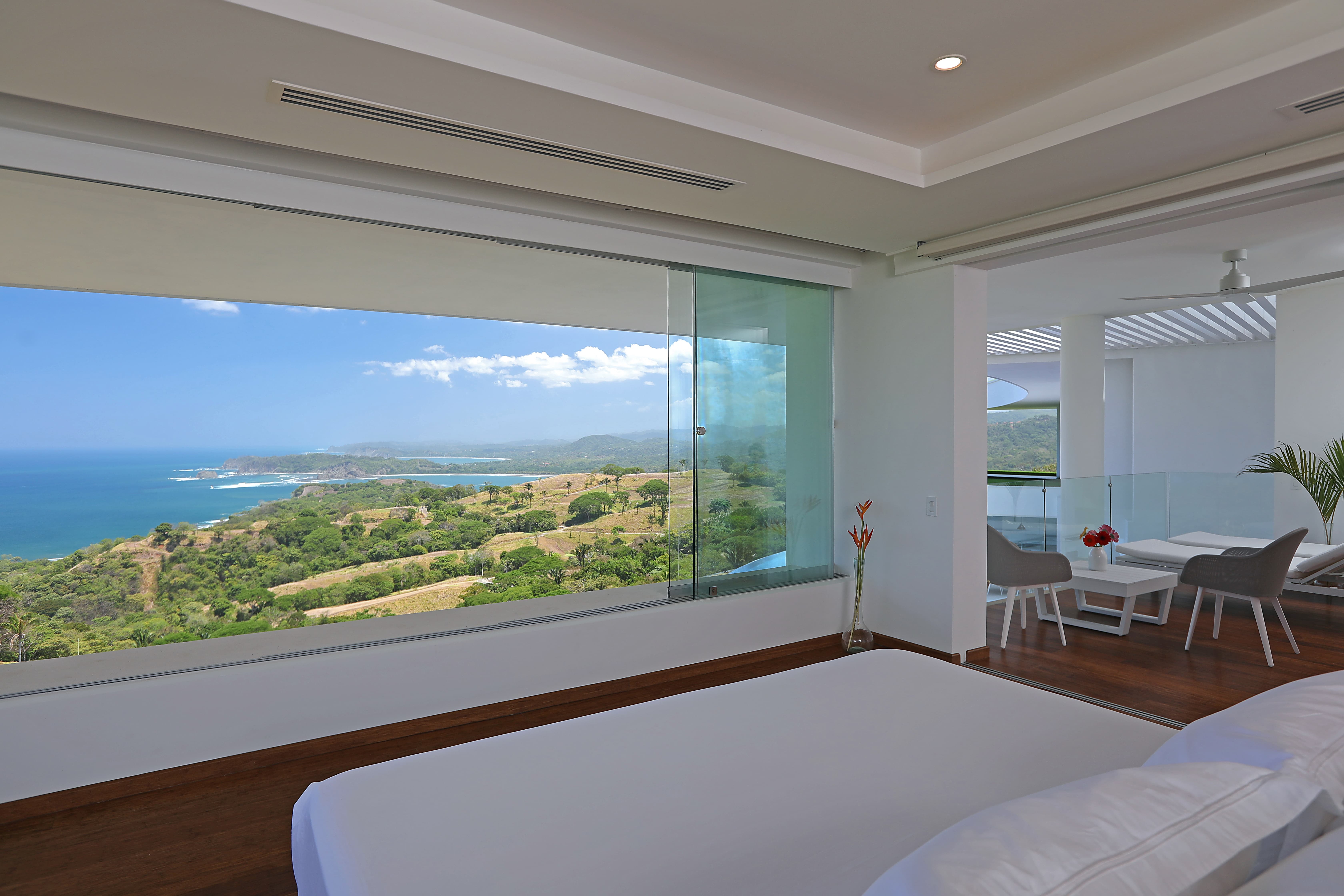 All suites are equipped with air conditioning and ceiling fans to maintain a comfortable climate year-round. Large windows and open-air architecture allow natural breezes from the Pacific Ocean to circulate through the living spaces.