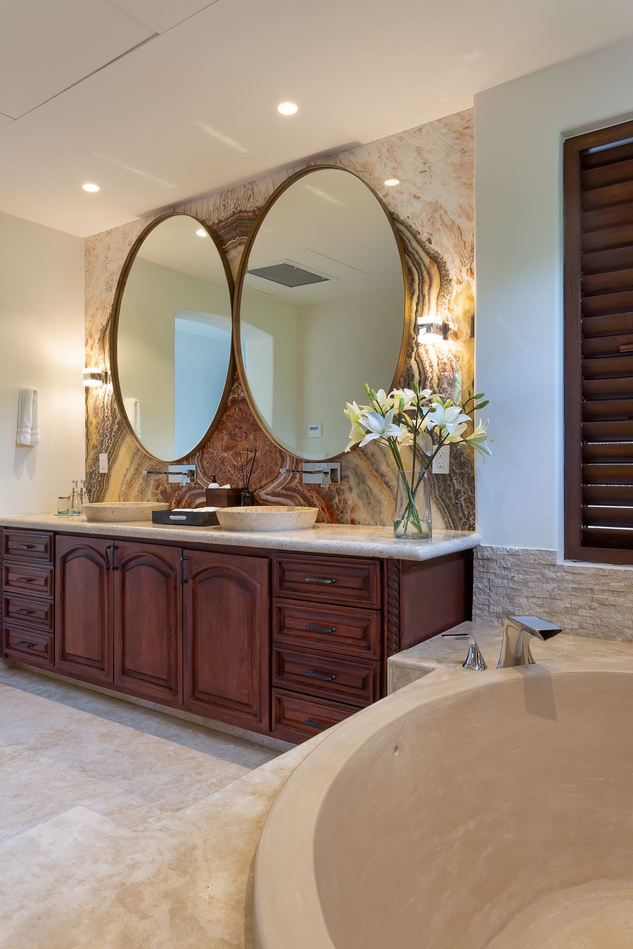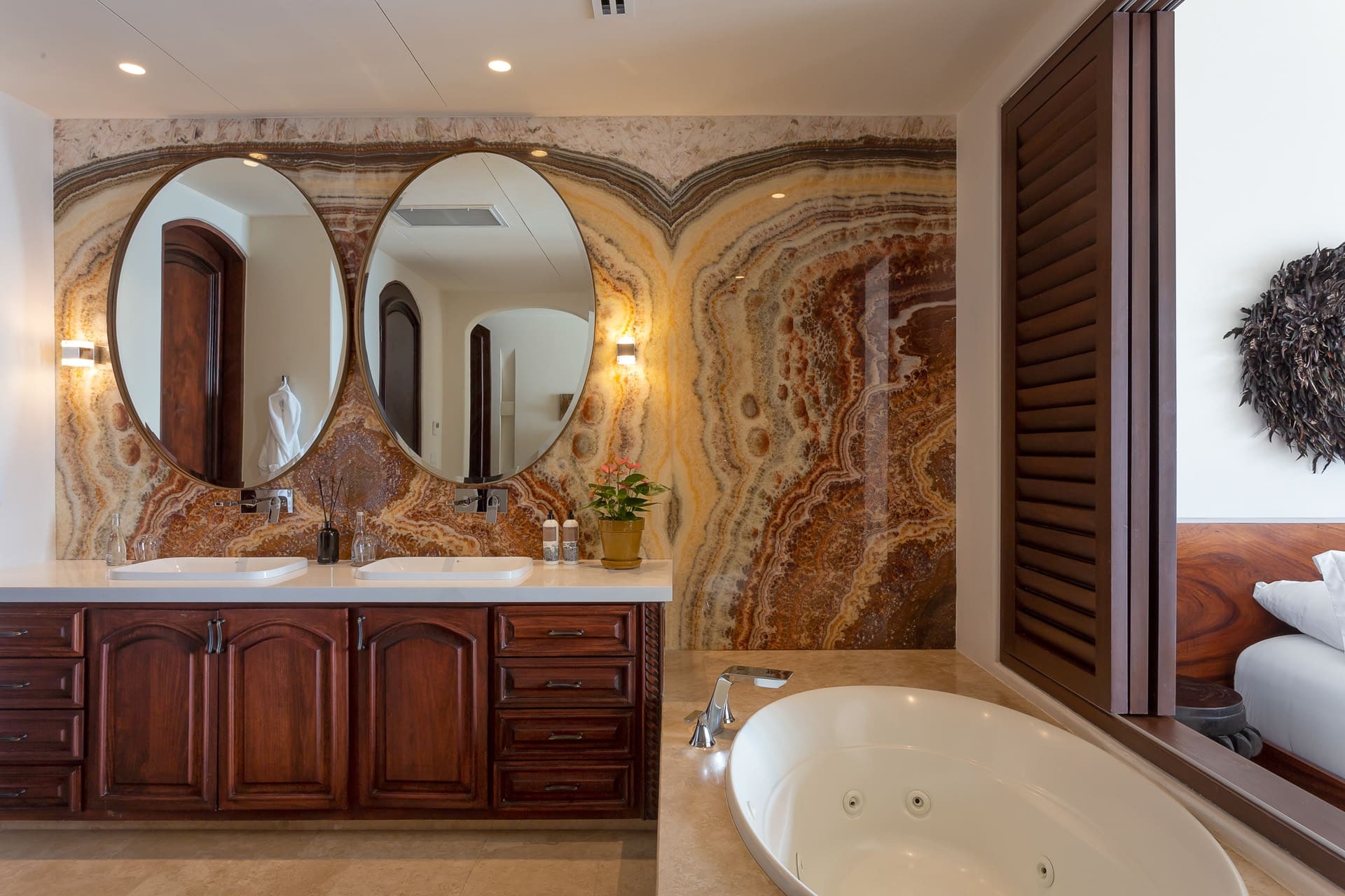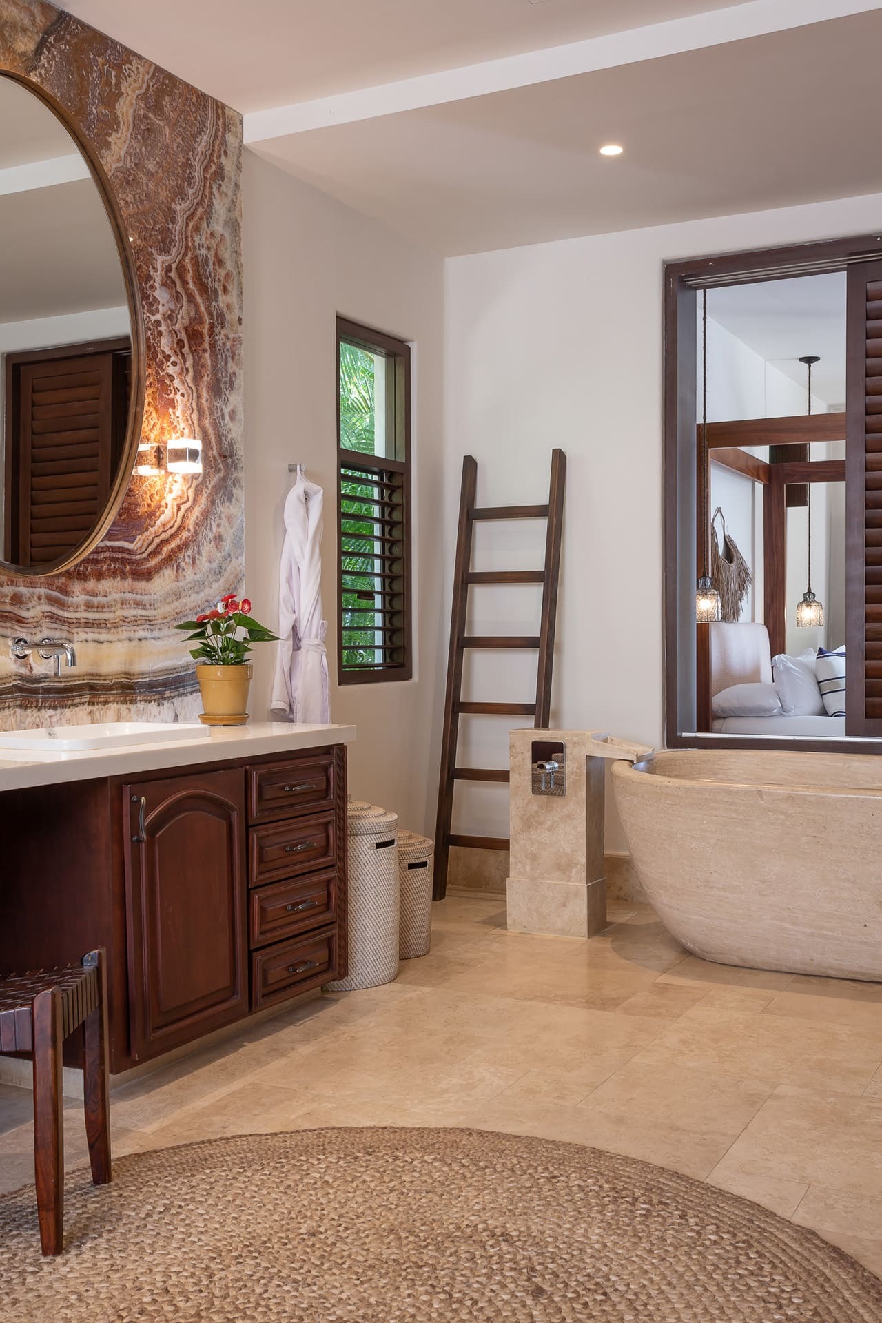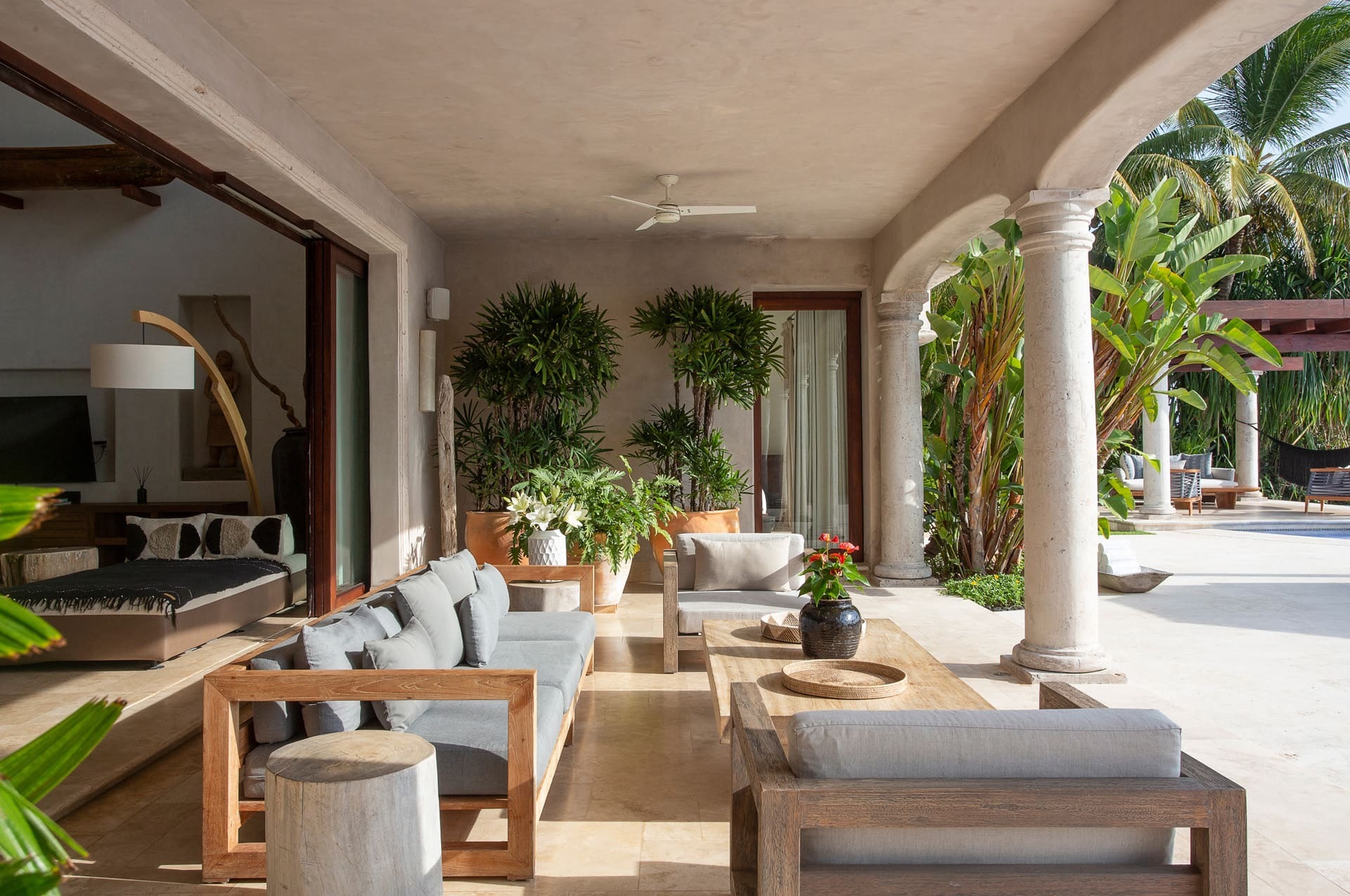 The villa offers multiple open-plan living areas designed to flow seamlessly to the terraces and pool. Large sliding glass walls open the interiors to ocean air and light, creating relaxed social spaces for gathering, dining, and unwinding with uninterrupted sea views.