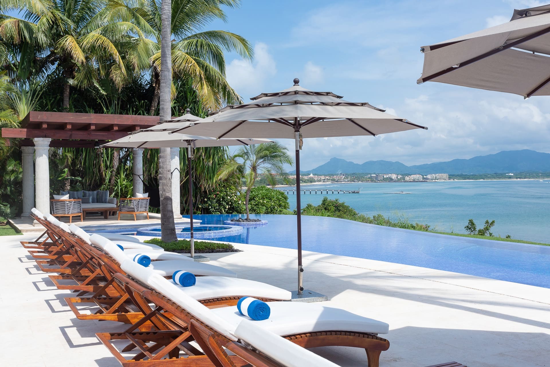 The villa is set within the exclusive Punta Mita peninsula, overlooking the Bay of Banderas. Guests enjoy a private oceanfront setting with resort-level services nearby.