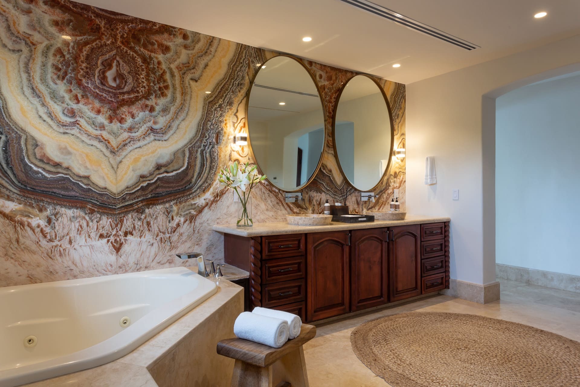 The property accommodates up to 12 guests across 6 well-appointed bedrooms, including a separate casita bedroom for added privacy. Bedrooms are arranged across lower and upper levels for a balanced mix of togetherness and retreat. On-site housekeeping supports stays, with laundry assistance available.