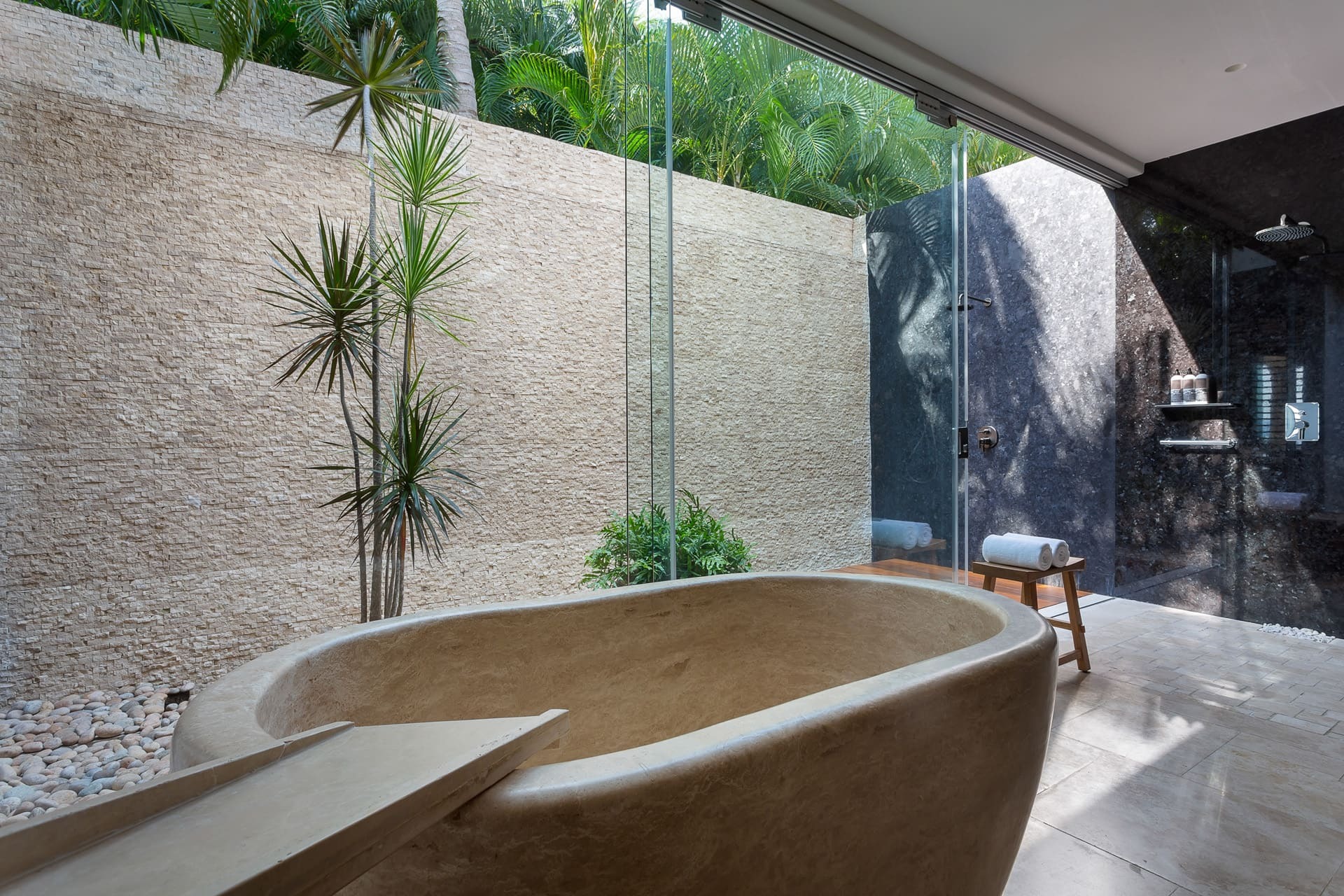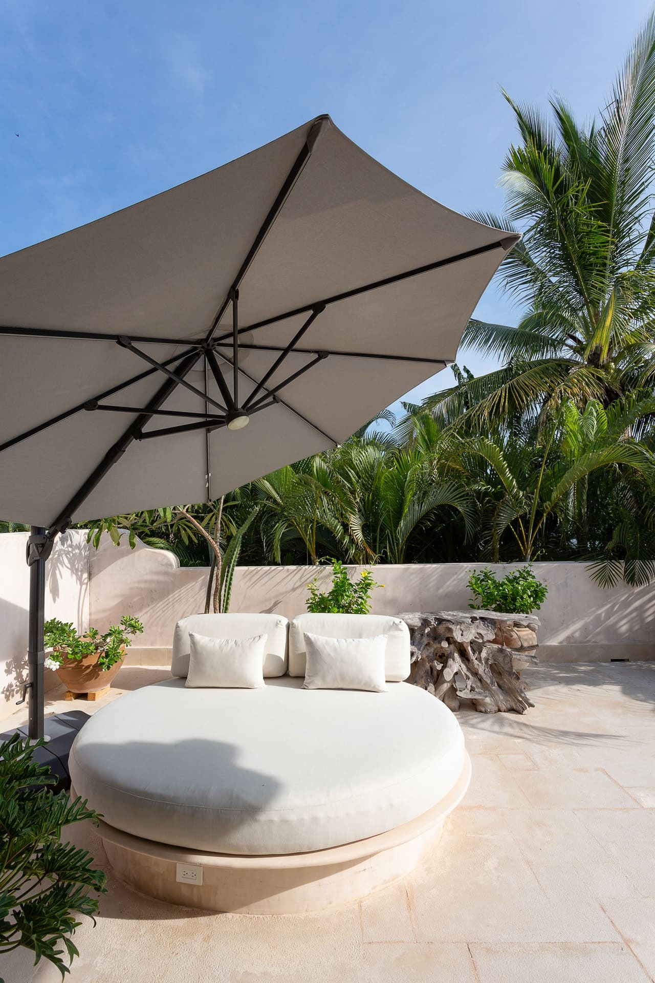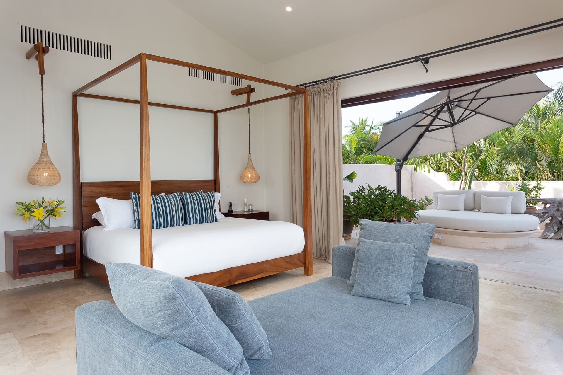 Outdoor amenities include one oceanfront swimming pool, sun loungers, multiple terraces, and an alfresco dining area. Landscaped outdoor spaces are designed for slow mornings, poolside afternoons, and sunset evenings.