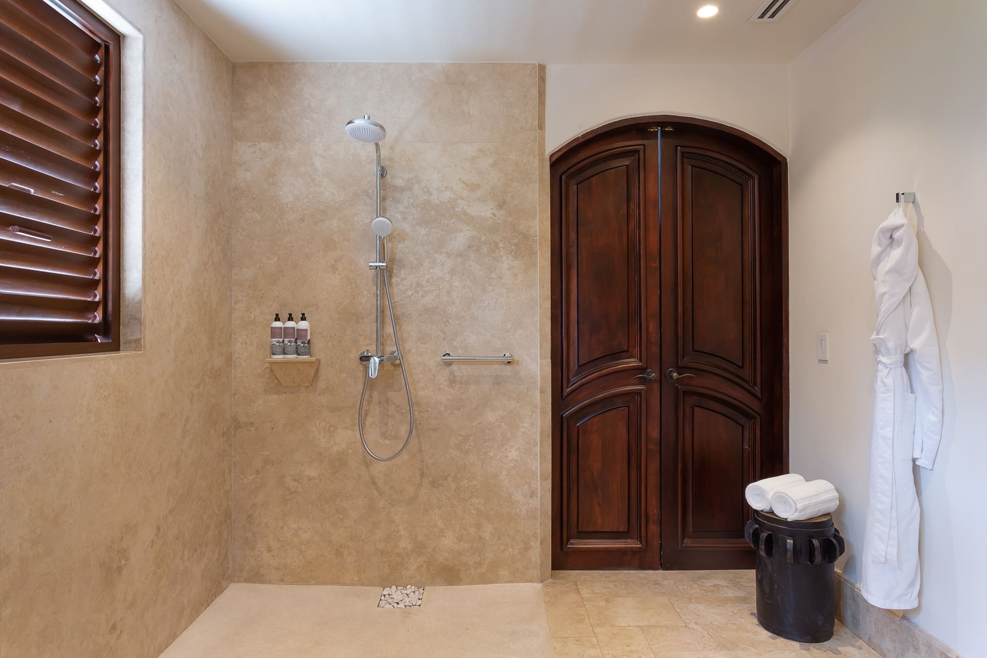 The villa includes 6 en-suite bathrooms, one per bedroom, finished to a high standard. An additional day bed in one king bedroom allows flexible sleeping for a child or extra guest.
