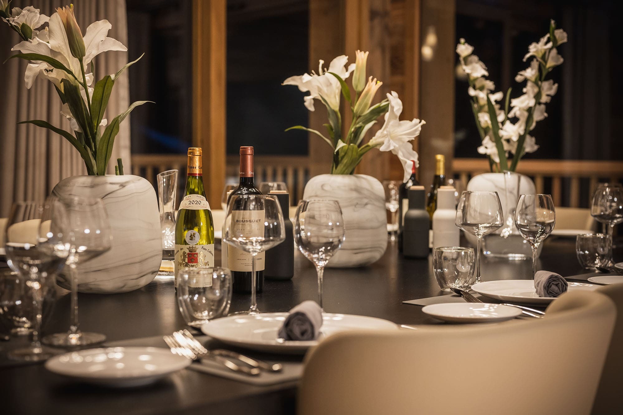 Chalet Infusion delivers a fully catered alpine experience, with dedicated service from a professional chef. On five out of seven nights, guests enjoy an indulgent schedule of hospitality, including à la carte or continental breakfast, afternoon tea, aperitif with champagne and canapés, and a four-course gourmet dinner paired with carefully selected wines. Children’s evening meals are also provided. A thoughtfully curated wine list and champagne selection accompany the dining experience, while a fully stocked bar offers both alcoholic and non-alcoholic drinks throughout your stay.