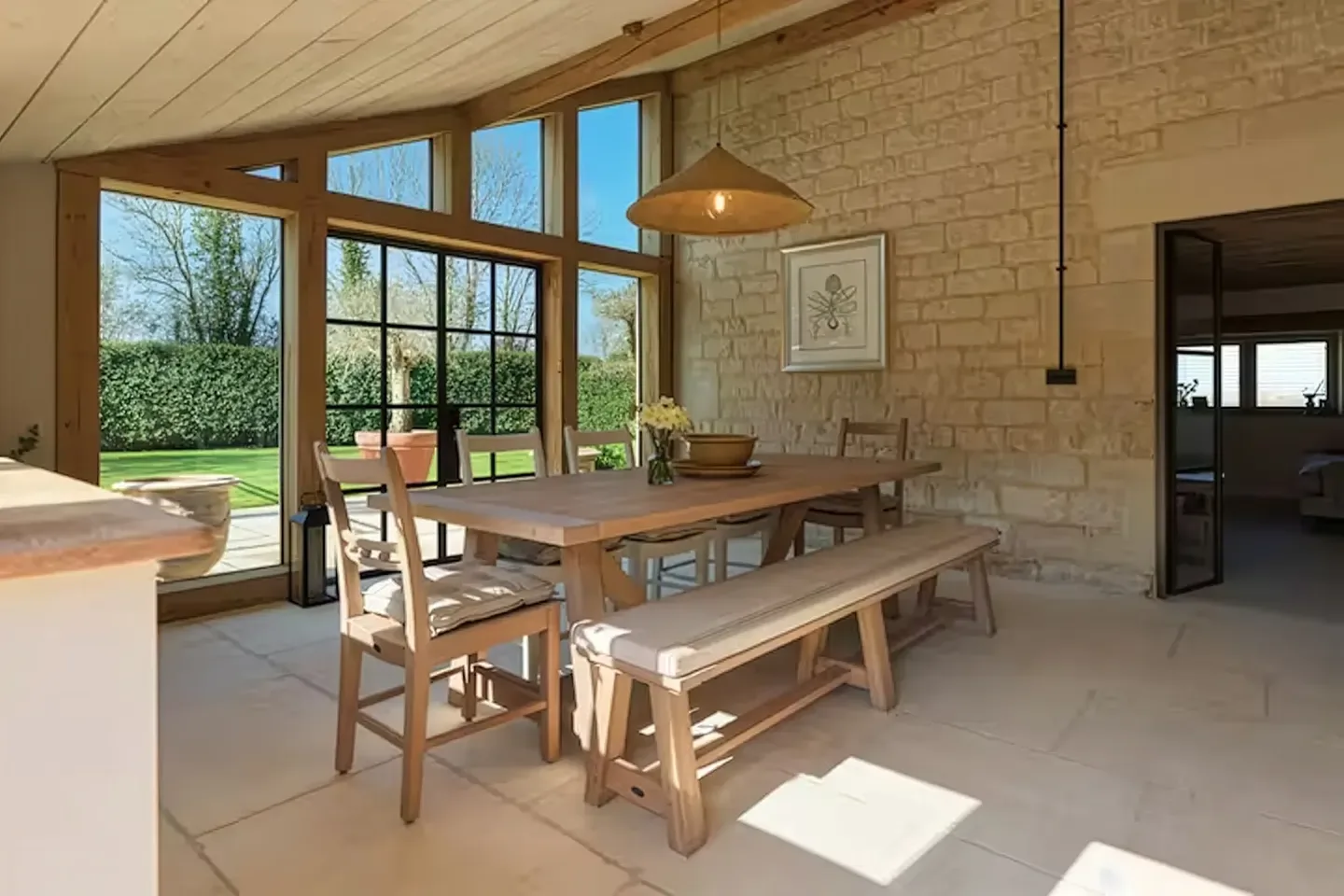 Nestled in the picturesque village of Bentham, Gloucestershire (GL51 4TZ), this charming barn is enveloped by the tranquil beauty of the Cotswold hills and