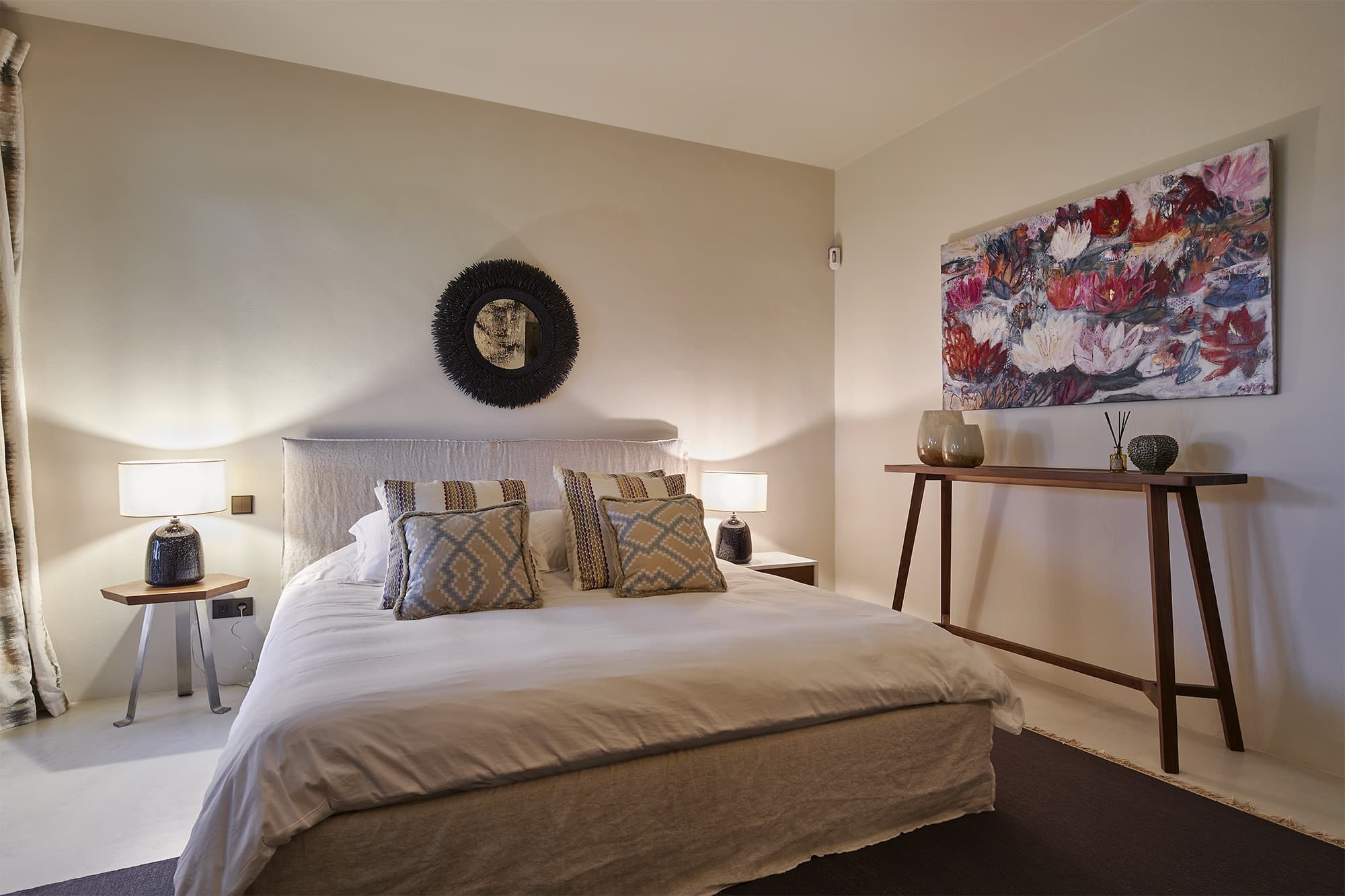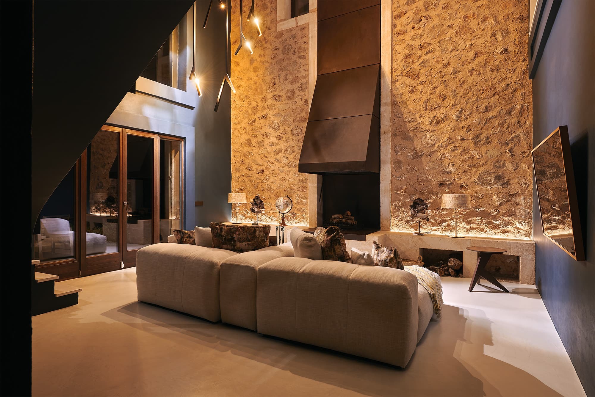 Located near Randa in the heart of Mallorca, the finca enjoys a peaceful countryside setting with panoramic views across open landscapes. Its central position allows easy access to both the island’s interior and coastline, while maintaining a strong sense of privacy and seclusion.