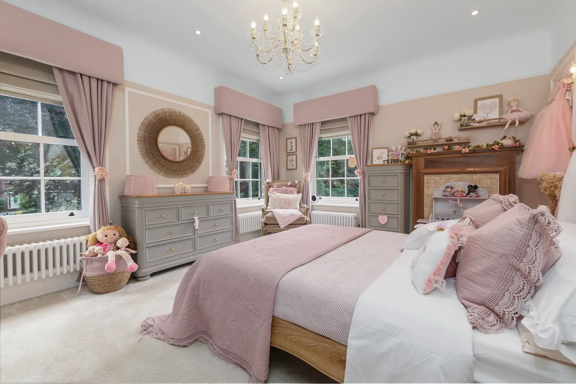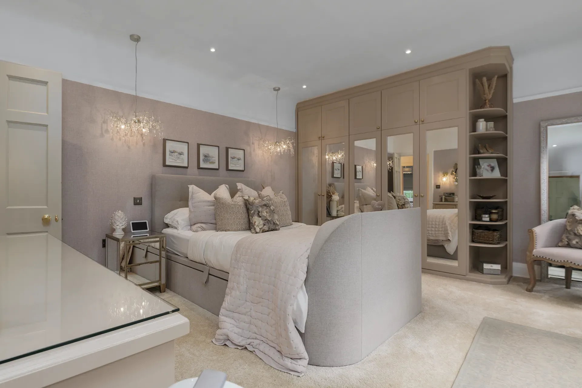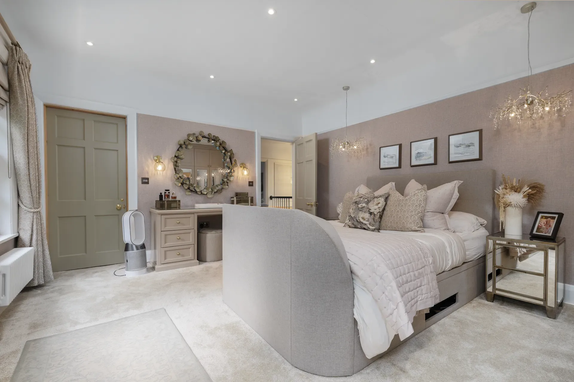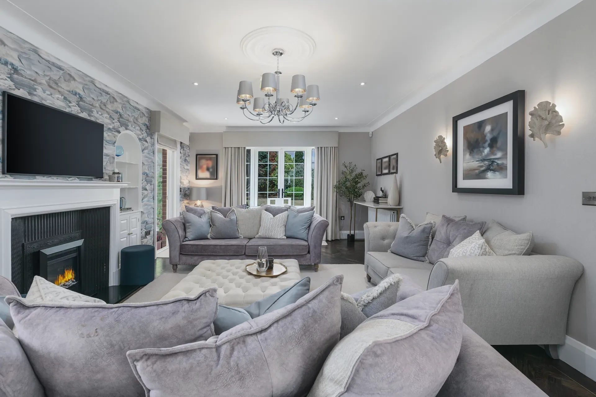 Grand Wisteria House is located in Cheshire, set within a private residential setting. The house offers a strong sense of scale and presence, with Georgian-inspired architecture that reads as both stately and welcoming on camera.