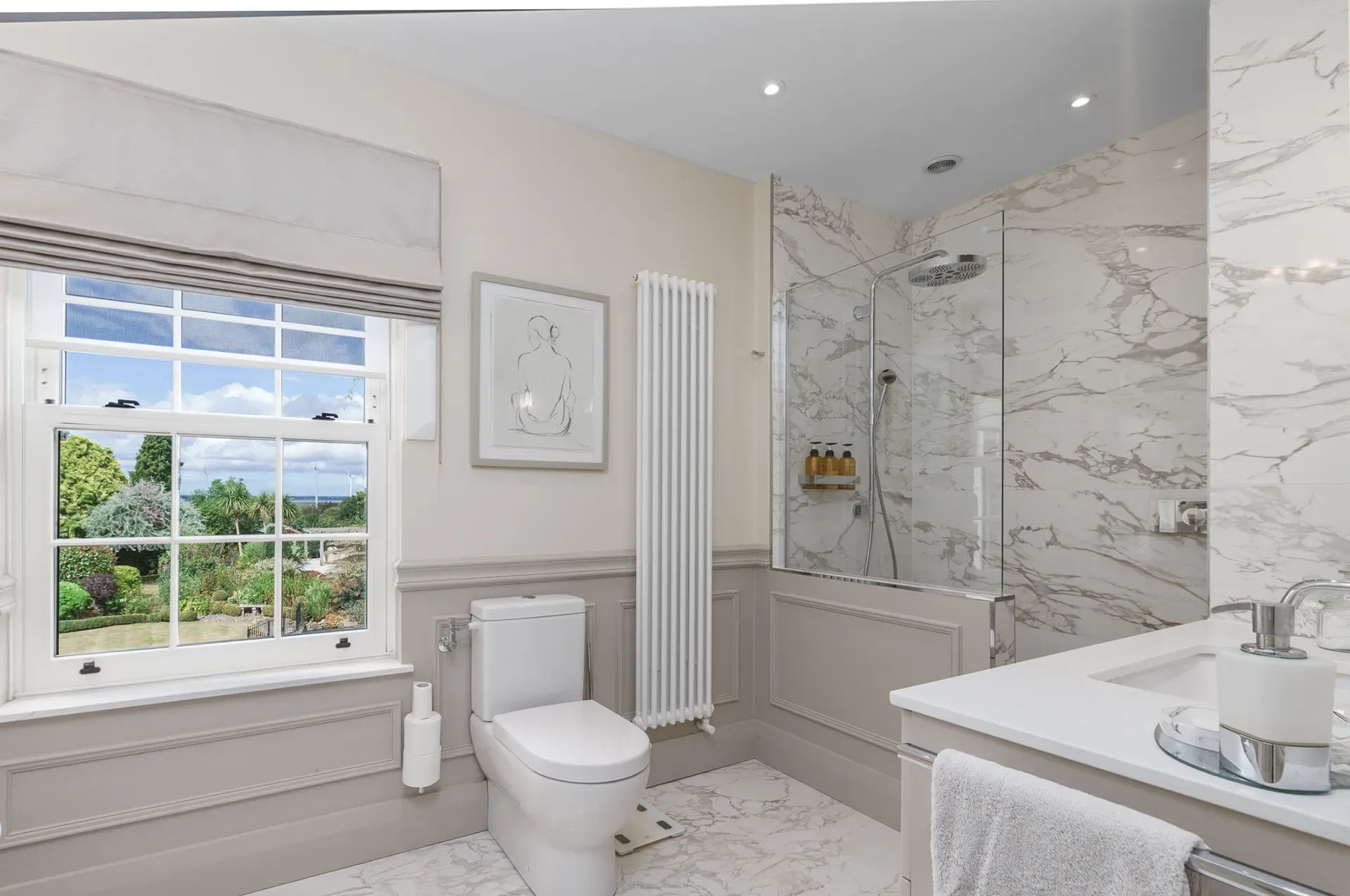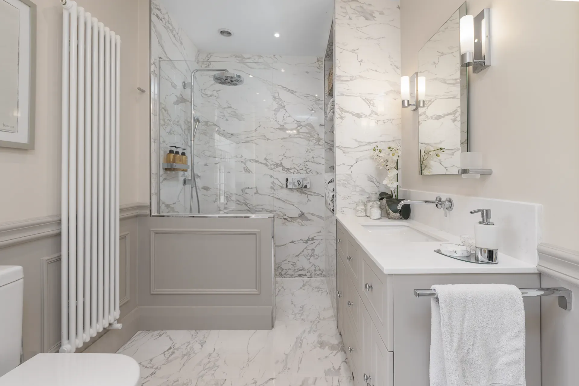 Bathrooms are available for filming and photography use. They reflect the overall modern-classic interior style and can be used as styled sets where required.