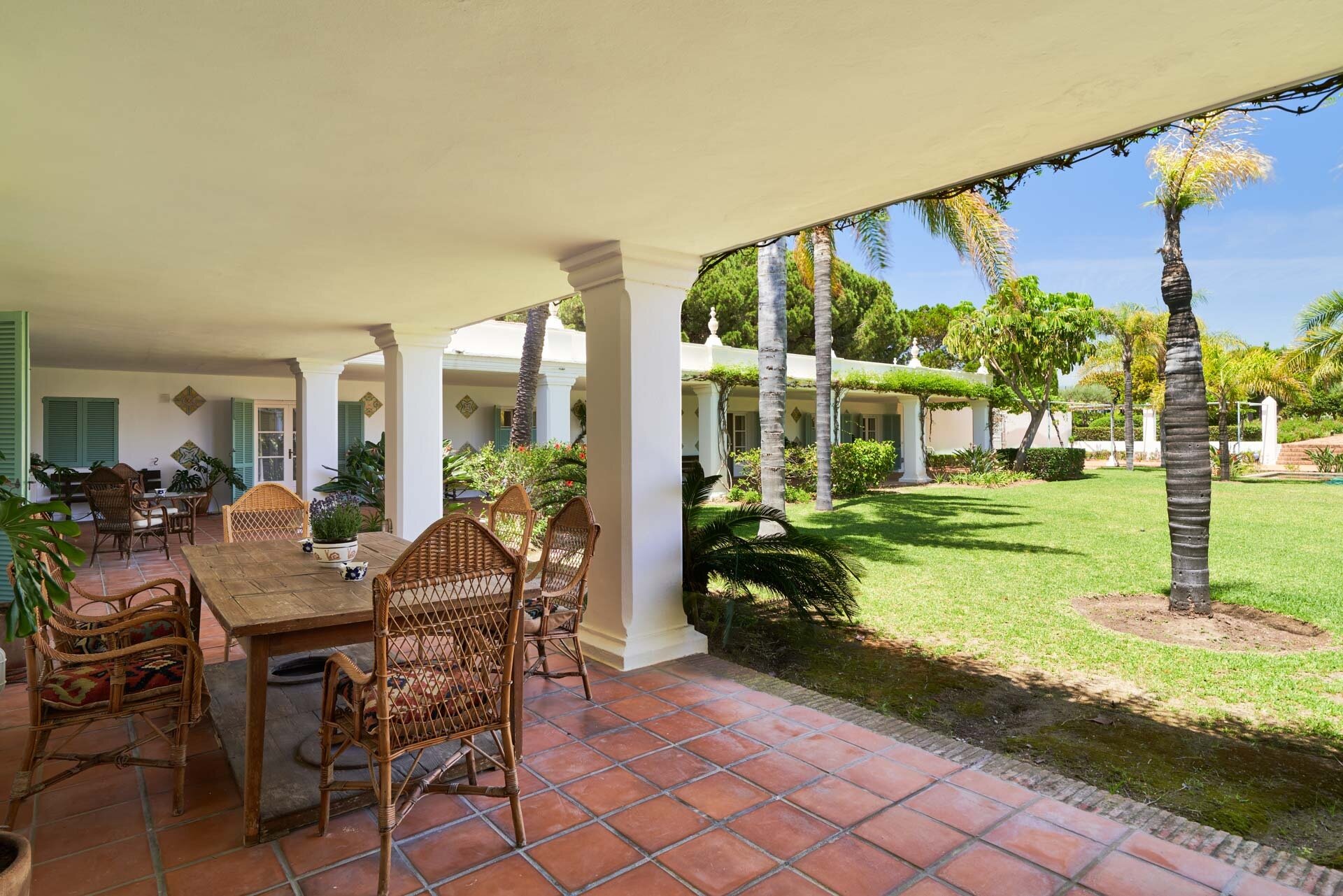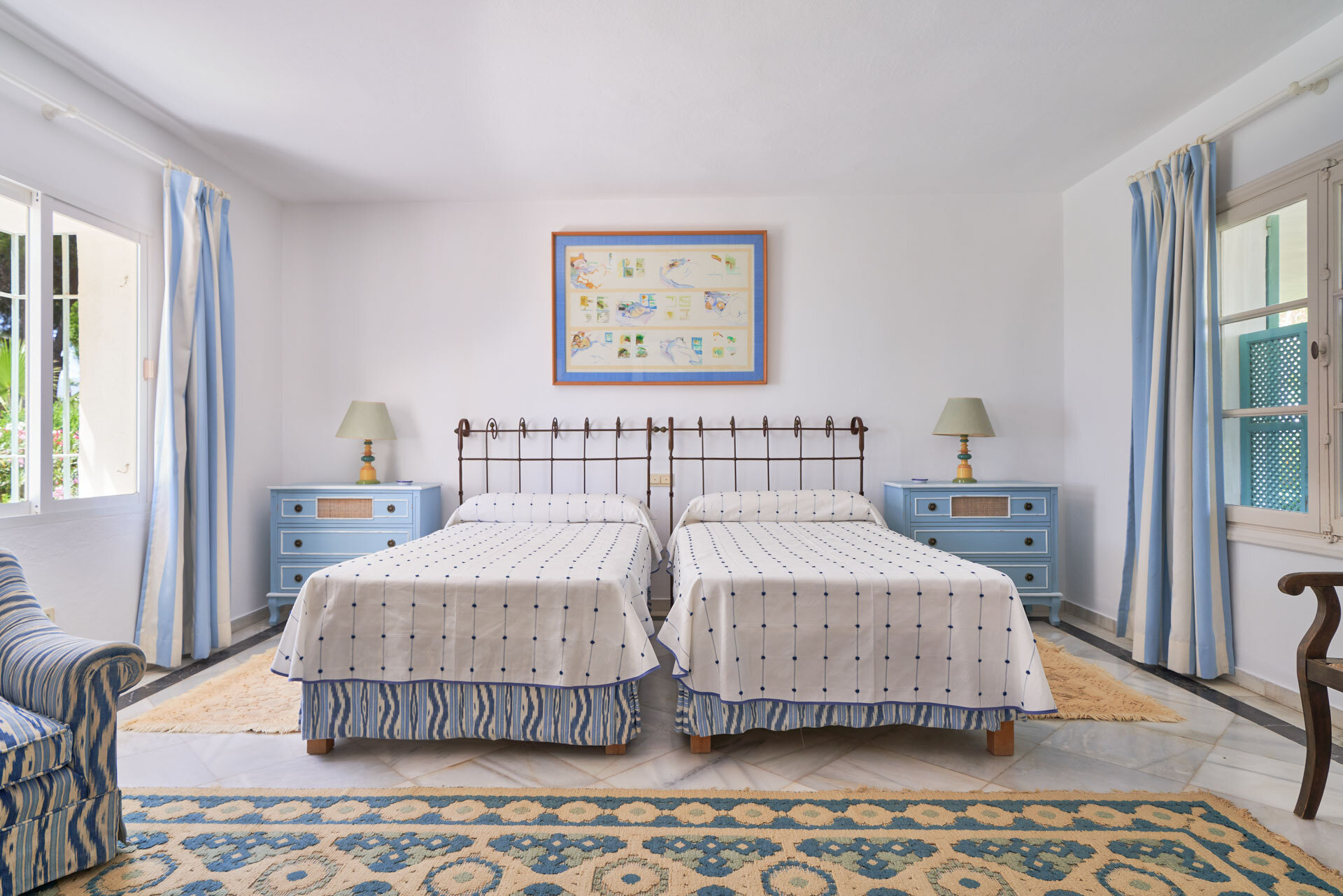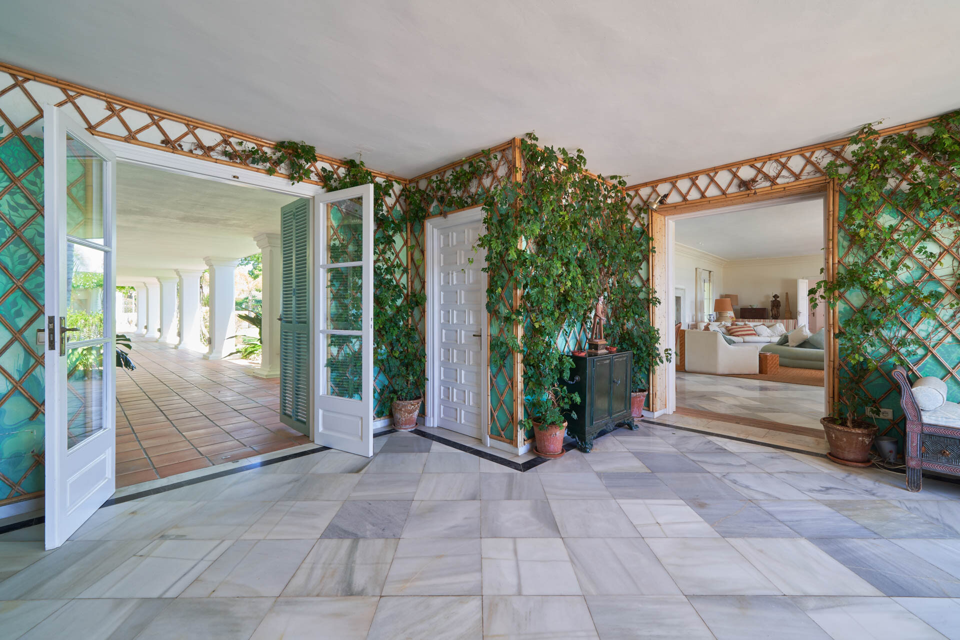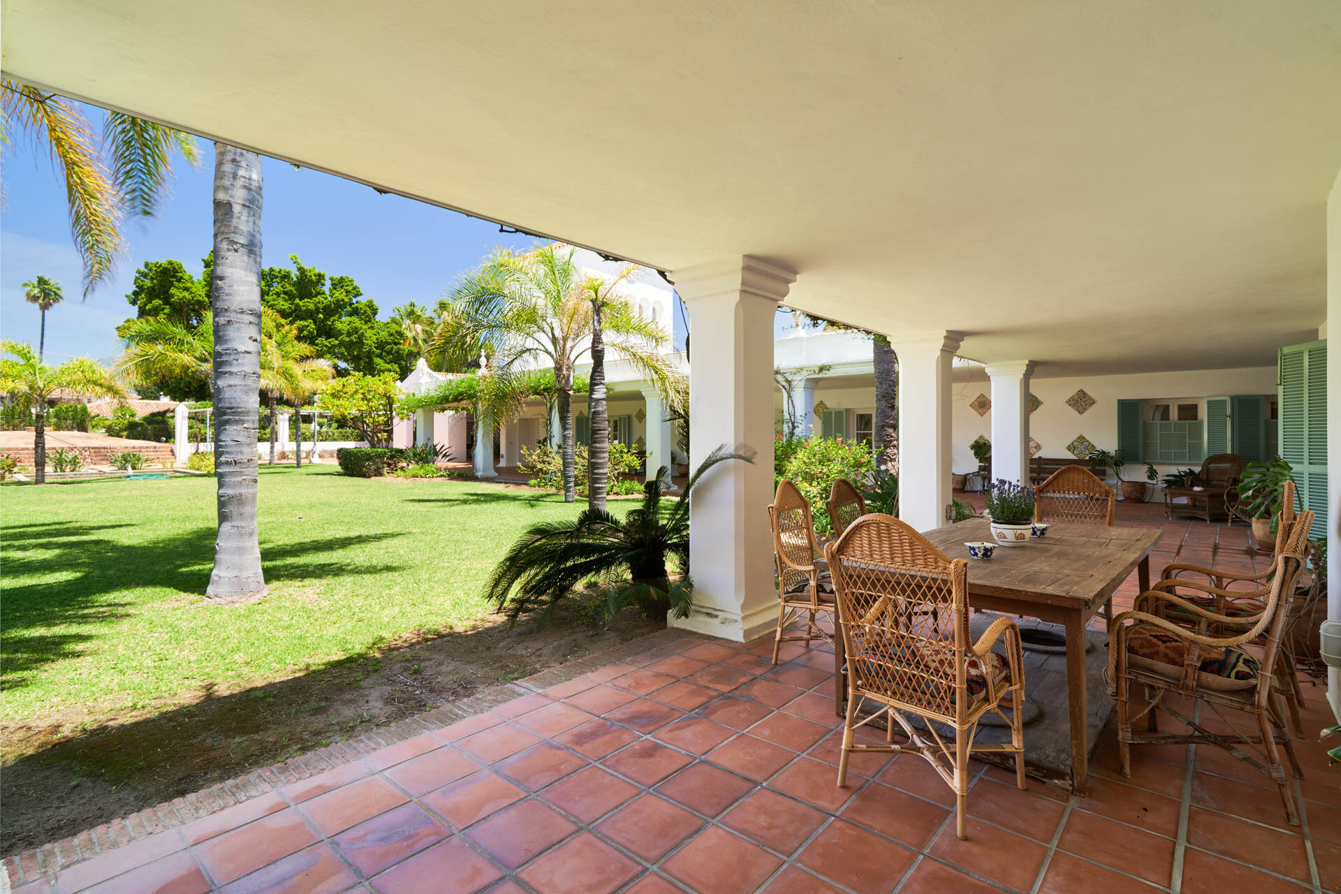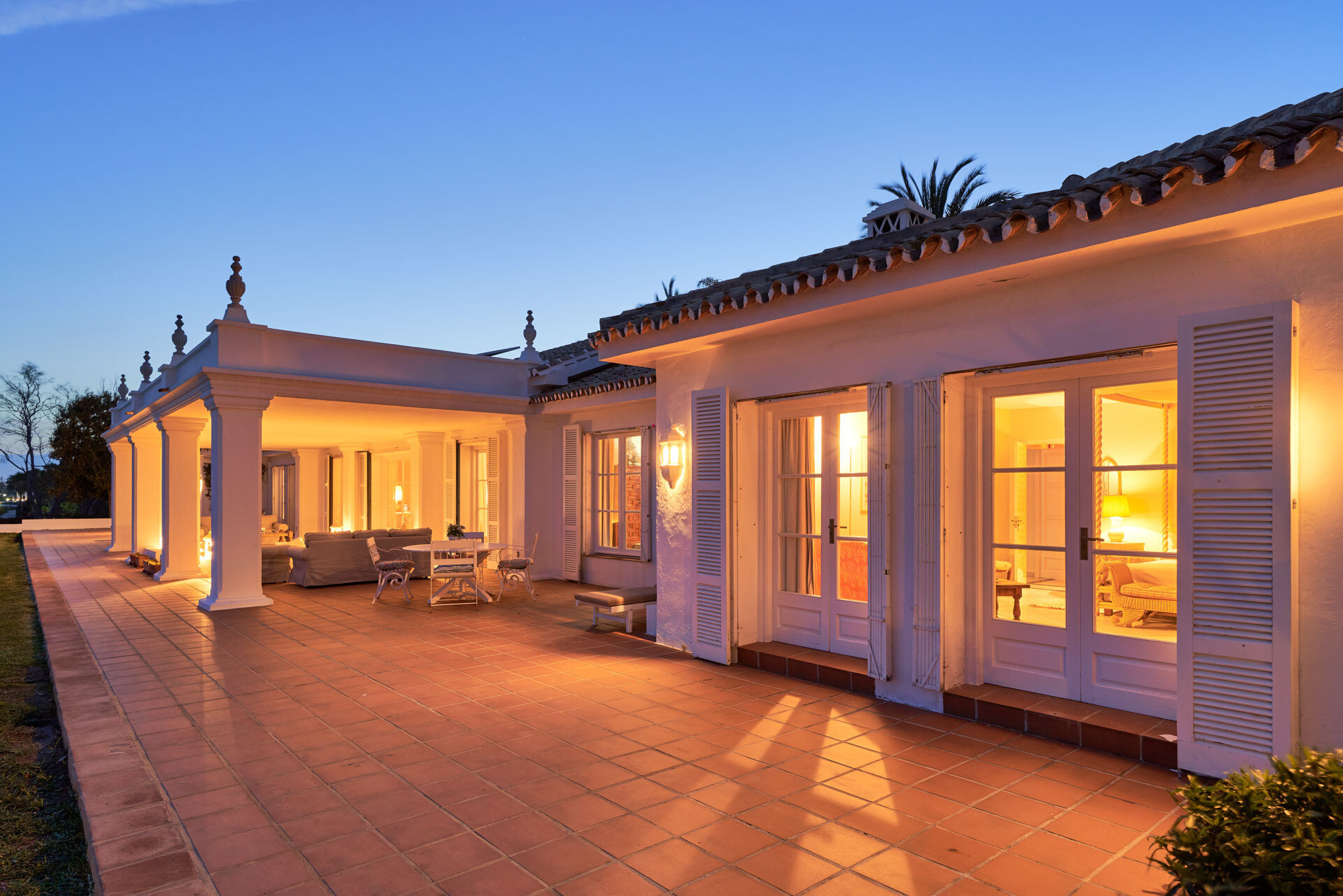 The hacienda is a celebration of classic Andalusian architecture. Whitewashed façades, arched walkways, tiled roofs, and terracotta paths define the estate, while shaded porches, fountains, and palm lined gardens evoke the timeless elegance of traditional Spanish living by the sea. Interiors favour authenticity and atmosphere over contemporary design, with patterned tiles, exposed wooden beams, and natural materials lending the house a warm, lived in character.