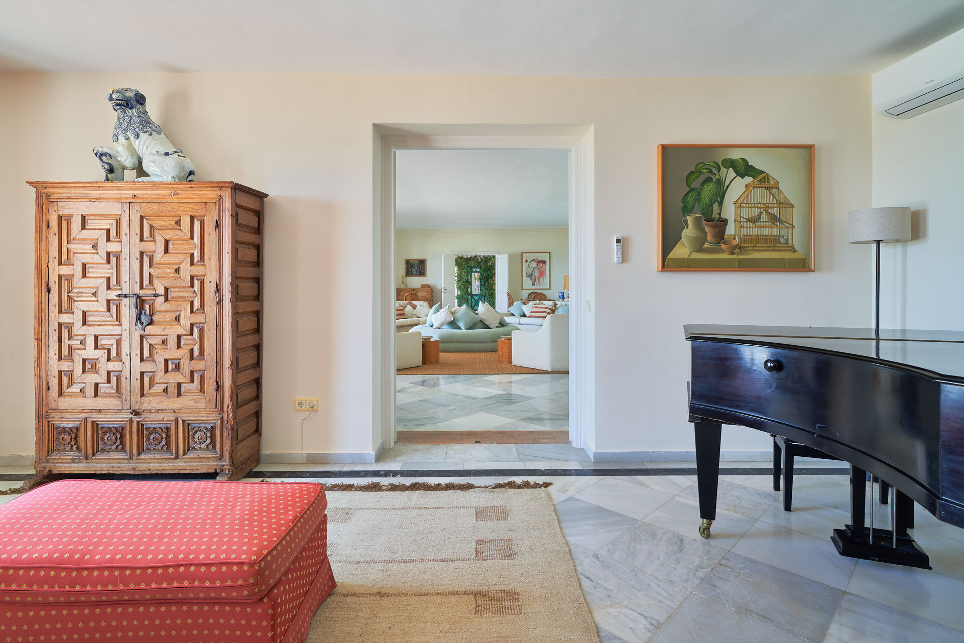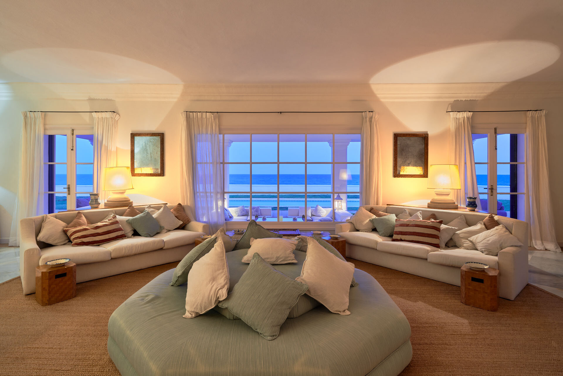 Hacienda del Mar Serena offers generous, characterful living spaces shaped by traditional Andalusian architecture. Large lounges and dining areas open directly onto shaded terraces and gardens, creating an easy flow between indoors and out. Exposed beams, tiled floors, and natural materials give the interiors a warm, lived in feel, designed for relaxed family life and unhurried gatherings rather than formality.