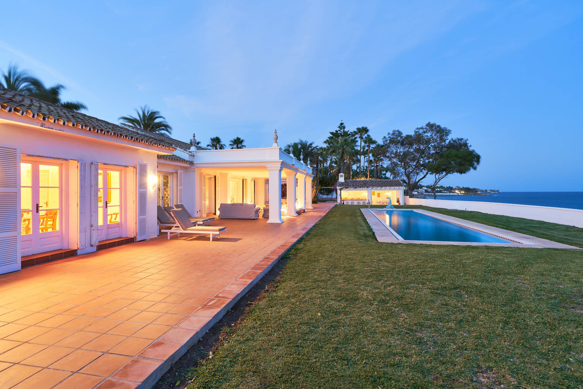 Hacienda del Mar Serena is located directly on the beachfront between Marbella and Estepona. Slightly elevated above the promenade, the estate enjoys enhanced privacy while offering direct access to the shoreline. Marbella, Puerto Banús, and the Golden Mile are all within easy reach by car, while Málaga Airport is approximately fifty five minutes away.