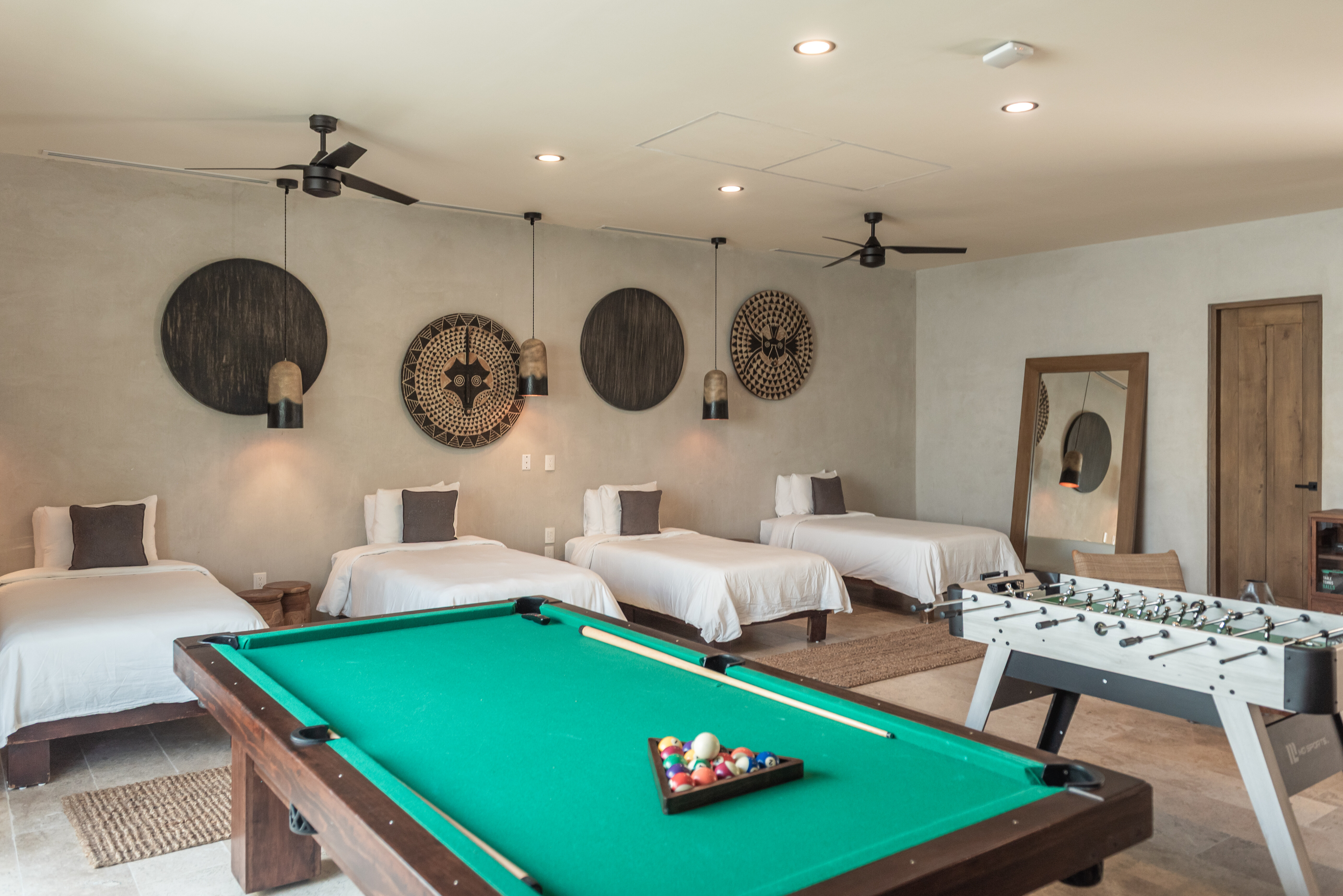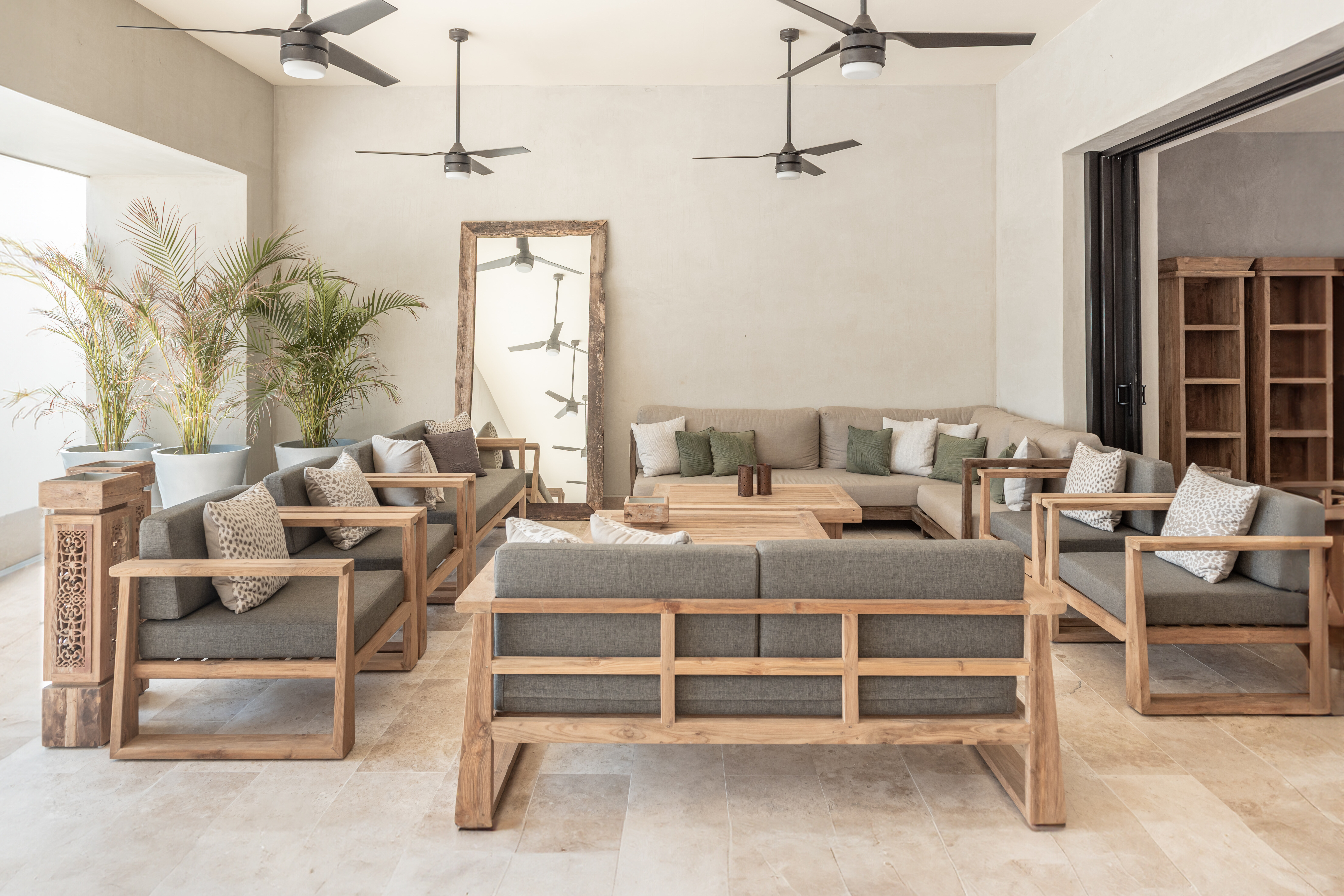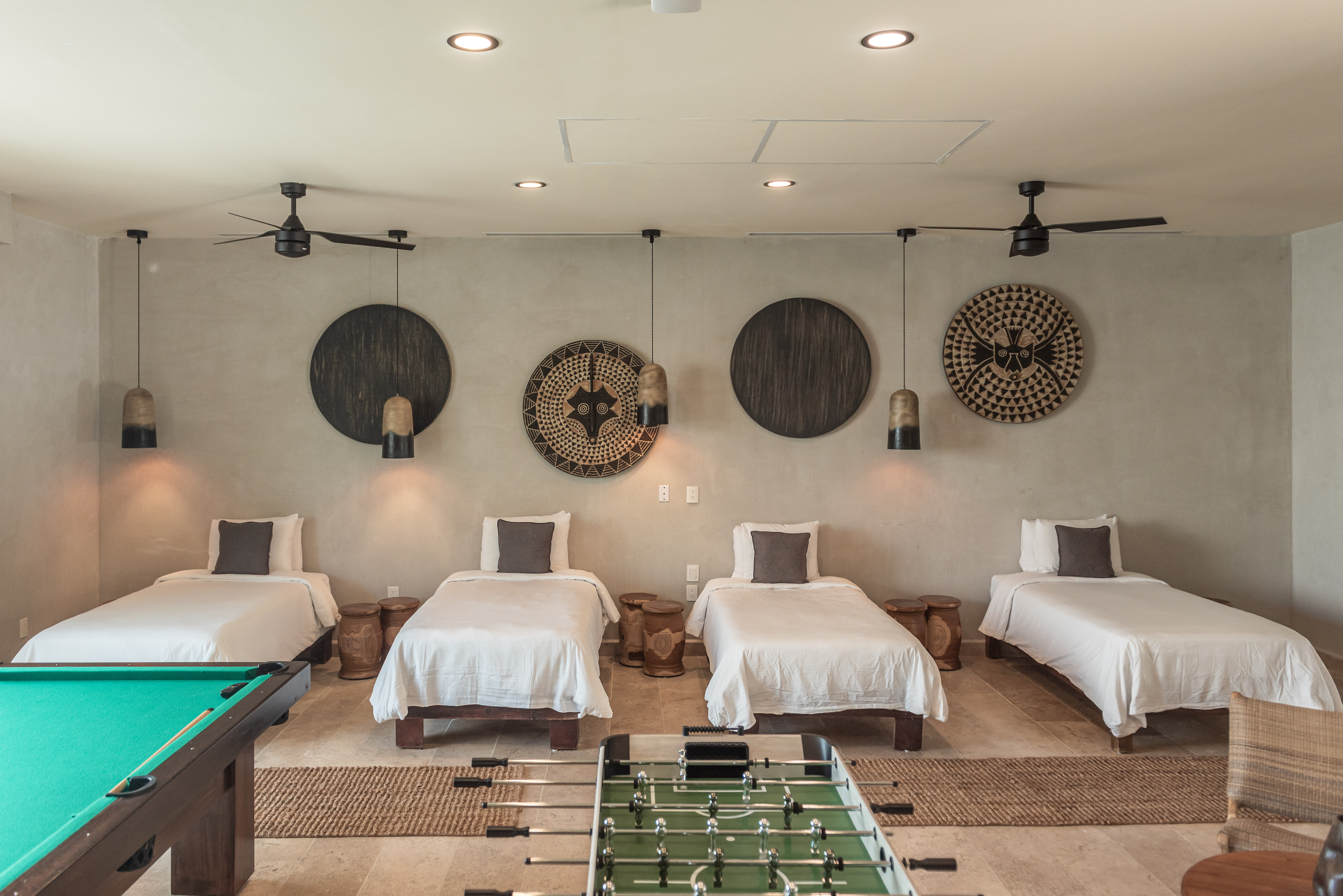 Hacienda Jaguar is designed around generous, open plan living that encourages connection while remaining effortlessly refined. Indoor lounges flow seamlessly into shaded terraces and poolside spaces, allowing guests to move naturally between interior comfort and oceanfront living. The layout is ideal for large groups, offering ample room for gathering, dining, and relaxing without feeling crowded.
