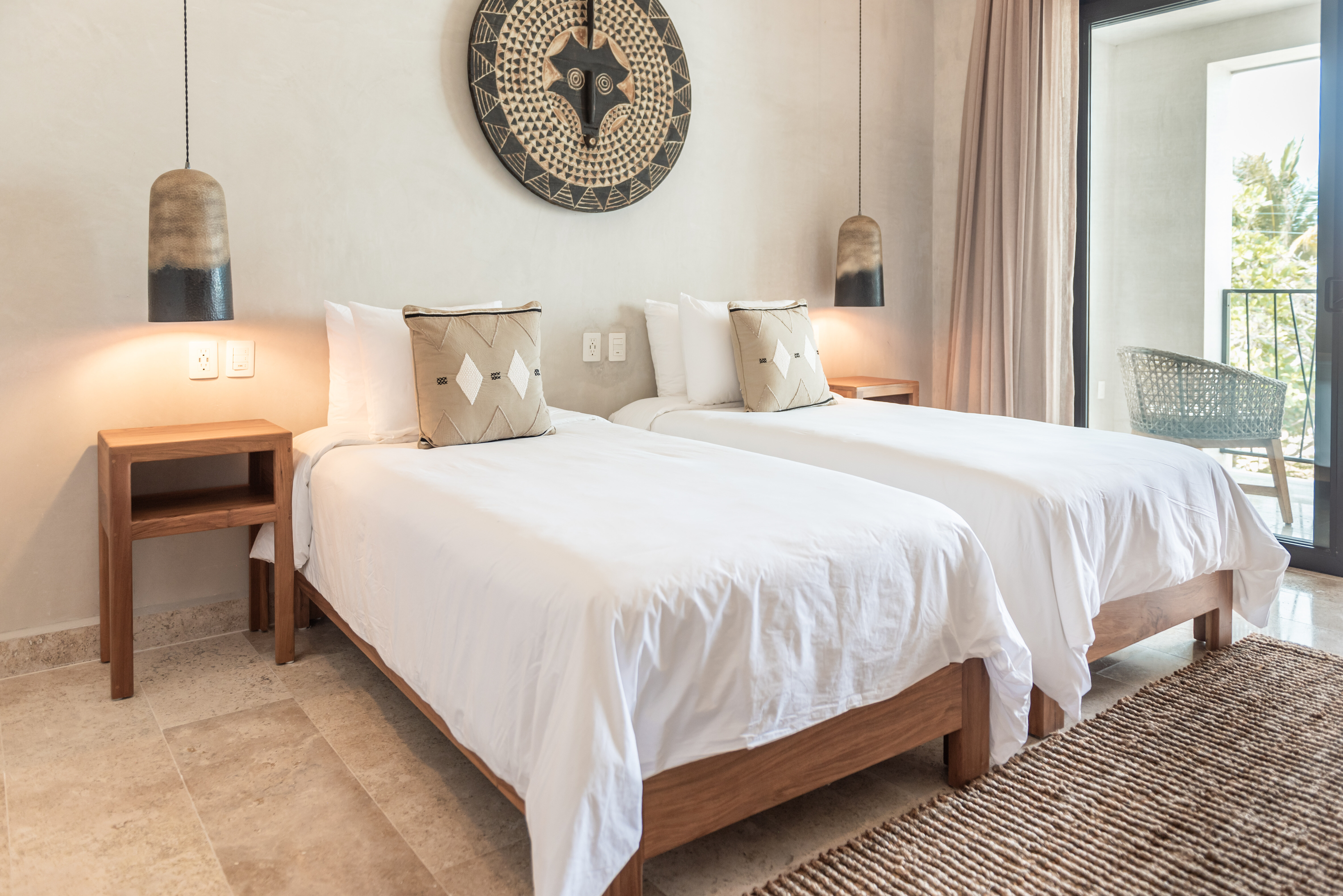 Hacienda Jaguar is a striking twelve suite beachfront villa set on Punta Matzoma in Puerto Aventuras, where contemporary architecture meets the untamed spirit of the Riviera Maya. Clean lines, warm natural materials, and lush tropical surroundings come together to create a villa that feels both refined and deeply connected to its setting. From the moment you arrive, the atmosphere encourages guests to slow down, gather, and experience the Caribbean coast in complete comfort.