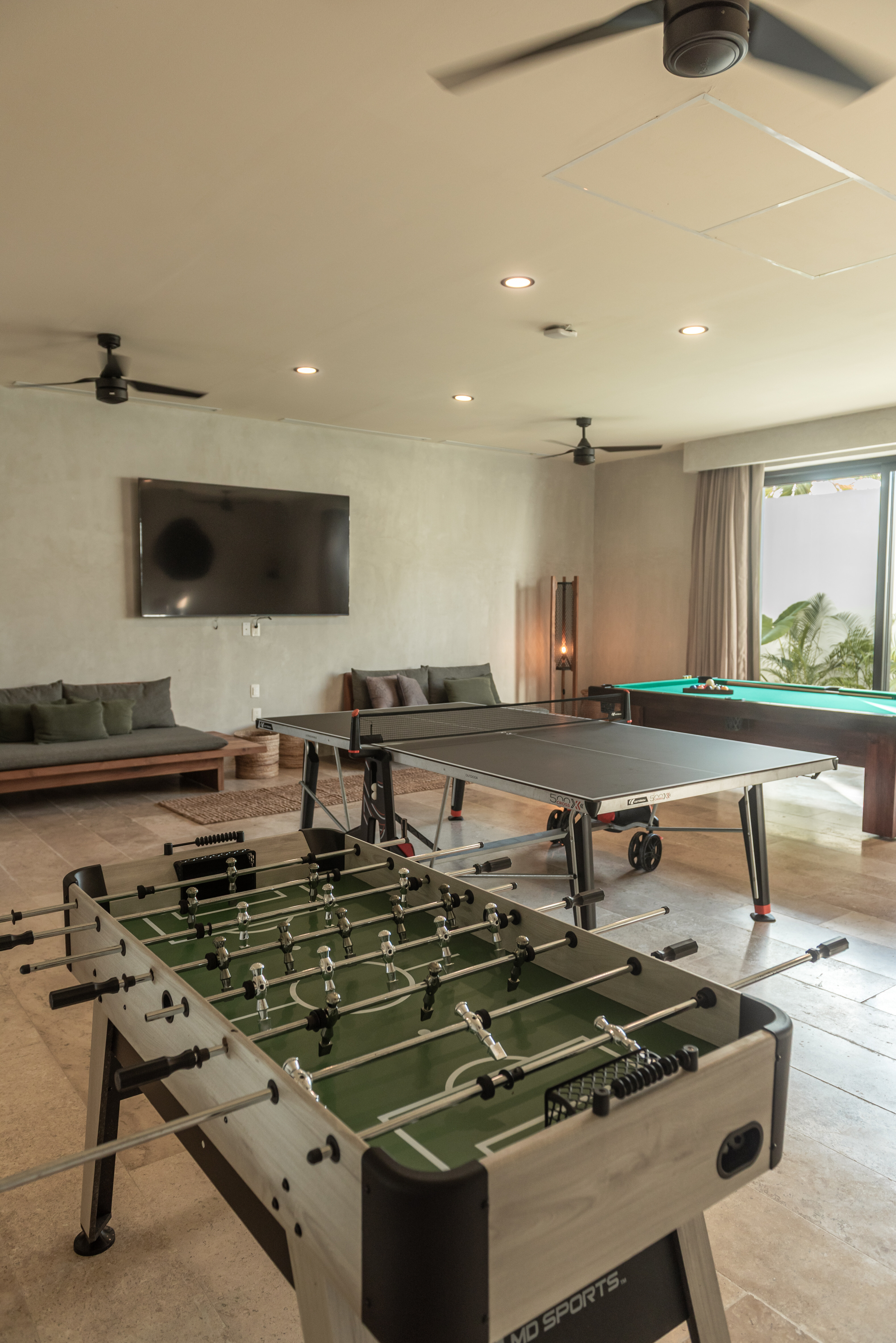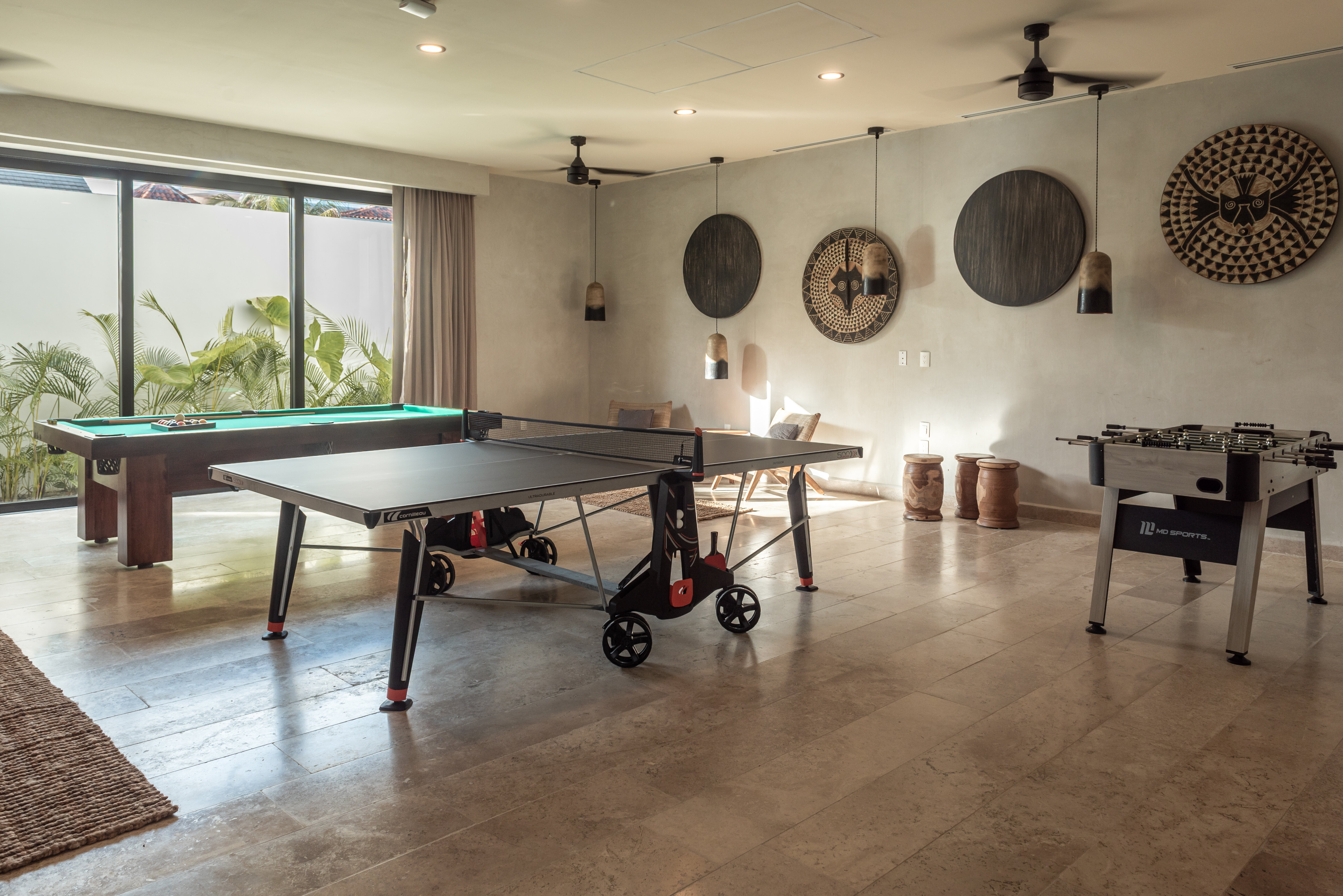 Entertainment is well catered for with a dedicated games room, satellite television, and smart TVs throughout the property. Outdoor activities include access to kayaks, paddle boards, and snorkelling equipment for exploring the calm waters of Fatima Bay. Additional recreational setups, including pickleball and volleyball, can be arranged on request.