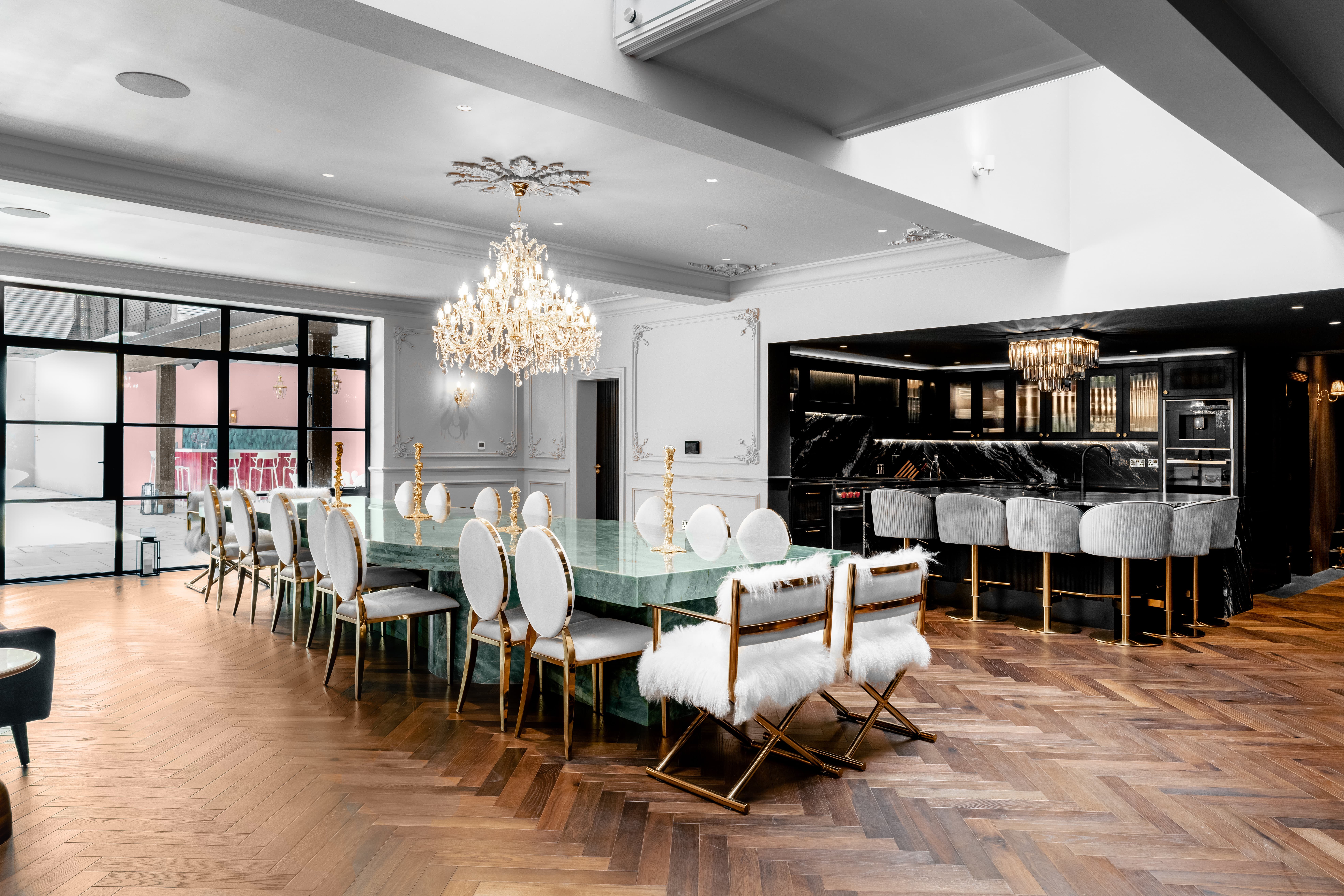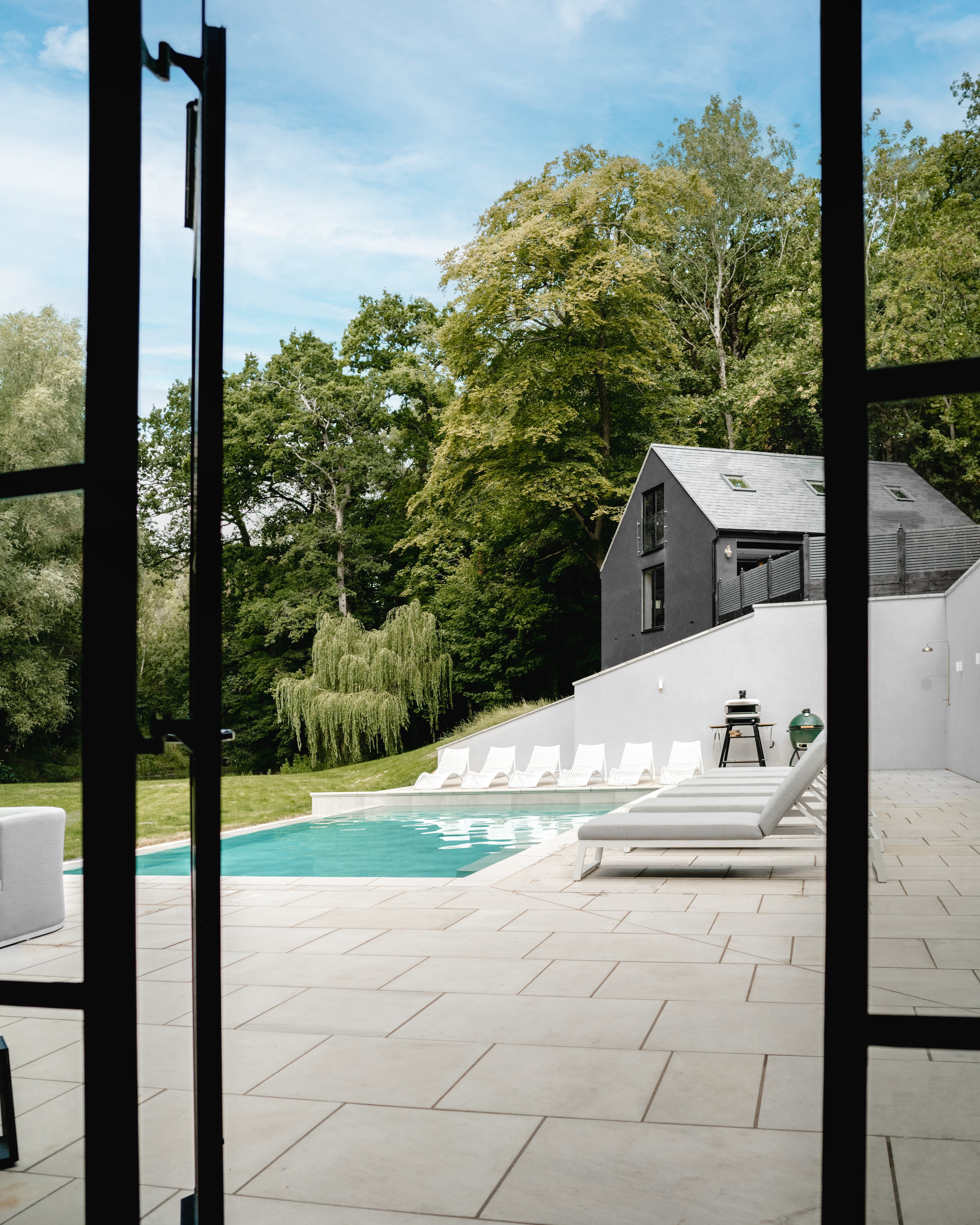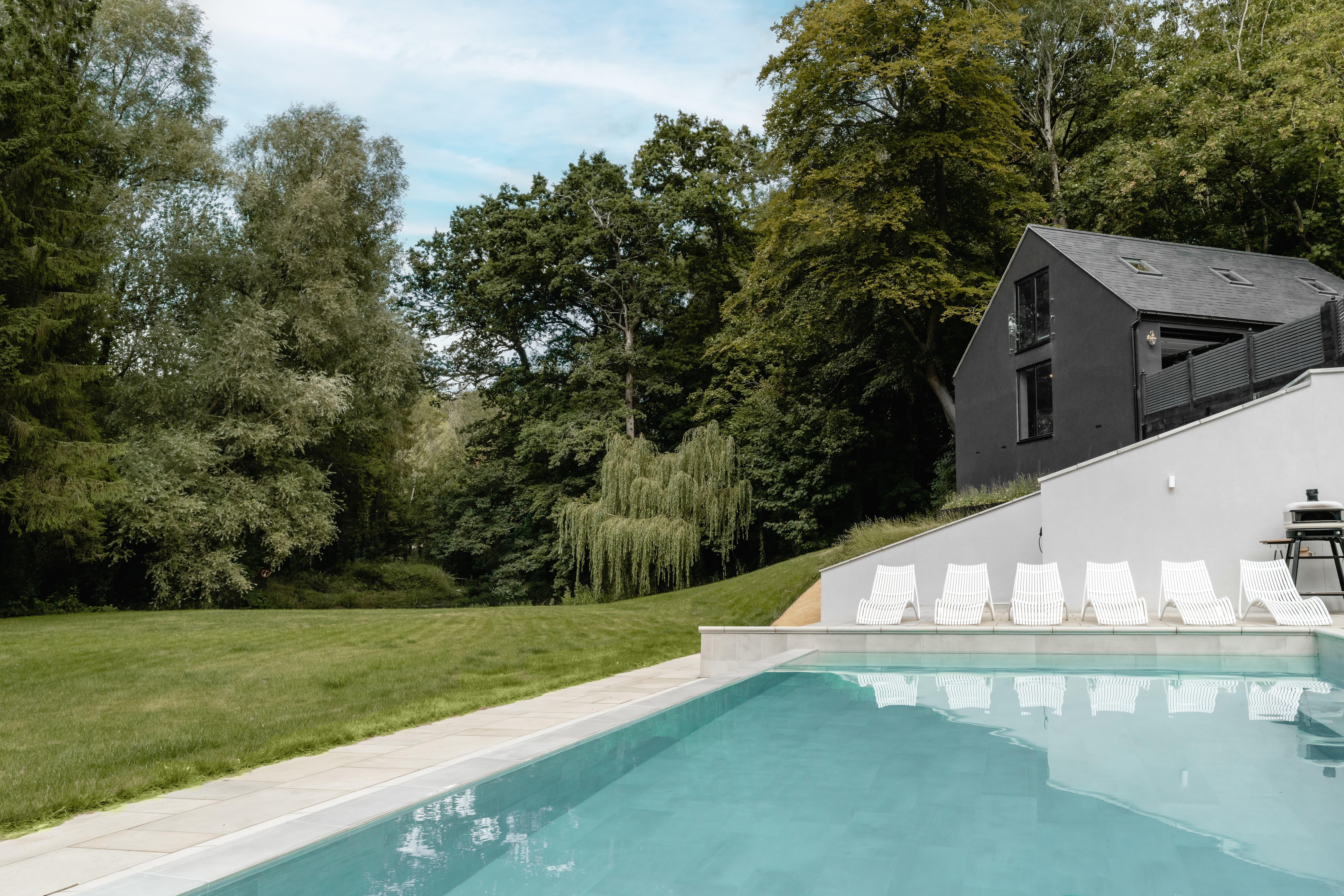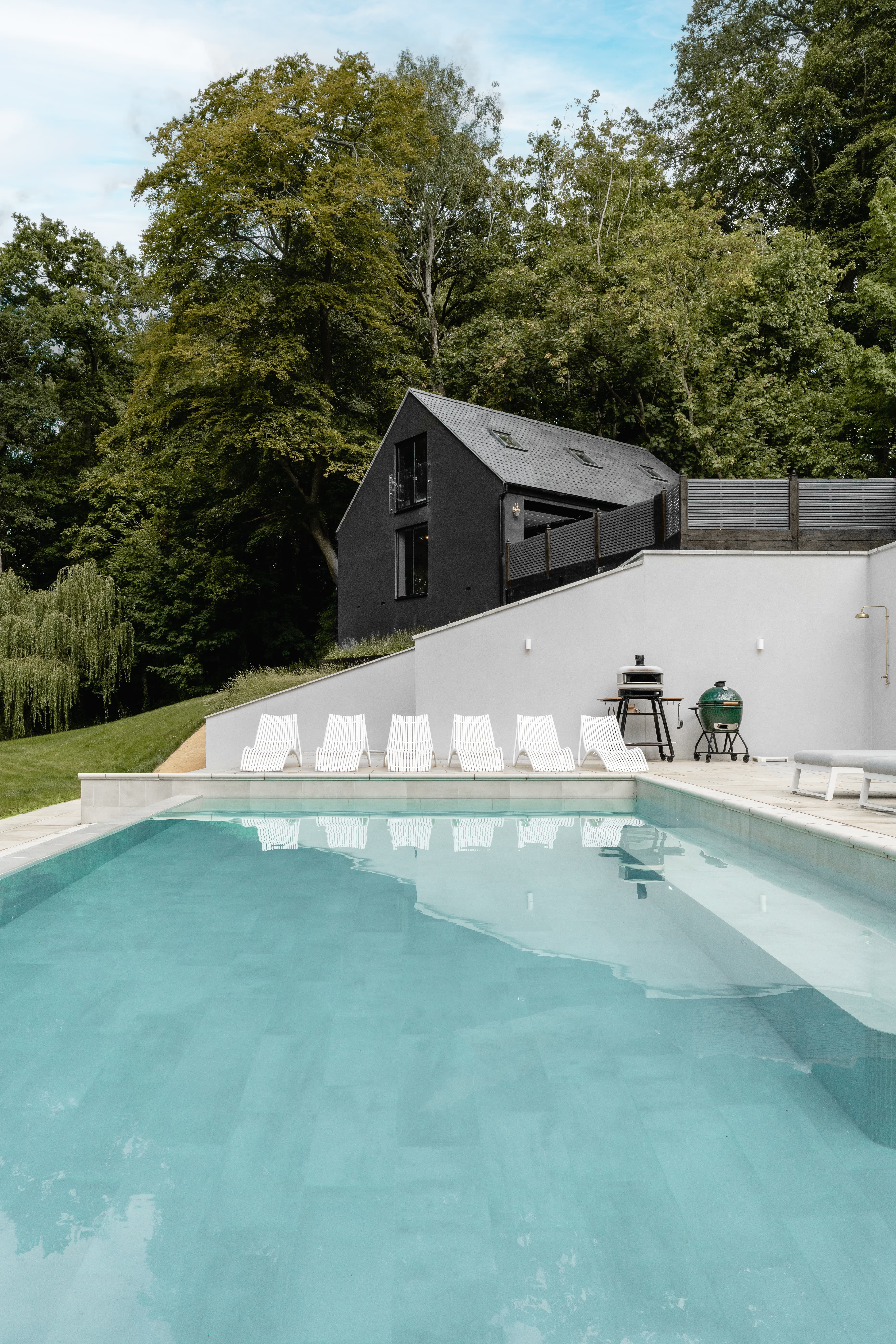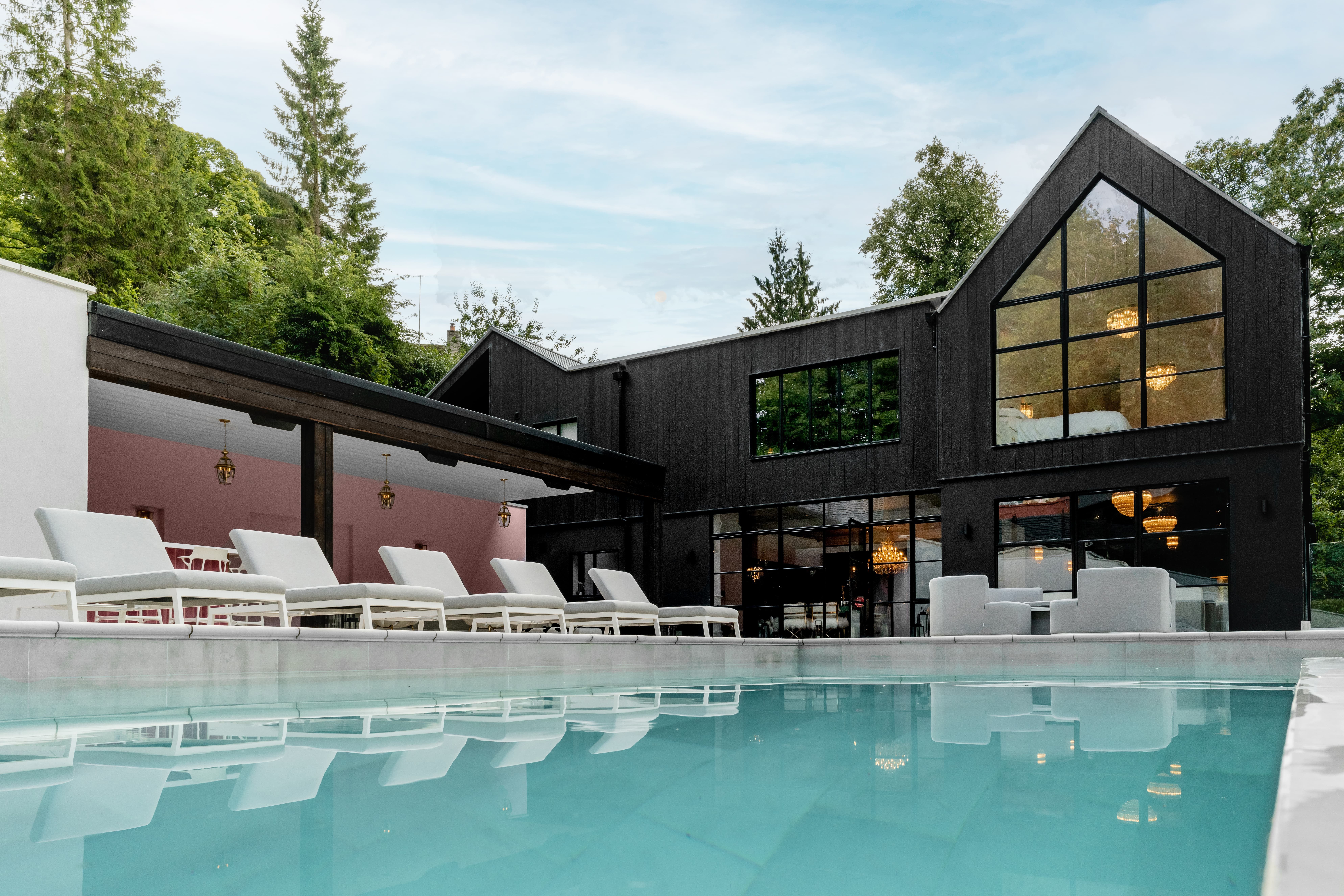 There is plenty here to keep everyone entertained. Enjoy immersive film nights in the private cinema room, mix drinks at the hidden bar or spend sunny days by the heated swimming pool. The fully equipped gym is also available for guests who like to keep active during their stay.