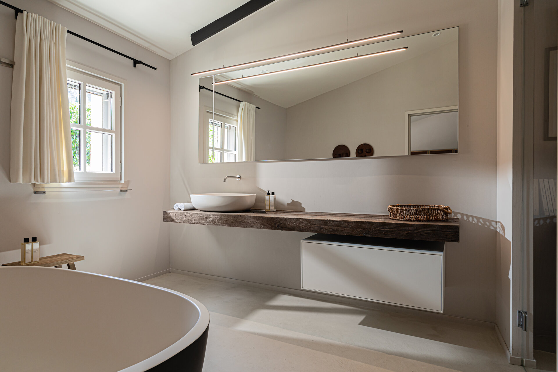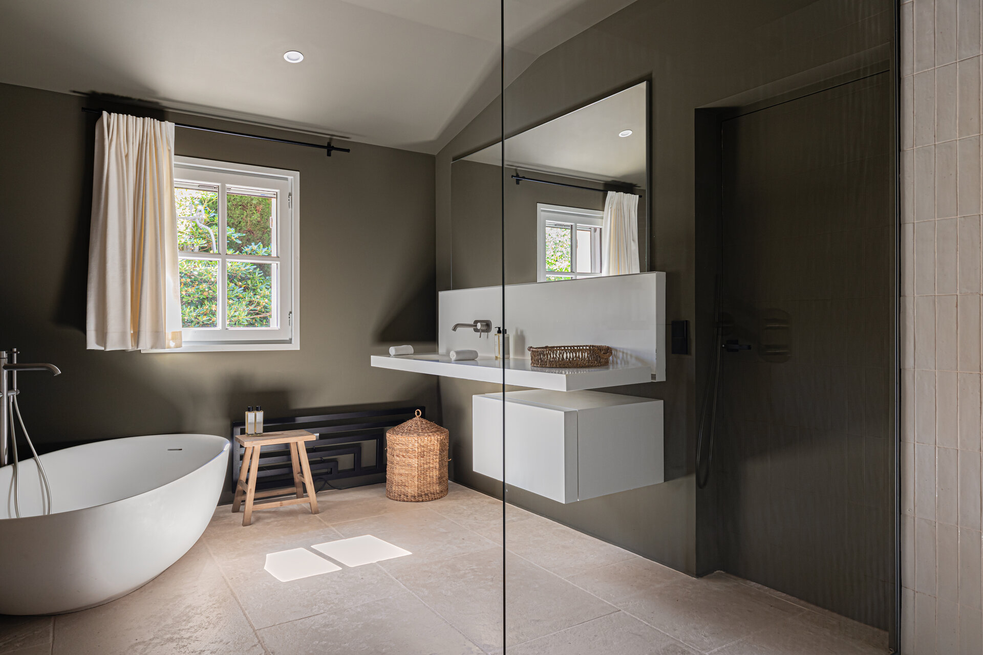 Each bedroom features its own private bathroom, finished with understated elegance and practical comfort. Walk in showers, bathtubs, and natural light create spaces that feel soothing and functional, ideal for unwinding after a day spent outdoors. Thoughtful details and daily servicing ensure each bathroom remains fresh and serene.