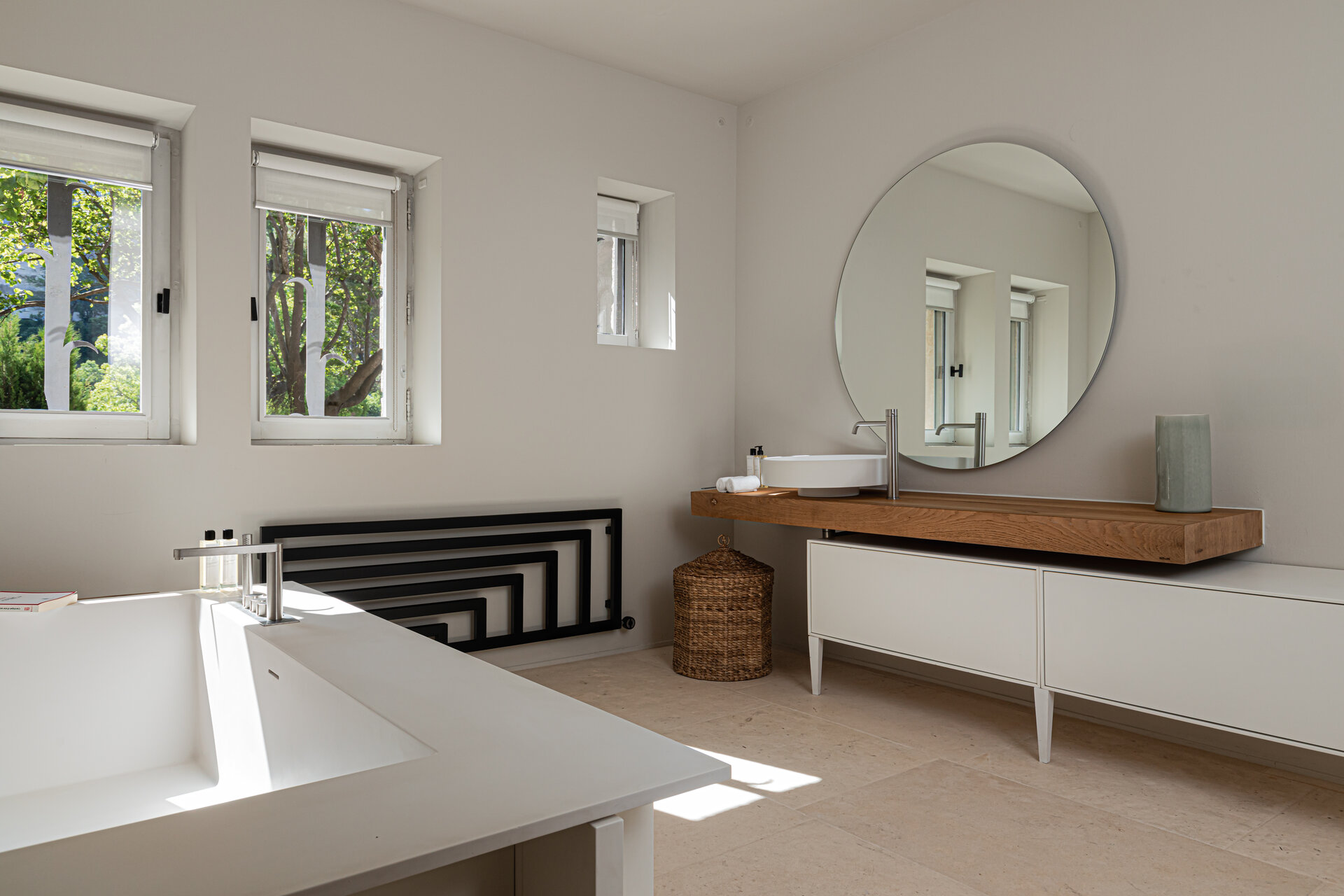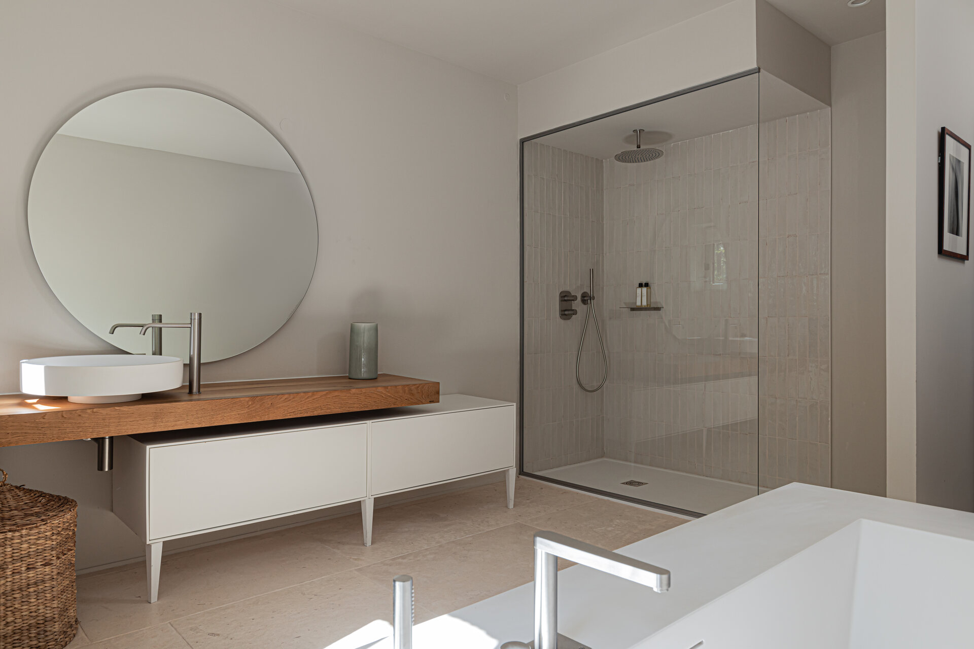 At the heart of the Mas, the kitchen and dining spaces are made for togetherness. Fully equipped for both professional and family style cooking, the kitchen flows easily into the dining area, where shared meals become a central part of daily life. Whether enjoying a leisurely breakfast prepared for you each morning or gathering for a long Provençal dinner, the space feels warm, generous, and unpretentious.