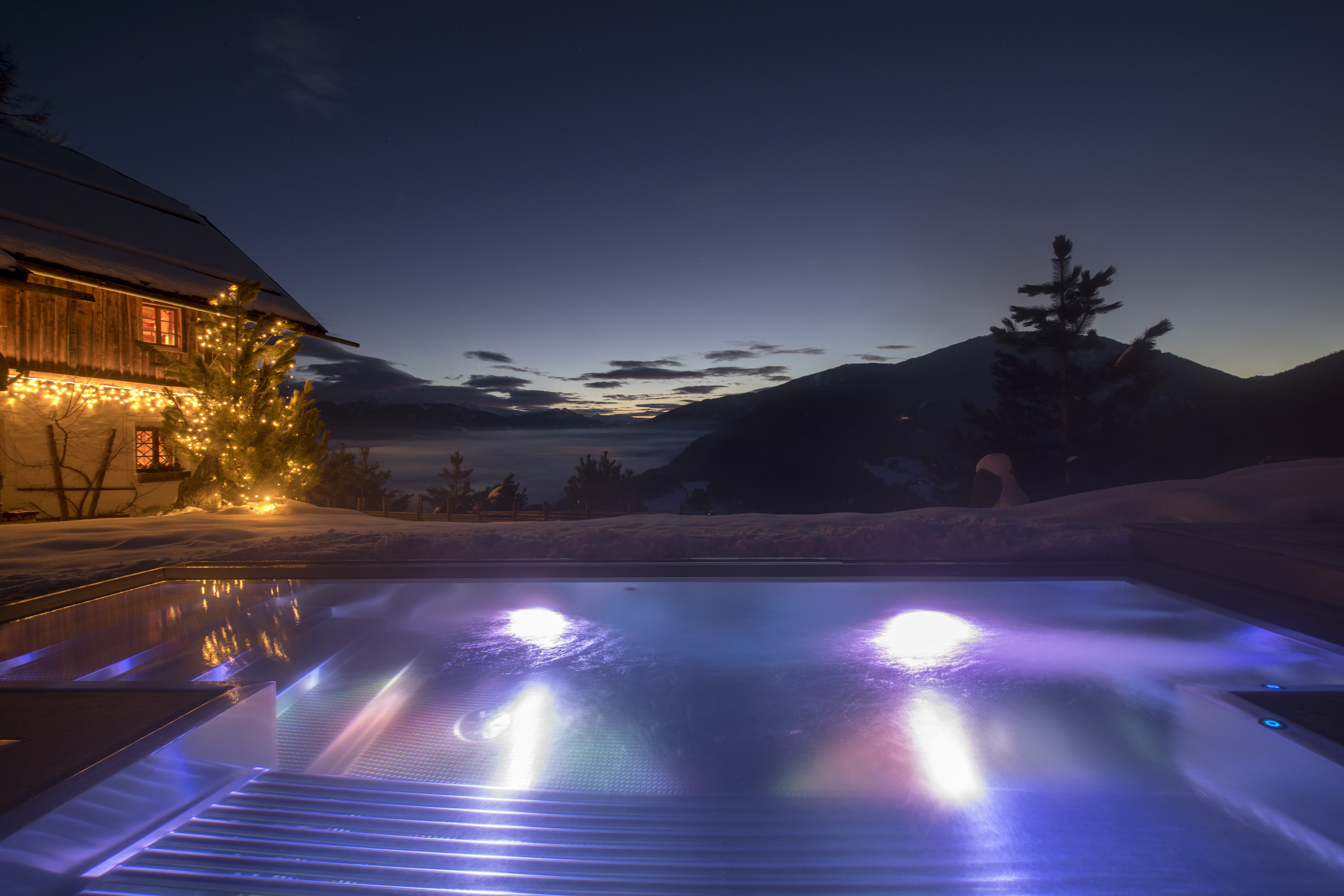 Set in Val Pusteria in the Dolomites, the lodge enjoys a secluded hillside position surrounded by forest, with panoramic views across multiple mountain ridges. It is located near the village of Bruneck, with access to both summer and winter alpine activities.