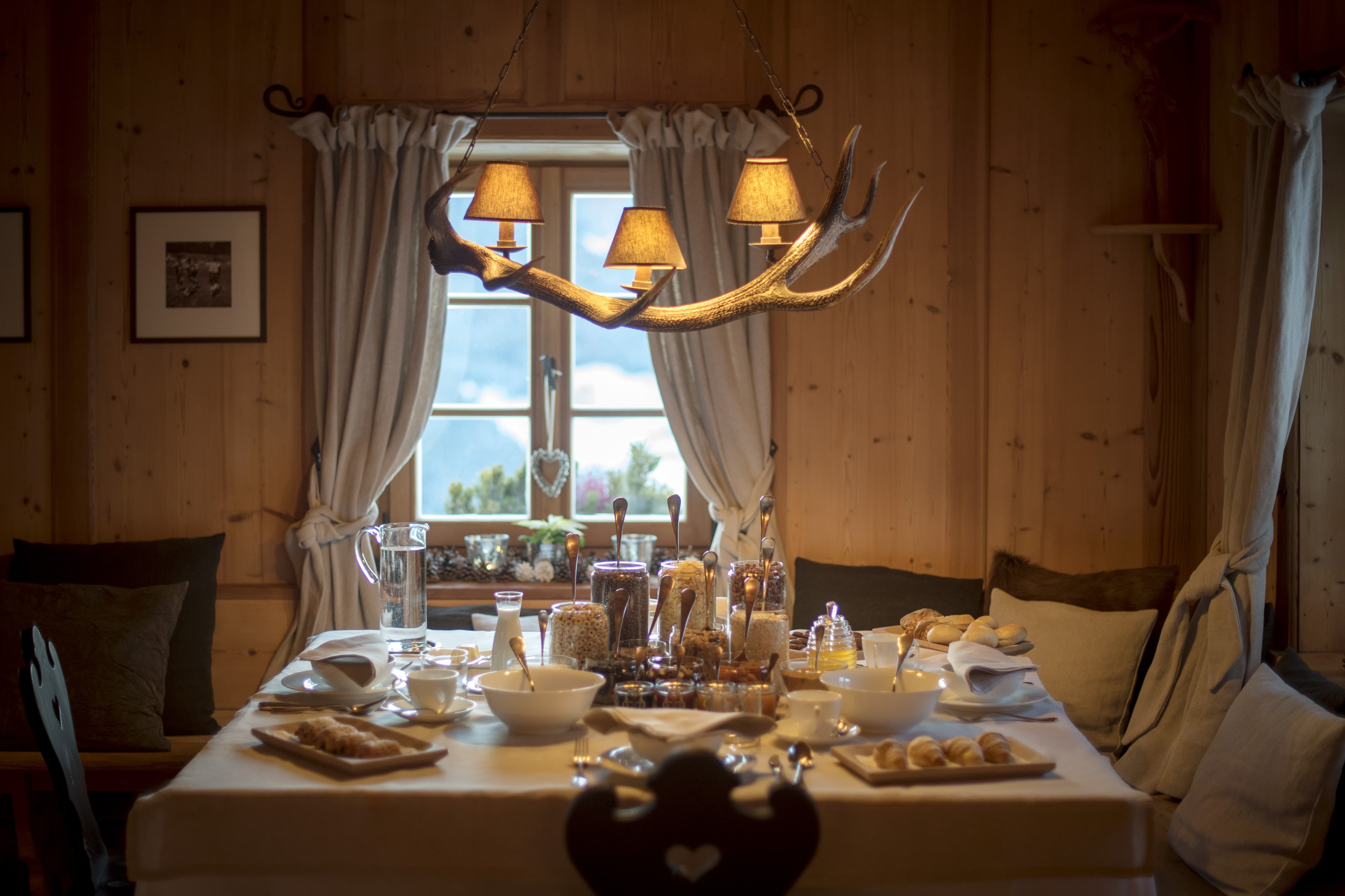 A fully equipped kitchen supports the estate’s included food and beverage service. The dining room provides an intimate setting for shared meals, while the traditional stube offers a more relaxed, atmospheric space for drinks and informal dining.