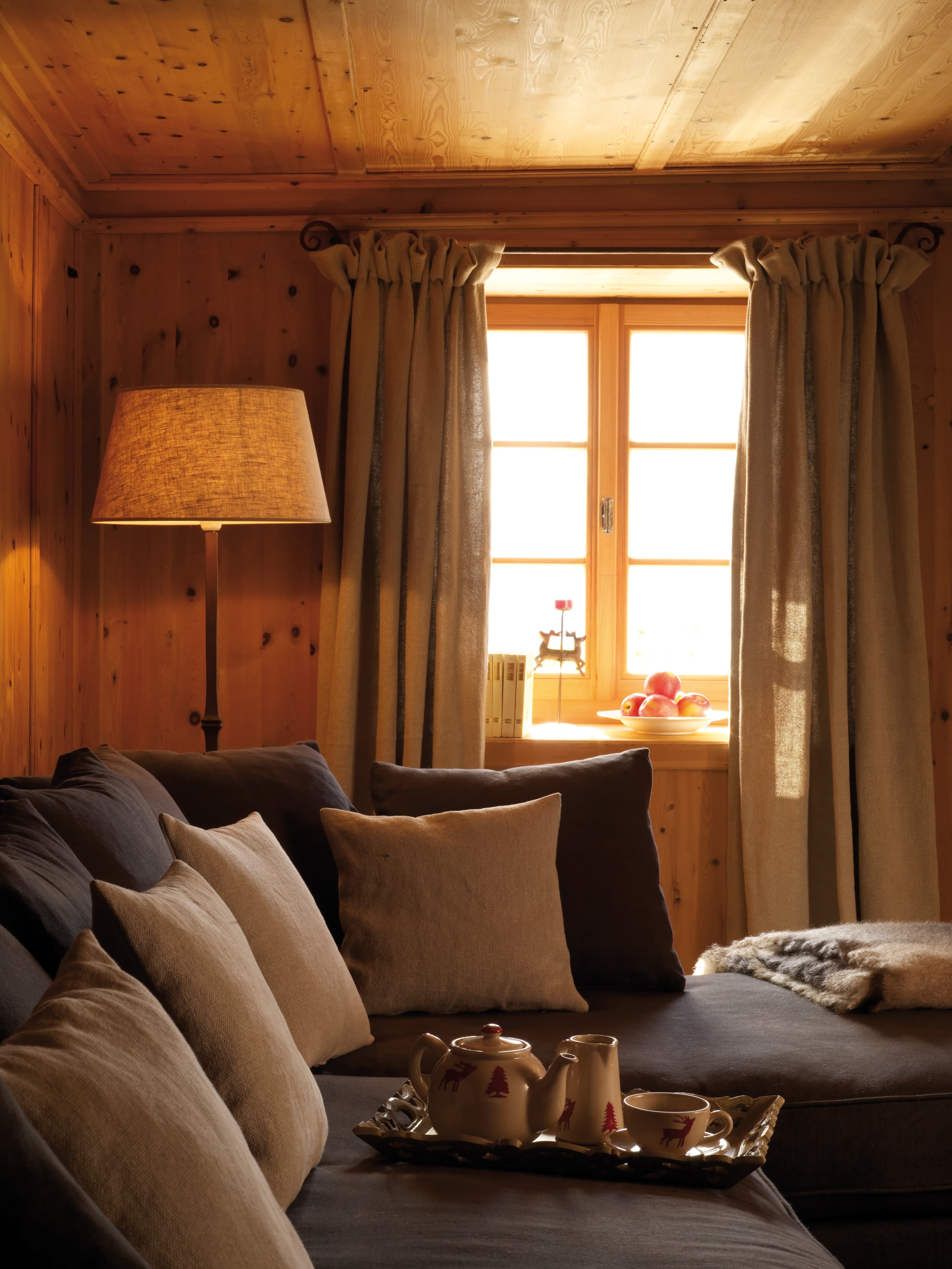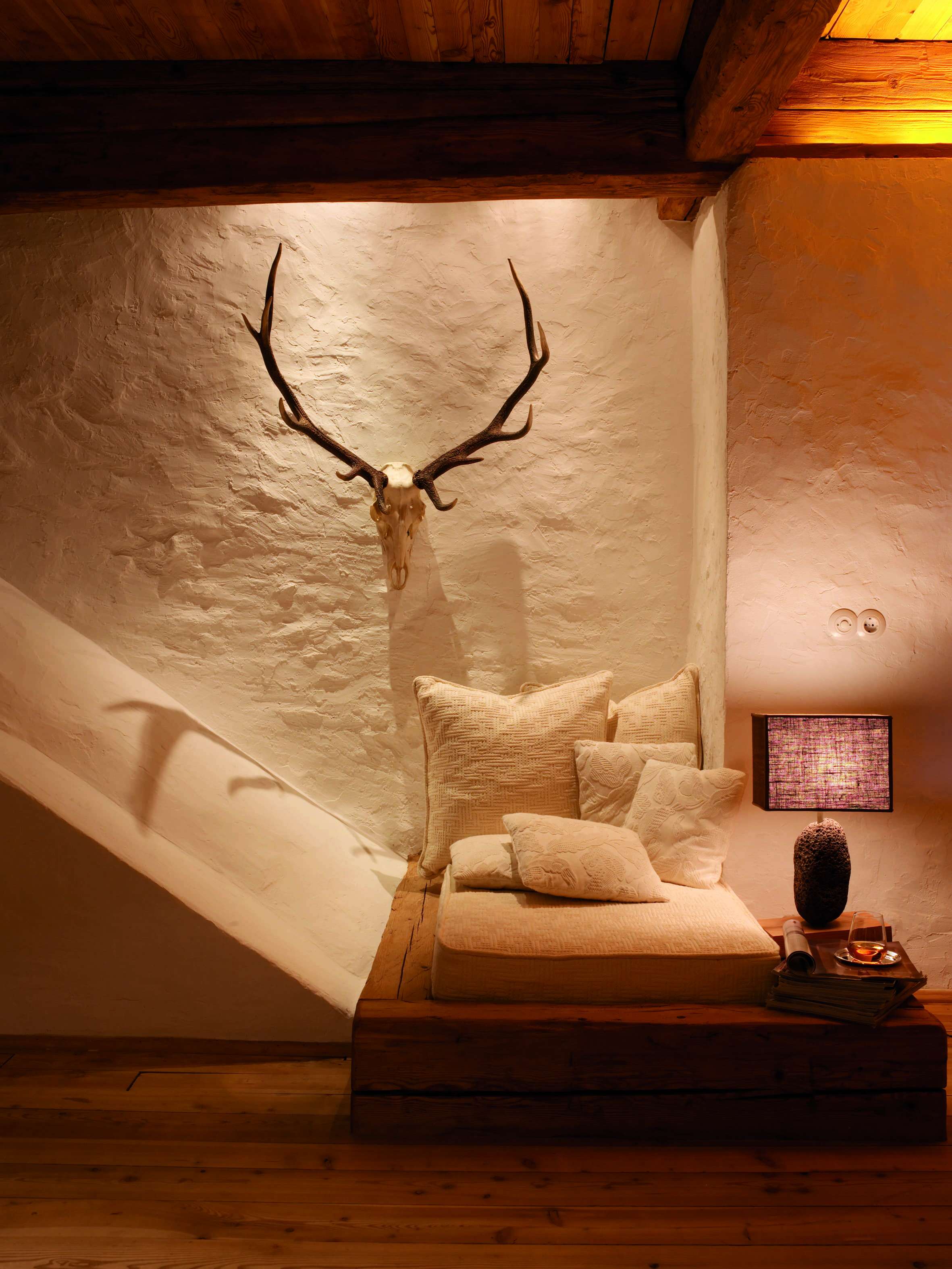 A warm, intimate series of living areas defines the lodge, centred around traditional alpine architecture and softened by contemporary design. The main lounge and stube create a natural gathering point, with timber interiors, layered textures, and views across the surrounding forest and mountain ridges. Smaller sitting areas offer quieter spaces to unwind after a day outdoors.