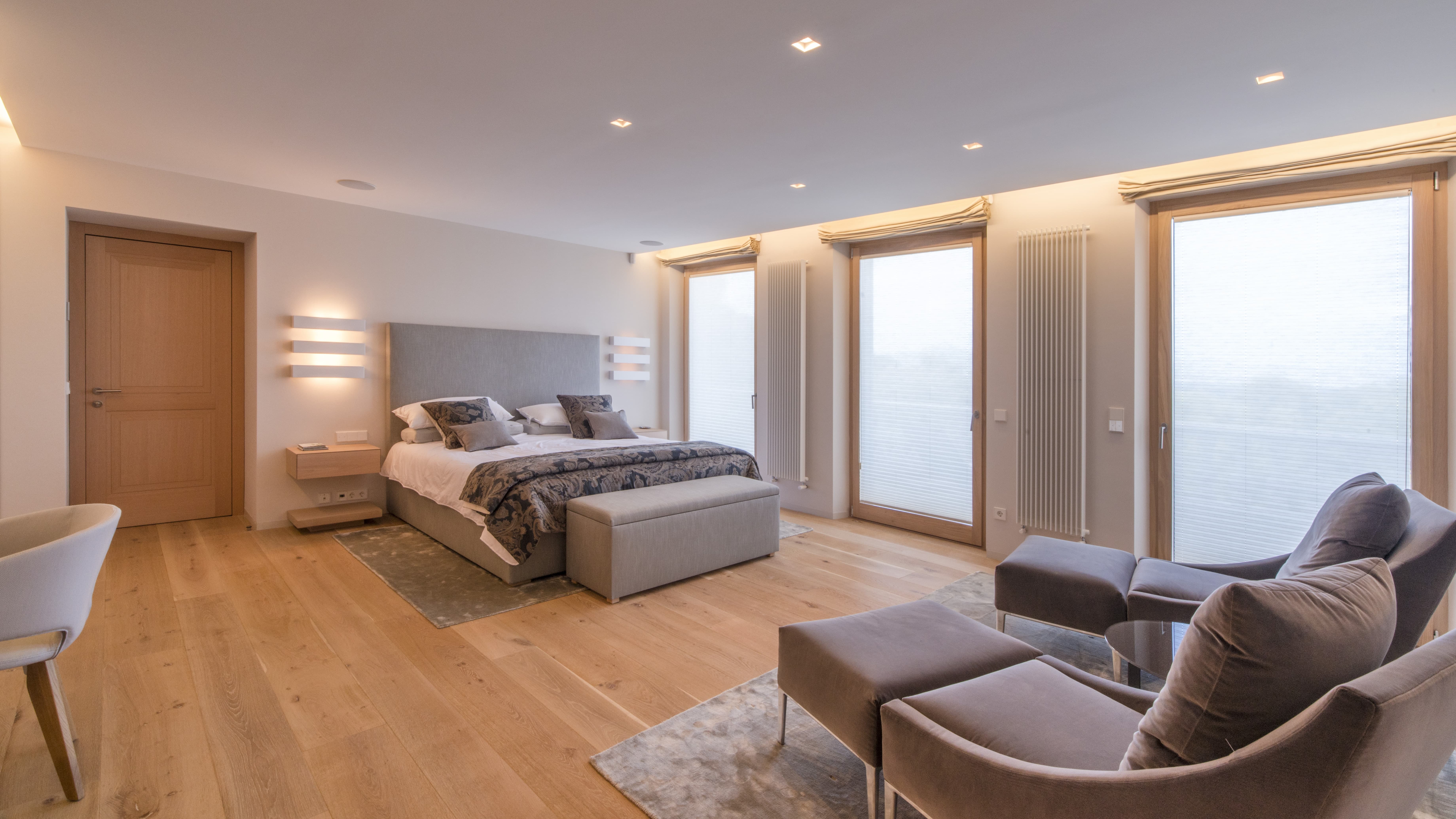 Individually adjustable air conditioning and underfloor heating ensure comfort throughout the seasons, allowing each space to be tailored to personal preference.