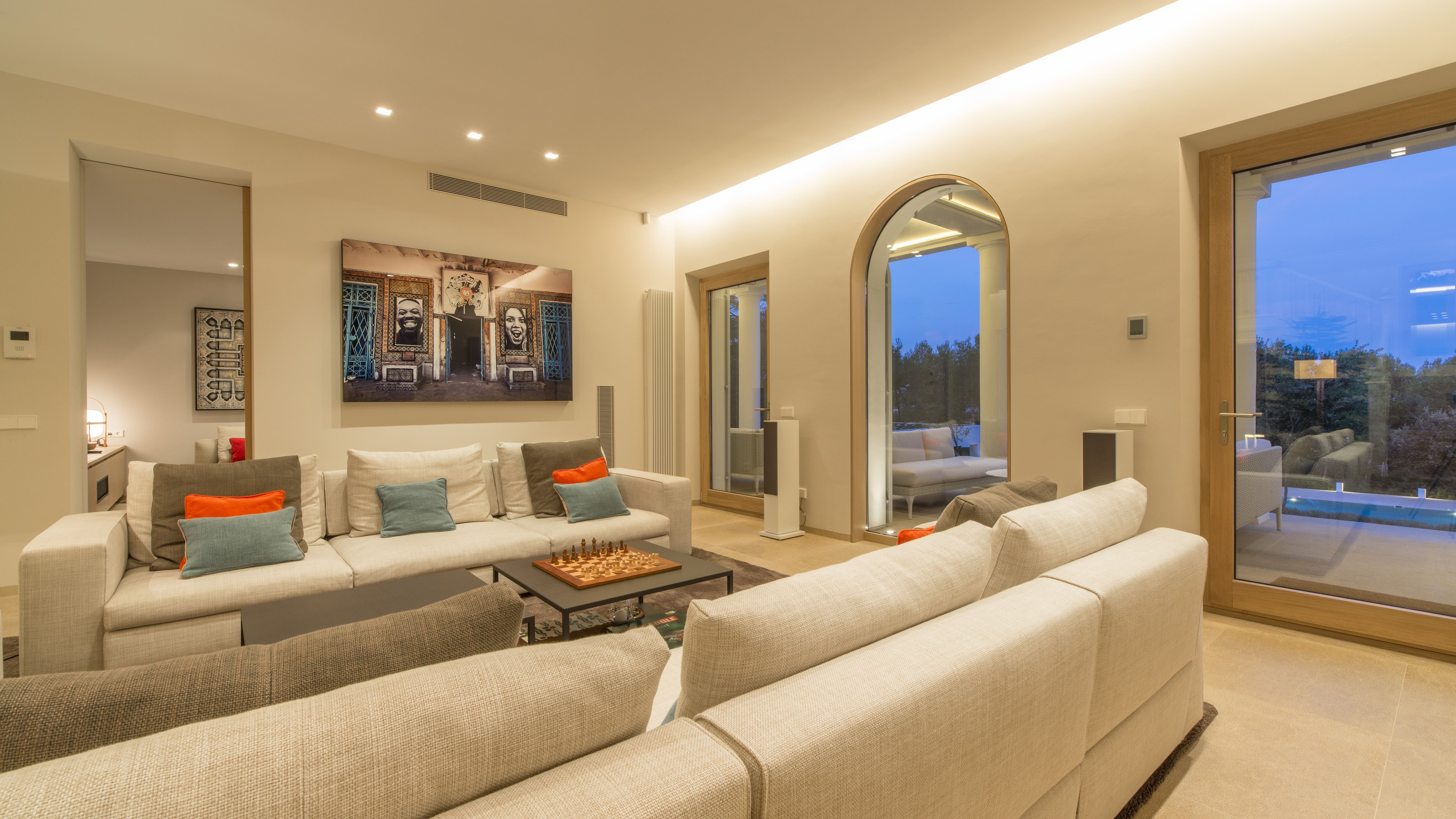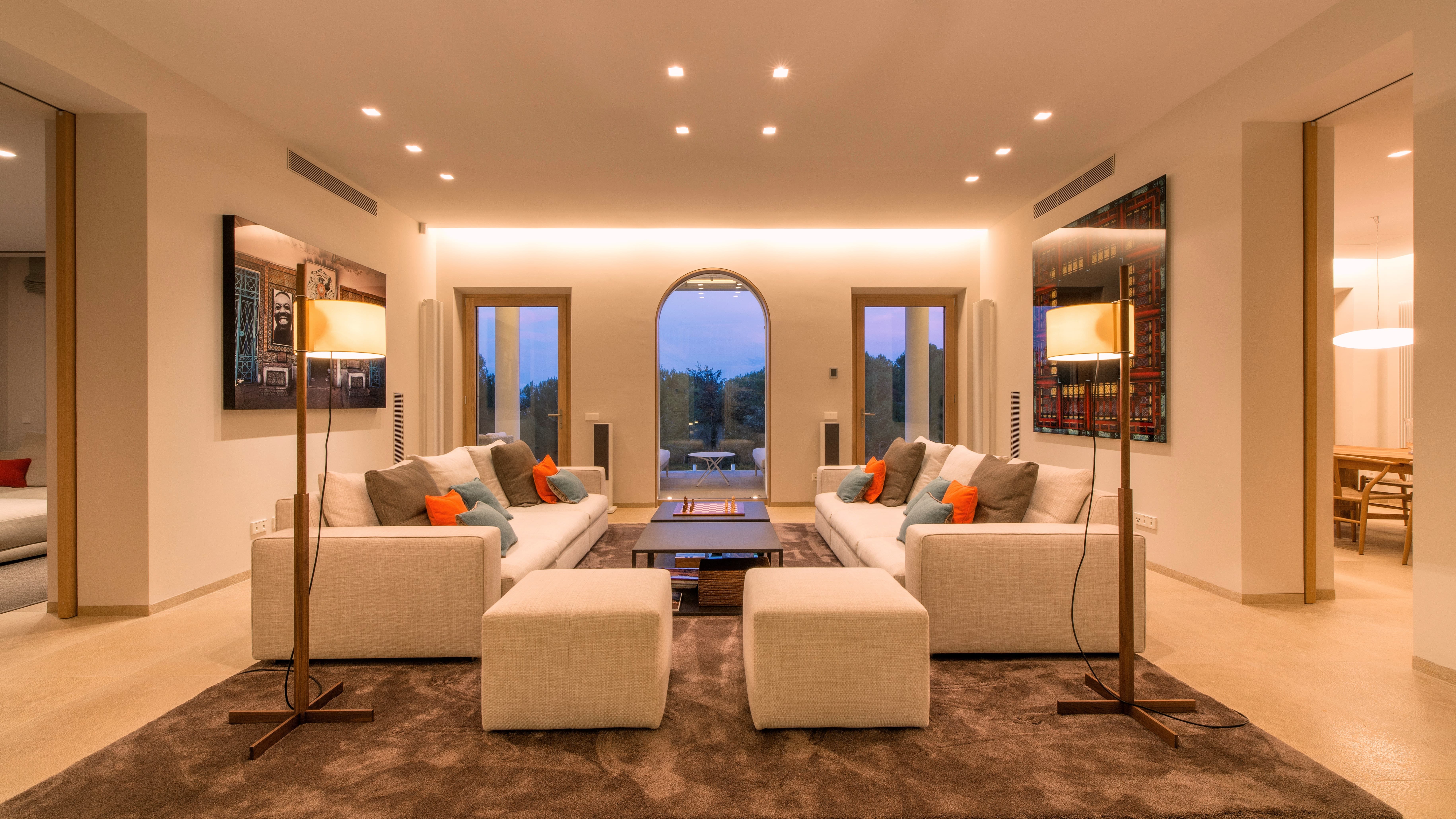 Expansive, light-filled interiors designed for both gathering and retreat, where elegant living areas flow naturally between one another and open onto the surrounding terraces. The scale of the main residence creates a sense of space and ease, while maintaining a warm, welcoming atmosphere throughout.