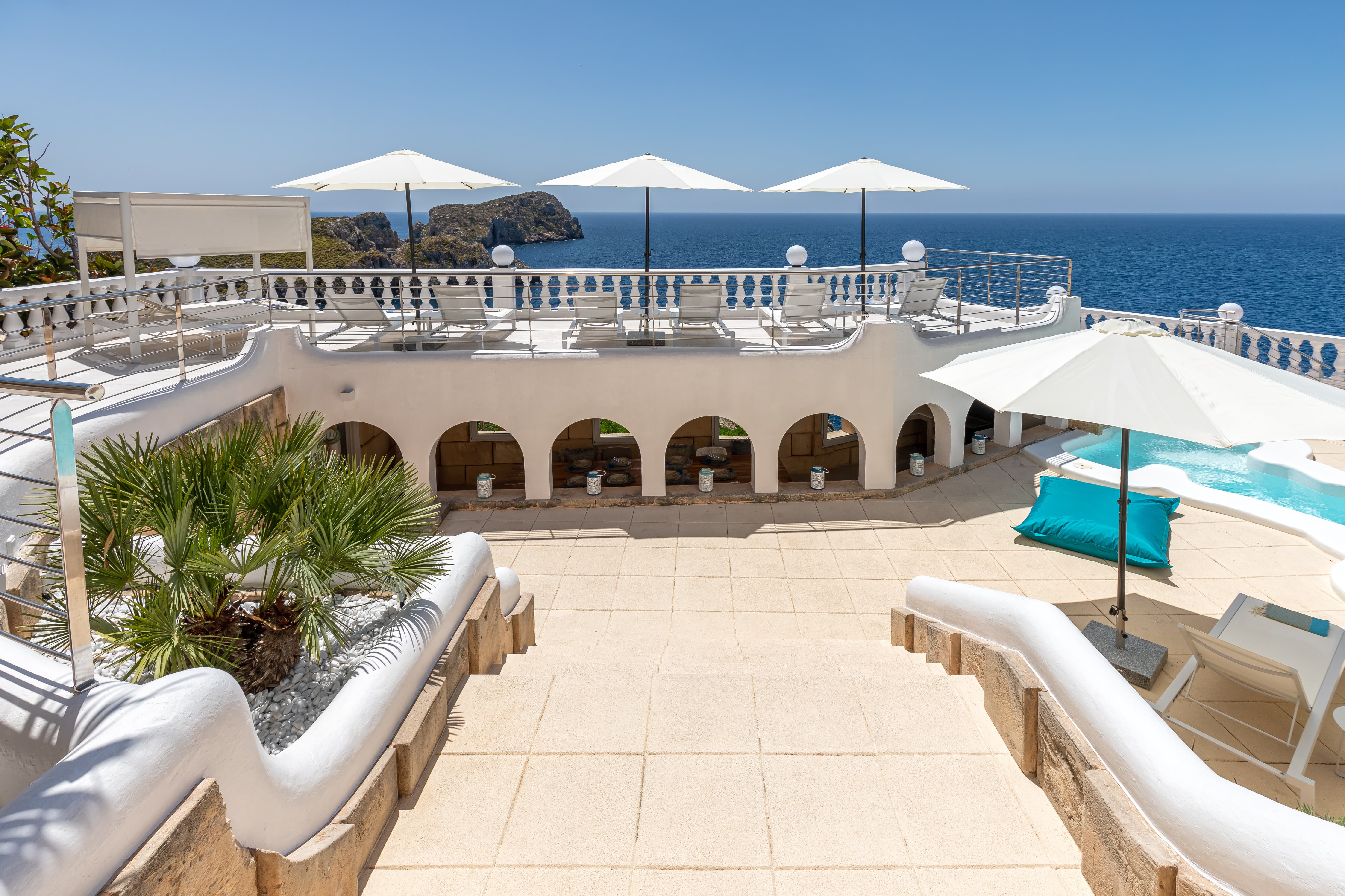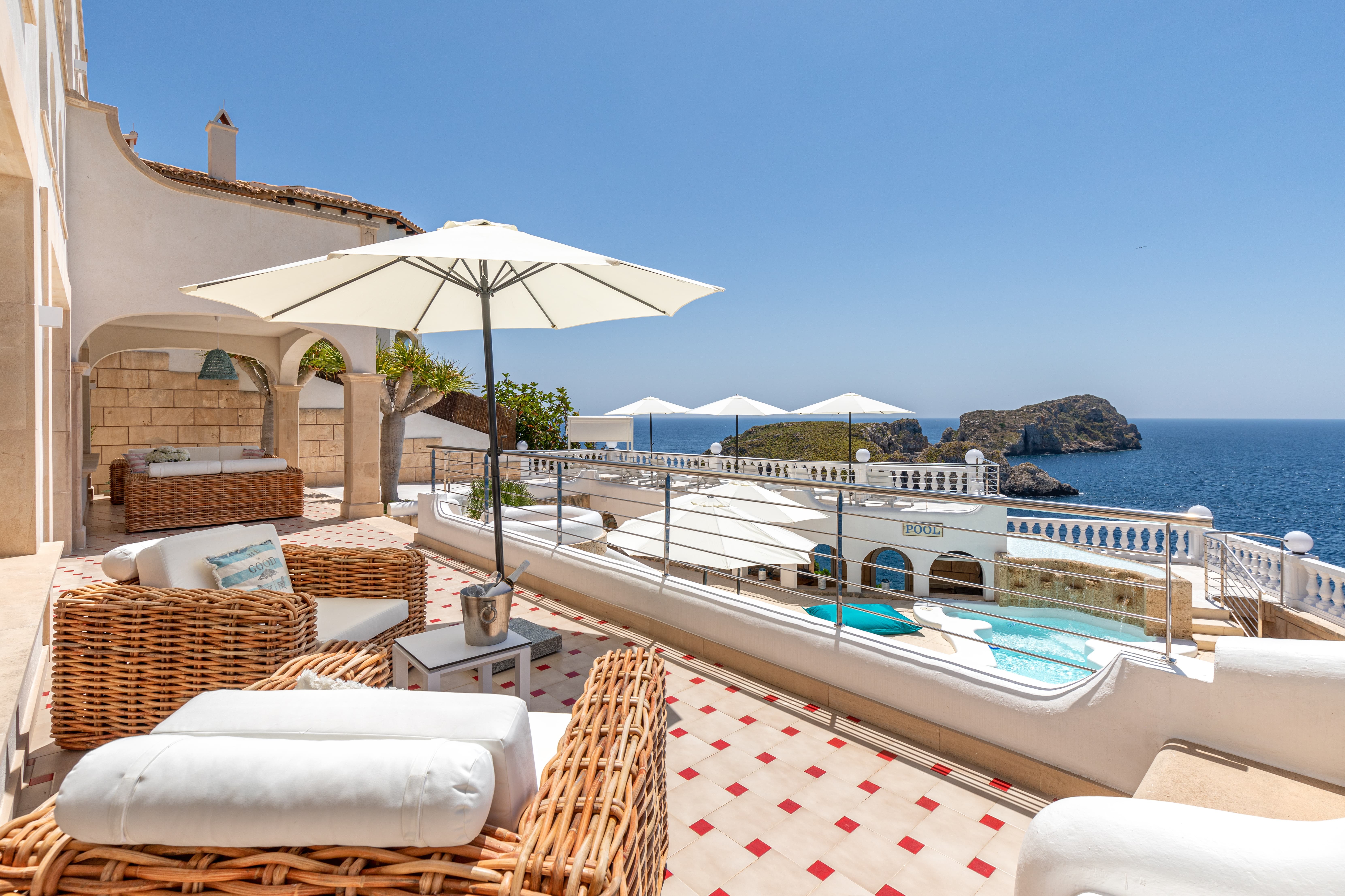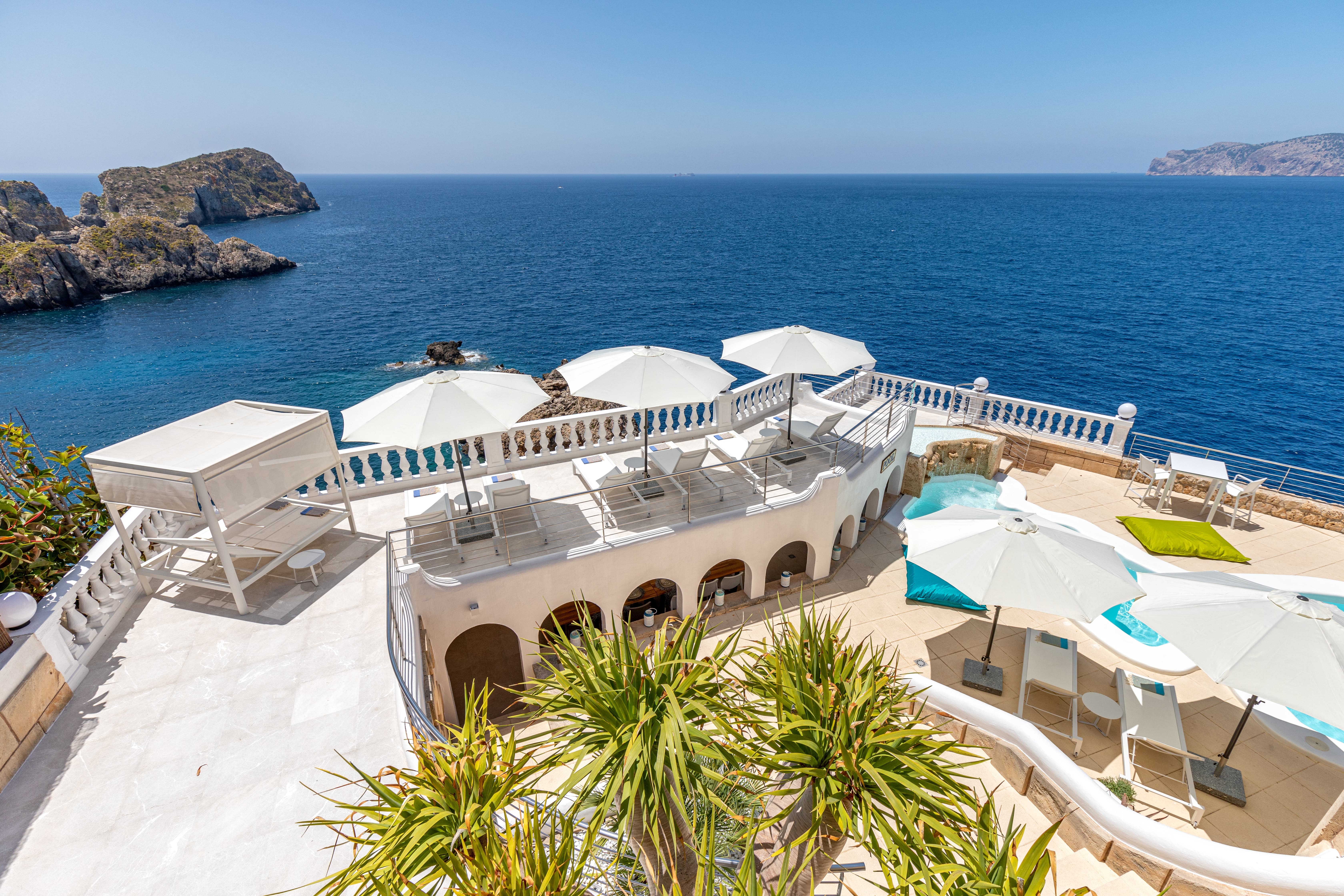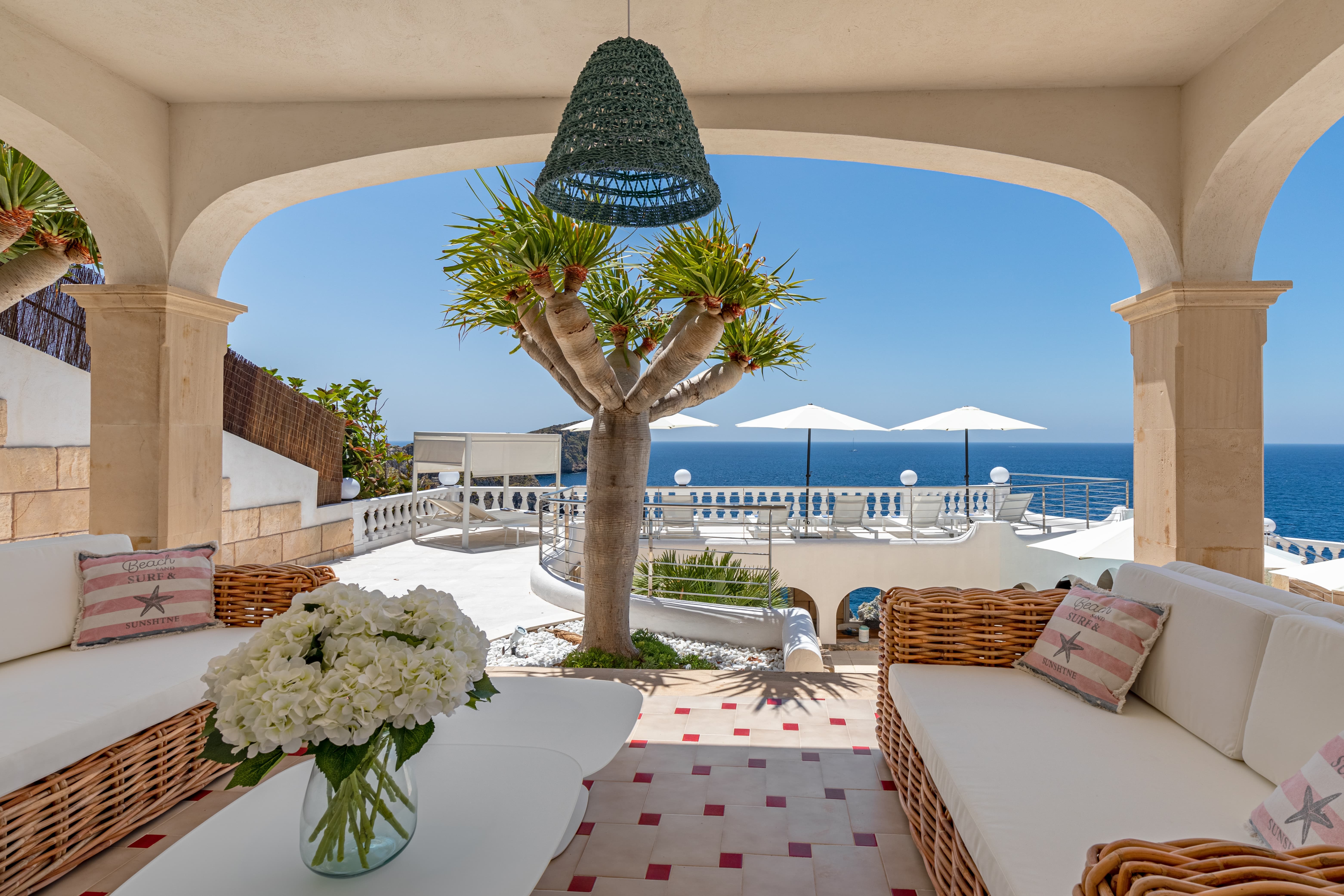 Set directly on the seafront in Santa Ponsa, the villa enjoys uninterrupted panoramic views, direct sea access, and a rare sense of privacy, while remaining close to beaches, golf courses, restaurants, and Palma.