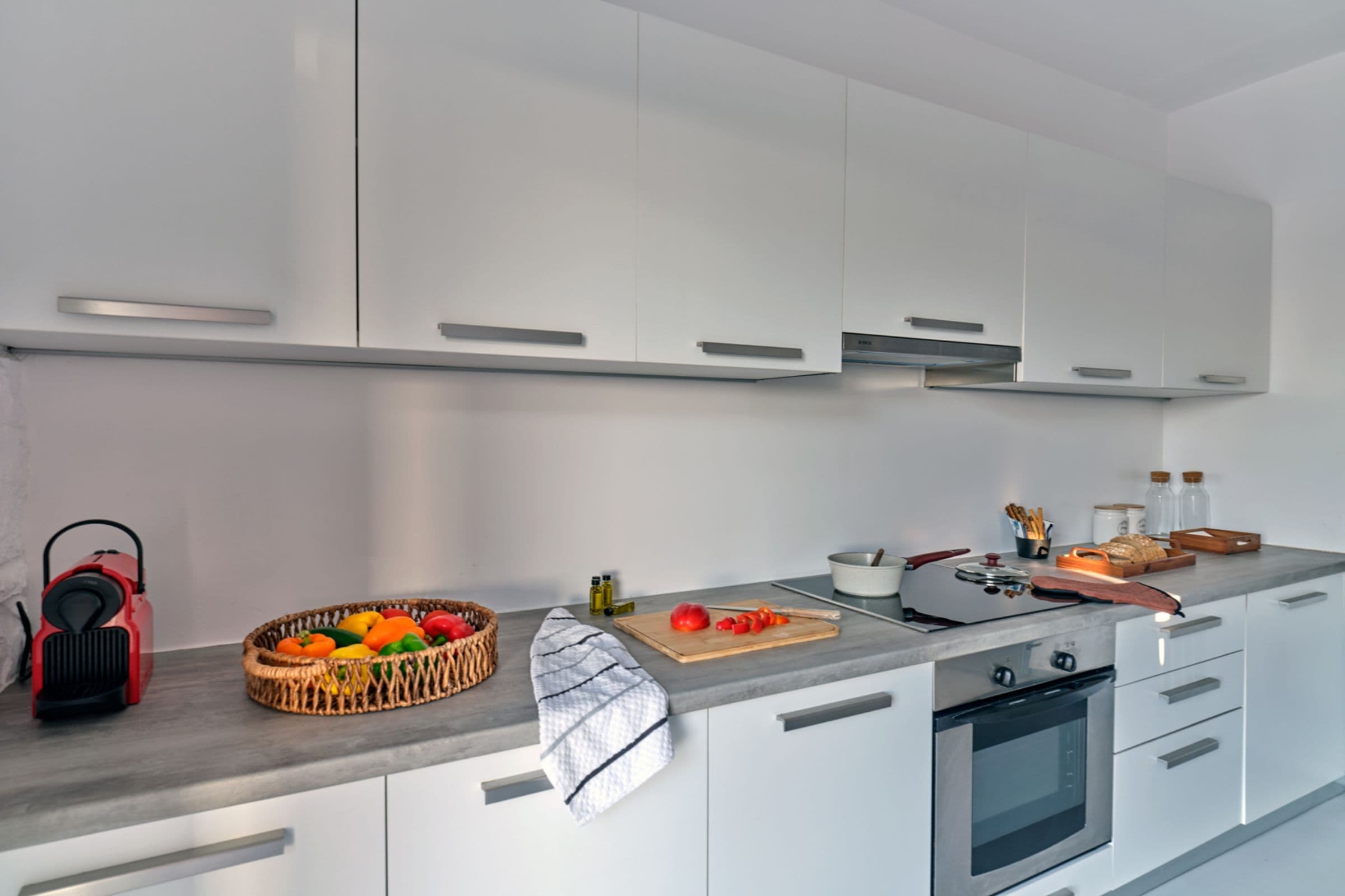 A fully equipped kitchen sits at the heart of the property, seamlessly connected to the dining and living areas. Designed for both relaxed use and private chef experiences, the space supports effortless hosting. Indoor and outdoor dining areas provide a range of settings, with the shaded veranda offering an ideal environment for long, open-air meals overlooking the sea.