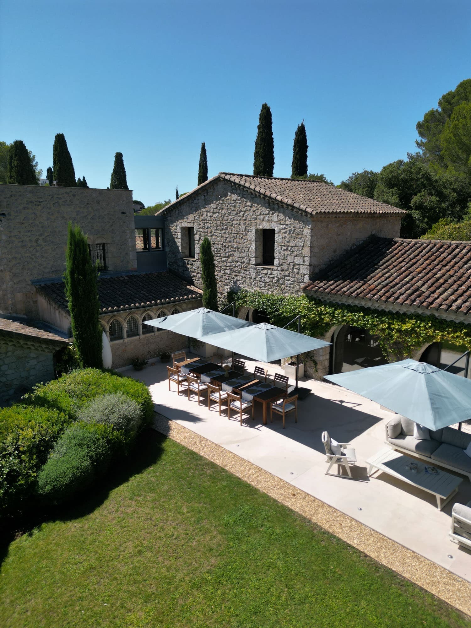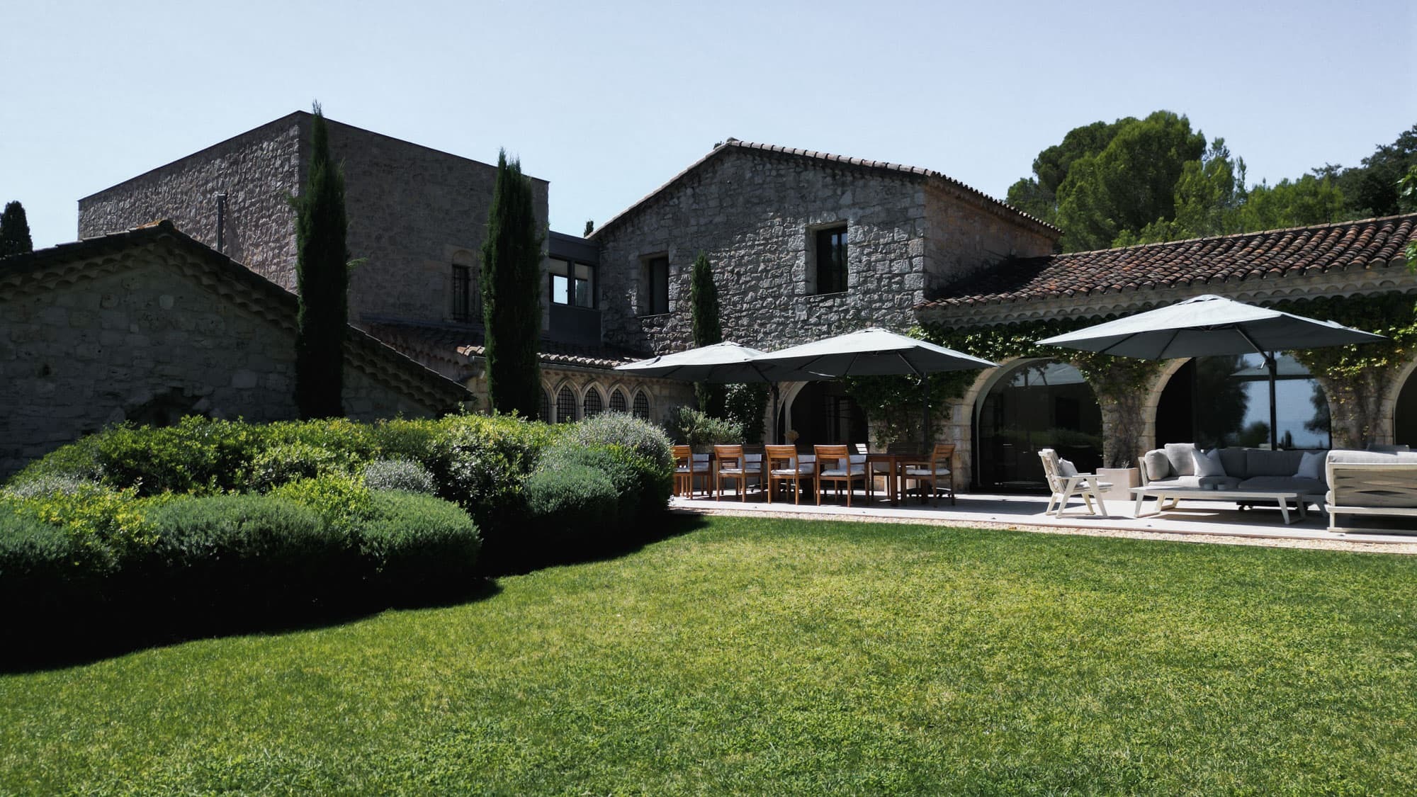 Set high above the coastline of the French Riviera, Abbaye Privée is a remarkable 600 sqm residence crafted from the original materials of a 13th-century abbey. The result is a villa of rare character, where centuries-old stone meets refined, minimalist interiors and uninterrupted Mediterranean light.