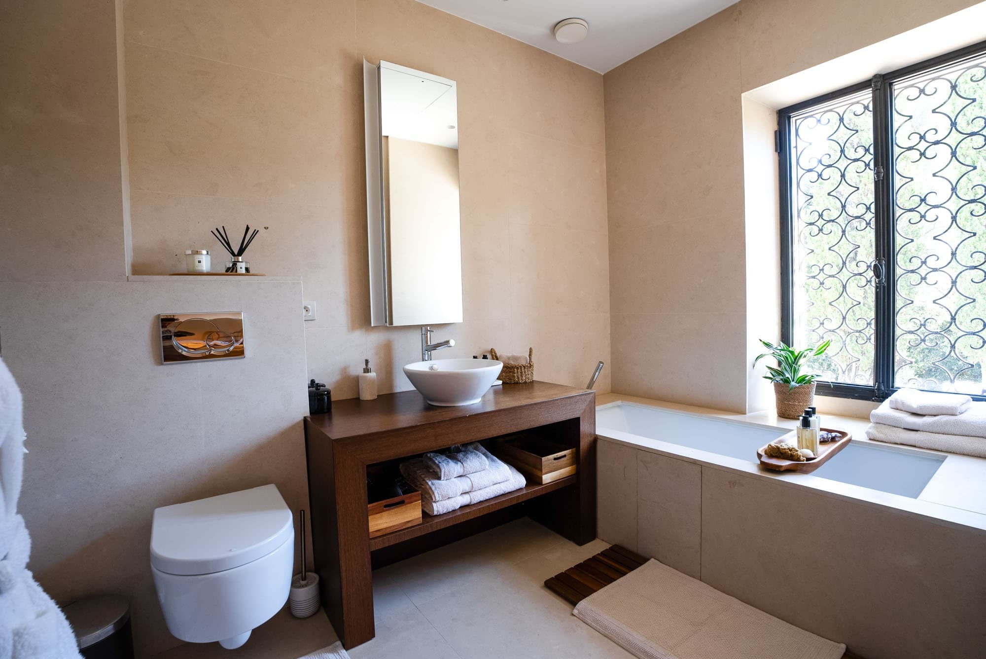 High-speed WiFi is available throughout the villa and outdoor terraces. Quiet interior lounges and shaded garden spaces provide suitable settings for remote work or private calls, should business accompany leisure.