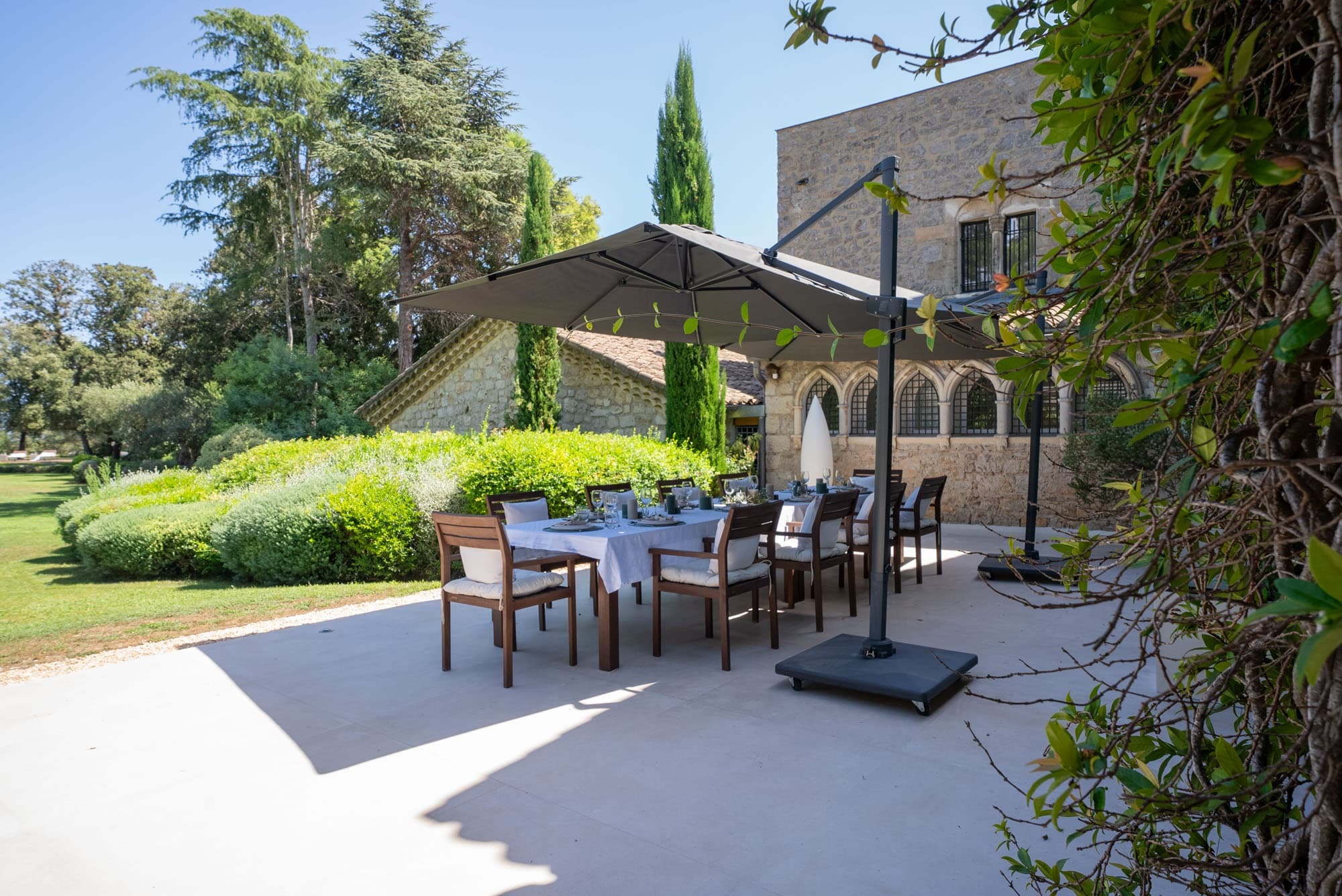 Positioned within a vast 45,000 sqm private domain, the estate offers total seclusion while remaining within easy reach of the Riviera’s beaches, restaurants, and cultural landmarks. Surrounded by provincial vegetation and framed by distant sea views, the villa feels both grounded in history and effortlessly contemporary.