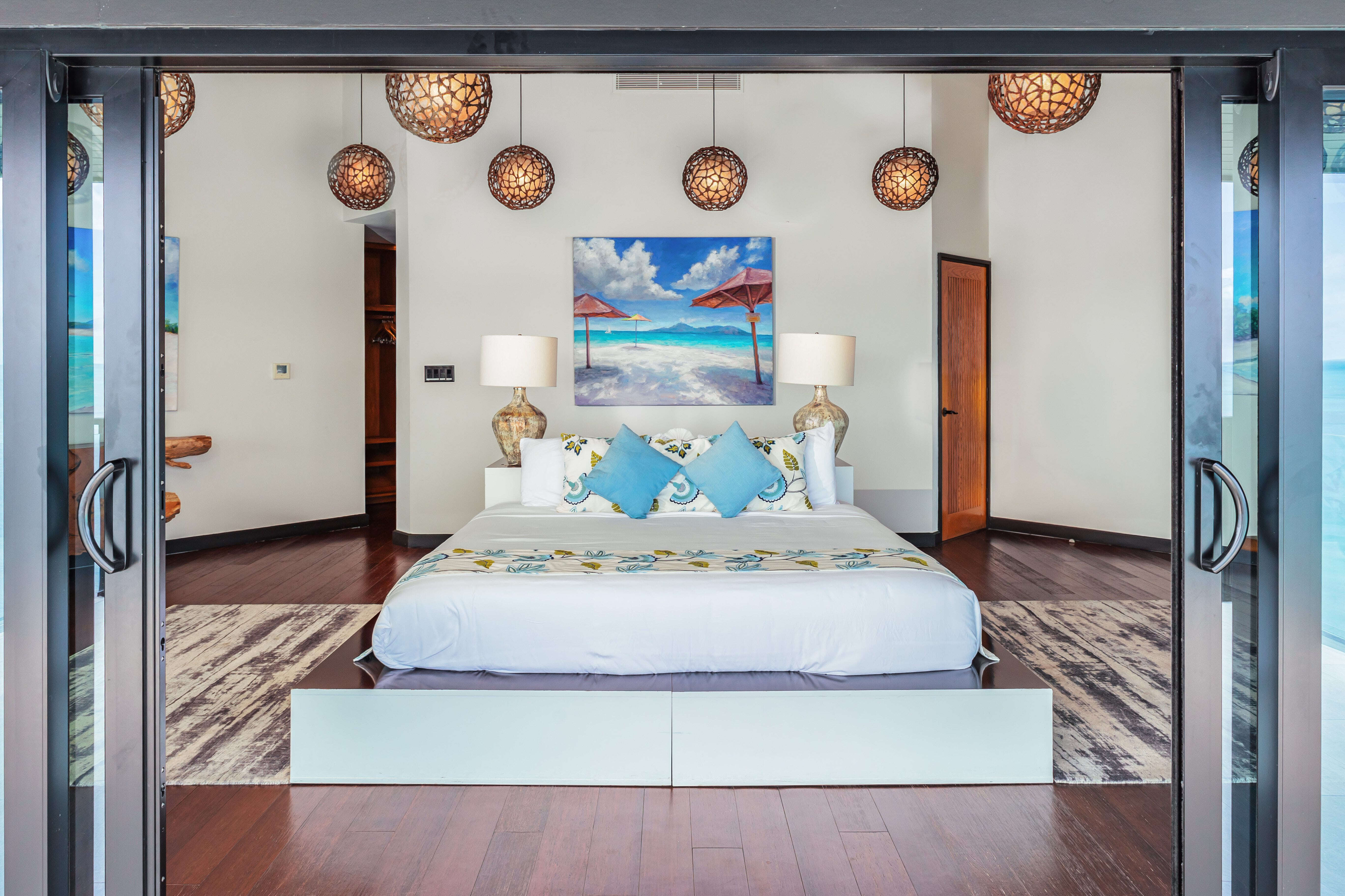 Ocean 5 is designed for relaxed beachfront living. Smart televisions and cable service are available throughout the villa, while the terrace, pool, and beach beyond provide natural spaces for social time, reading, and sunset moments.