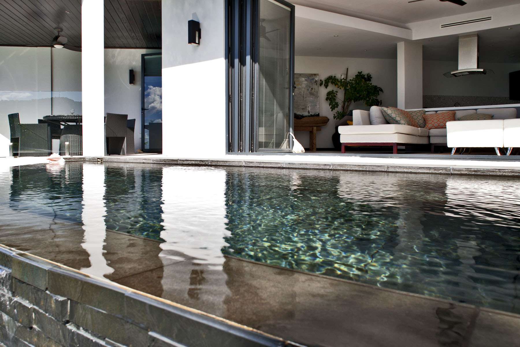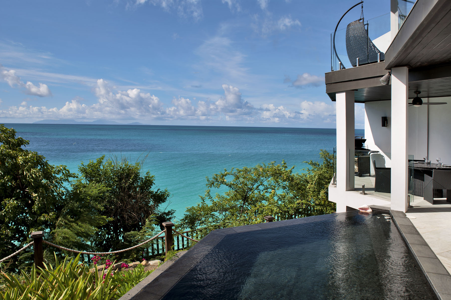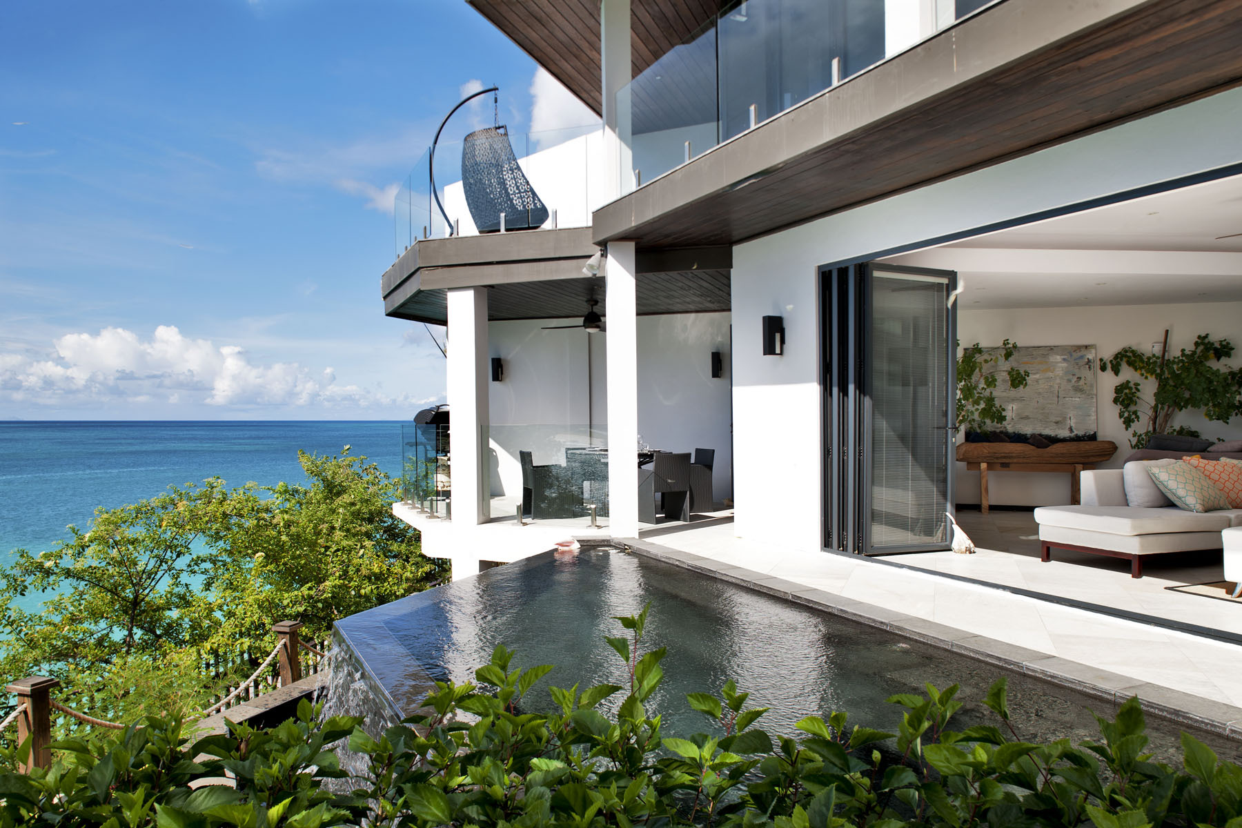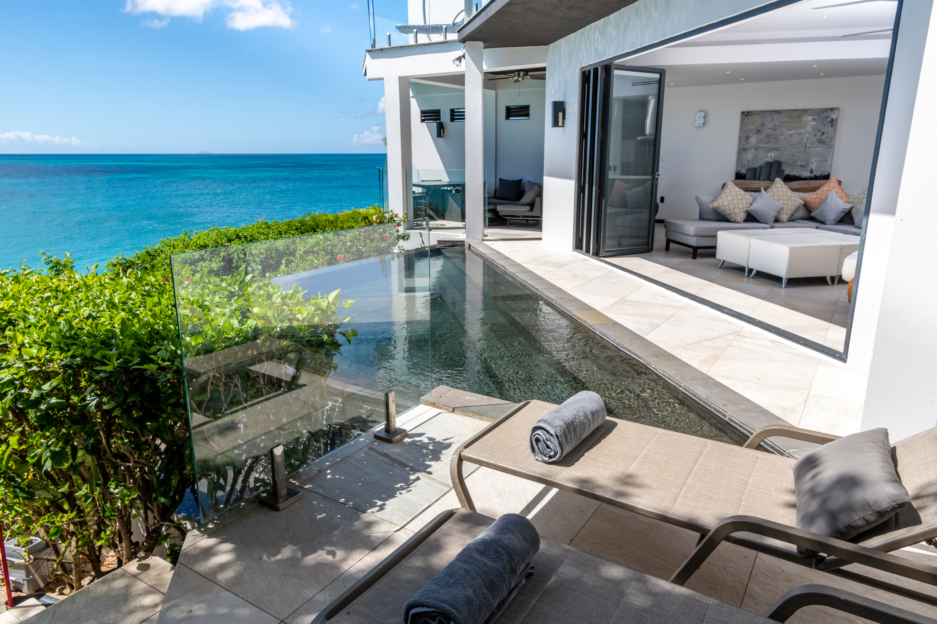Ocean Blessed is designed for relaxed coastal living. Smart televisions and cable service are available throughout the villa, while the terrace, pool, and balconies provide natural spaces for reading, sunbathing, and quiet evenings overlooking the sea.
