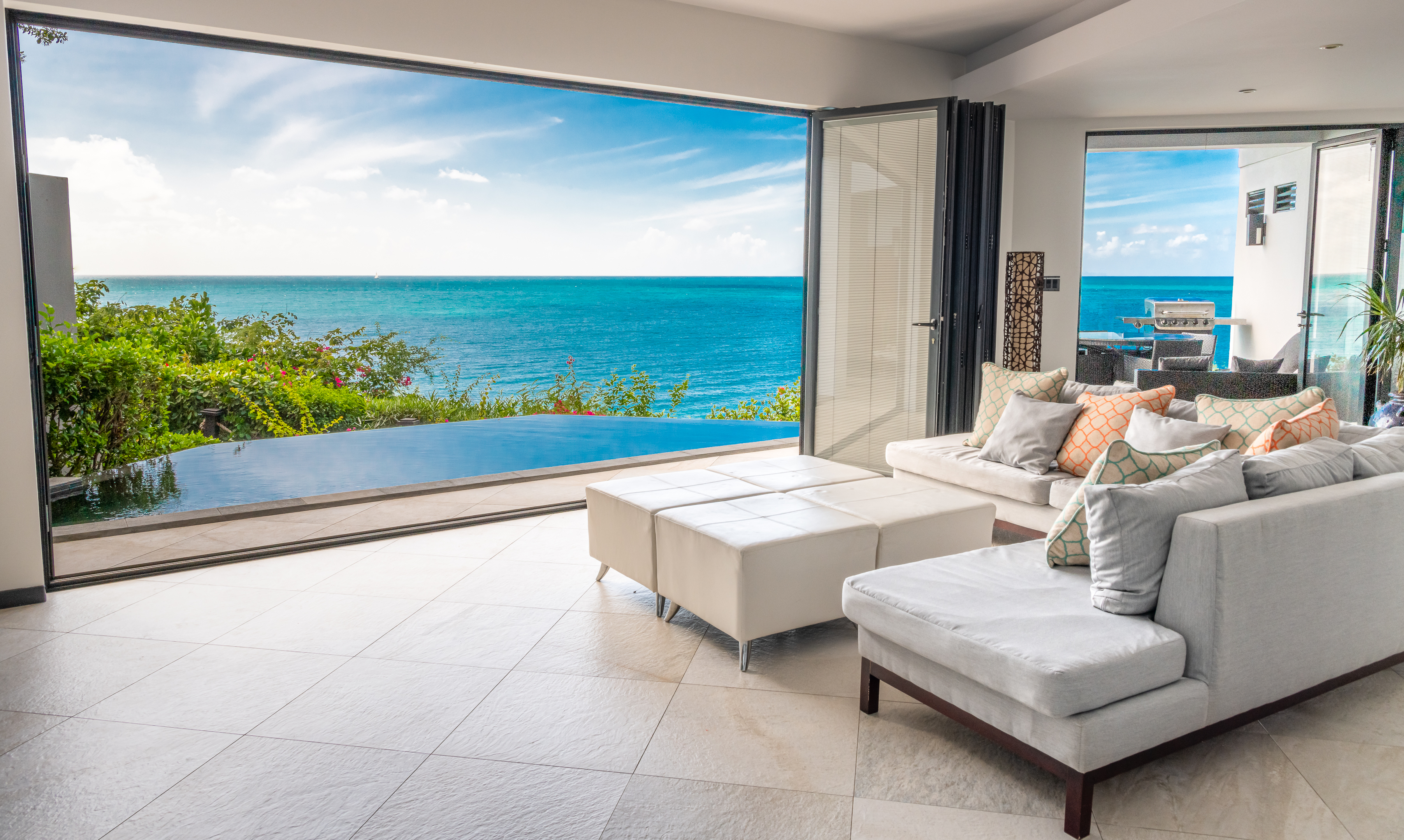 Ocean Blessed is a refined two bedroom oceanfront villa set above the sands of Darkwood Beach, offering wide, uninterrupted views across the Caribbean Sea. Calm and beautifully positioned, the villa feels both private and deeply connected to its surroundings, creating a sense of ease from the moment you arrive.