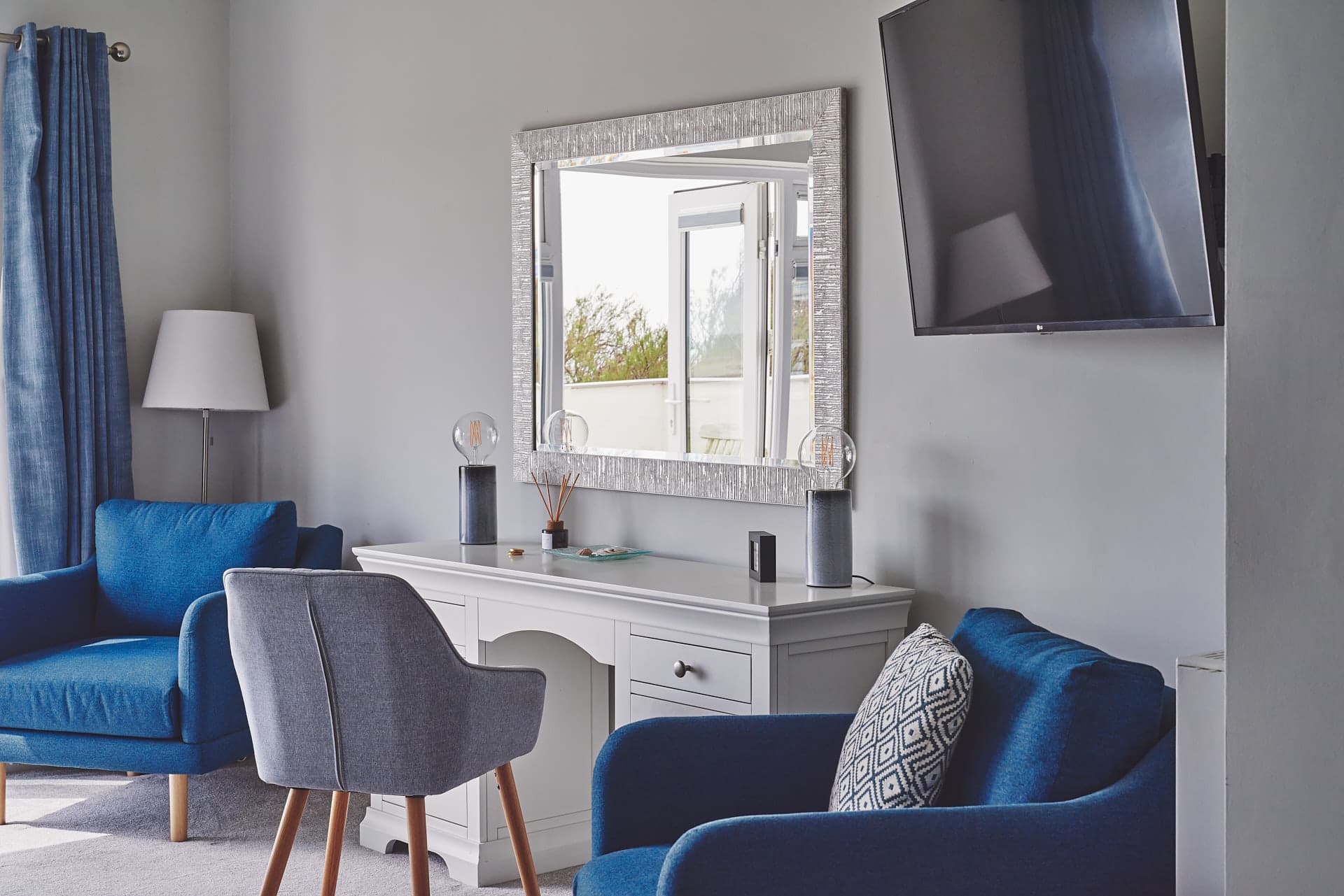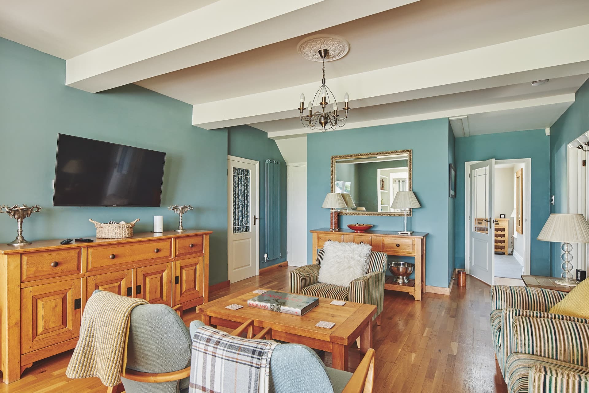 Ocean Edge is designed for both lively gatherings and cosy nights in. The 85-inch Smart TV with full Sky package creates a cinema-style experience in the main living area, while additional Smart TVs throughout the house ensure flexibility for every guest. The Skye Bar, complete with its own television and panoramic sea views, becomes a year-round social hub. Board games, books, and the glow of the log burner round out evenings that feel effortless and memorable.