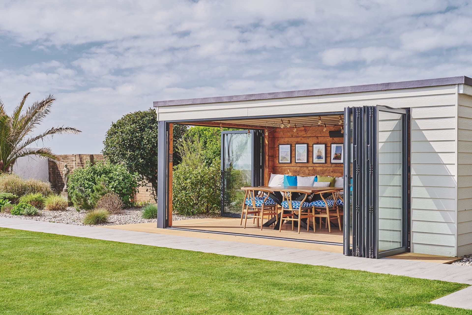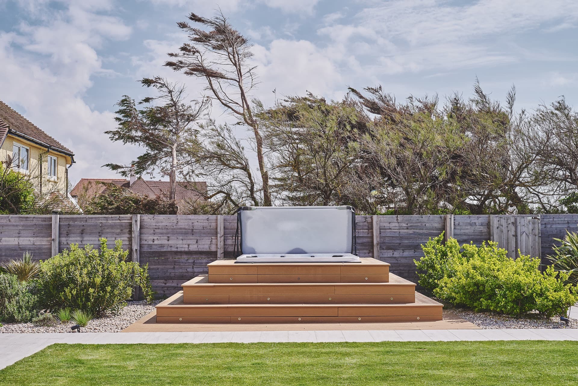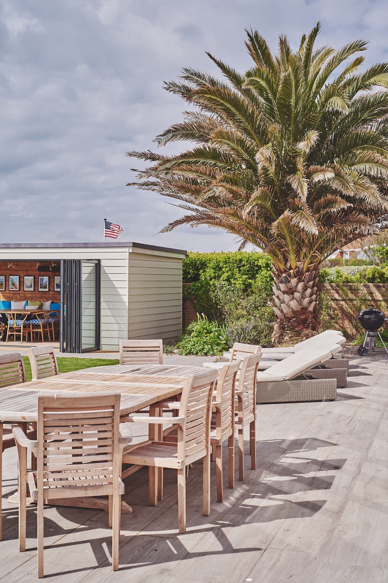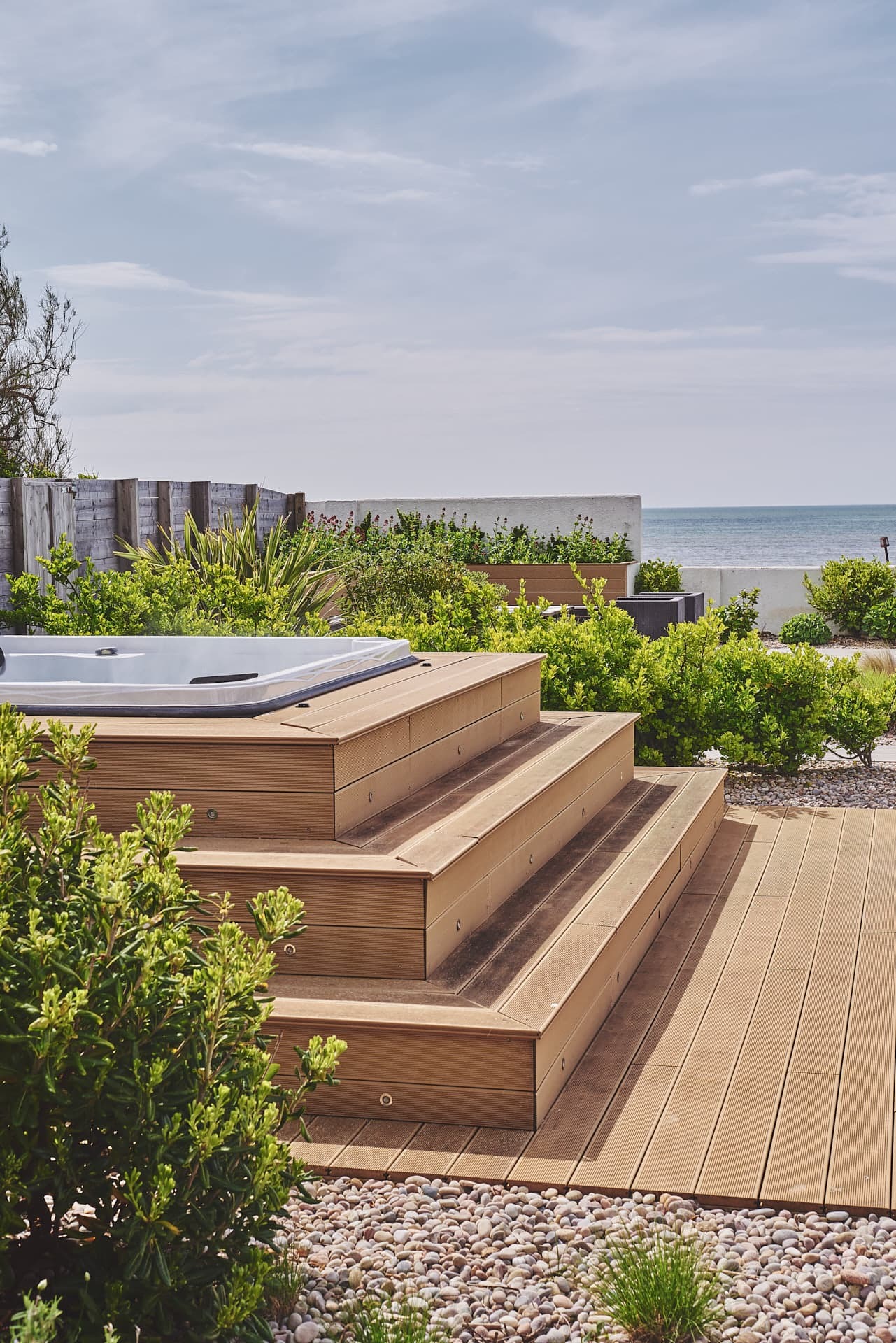 Life here unfolds outdoors. A private hot tub overlooks the water, the full-width balcony captures sweeping views, and the enclosed garden offers space for both children and dogs to roam safely. Sun loungers, a fire pit, alfresco dining, and the Skye Bar create layered spaces for gathering, while feature lighting and direct beach access make every hour by the sea feel special.