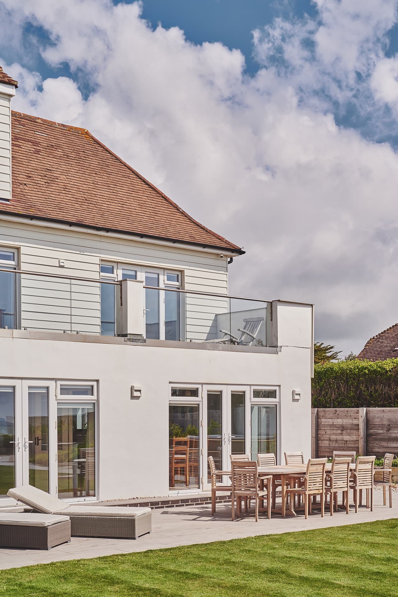 Set directly on the shoreline of West Sussex, Ocean Edge is a refined five bedroom beachfront retreat where panoramic sea views and contemporary comfort shape every stay. Just over an hour from London, this private coastal home offers a rare combination of direct beach access, expansive entertaining space, and thoughtful luxury designed for families, friends, and multigenerational gatherings.