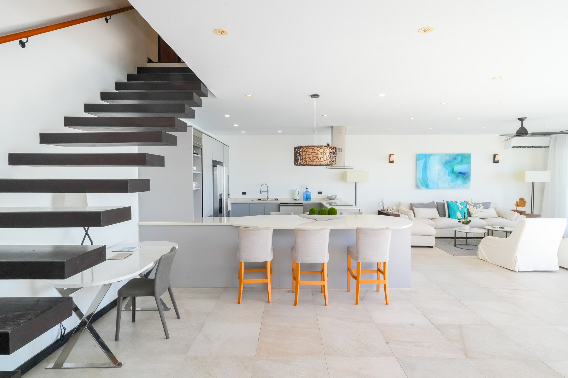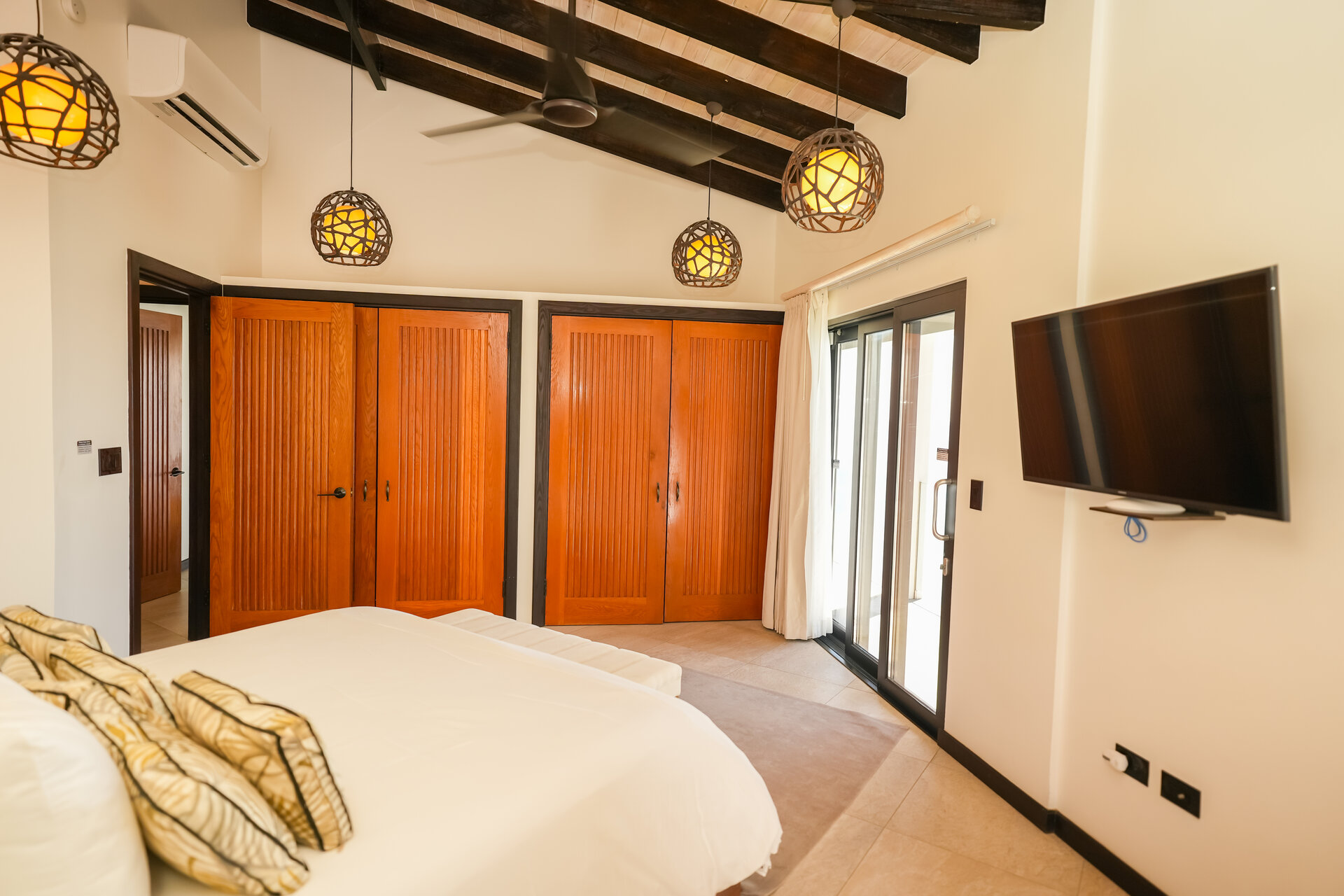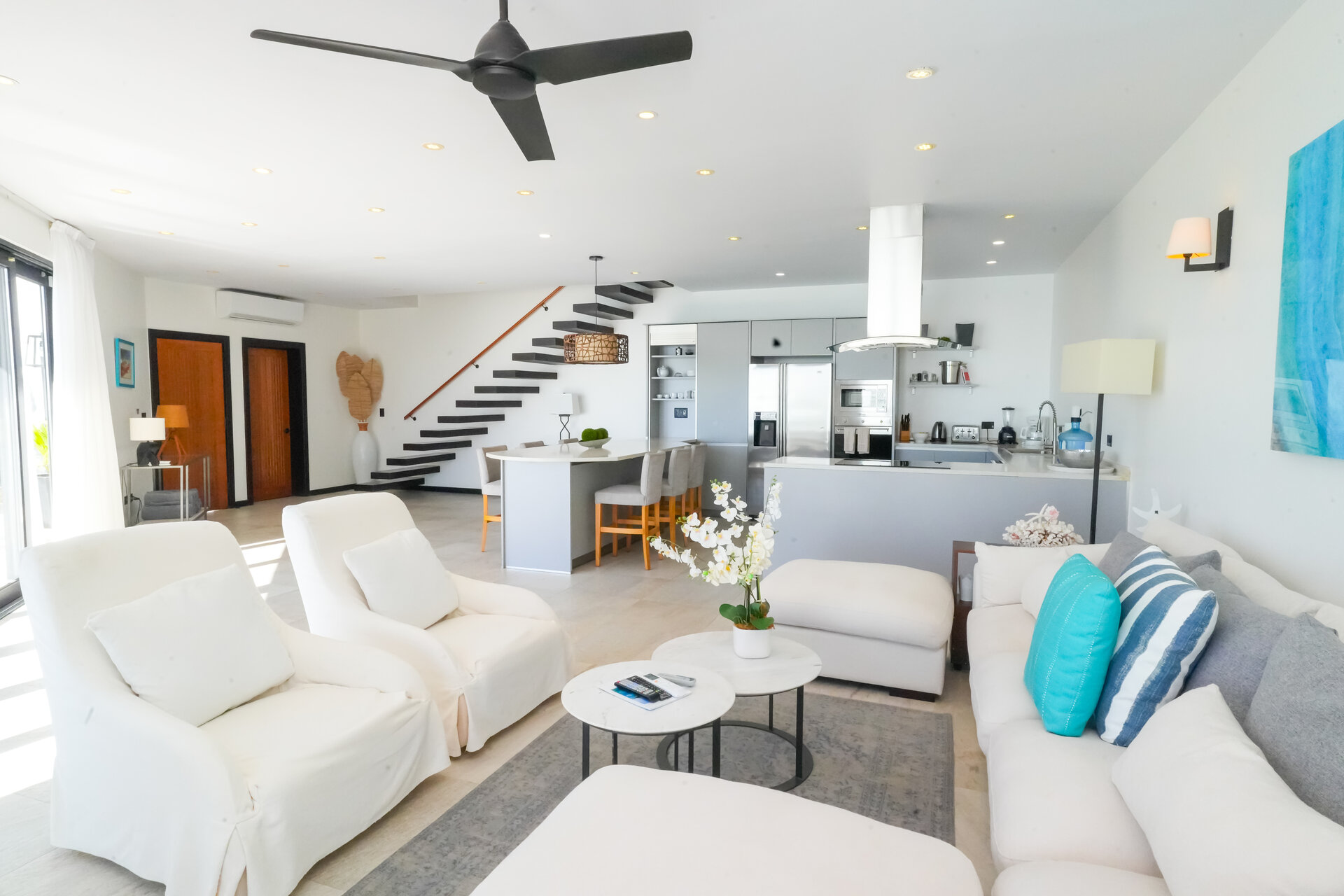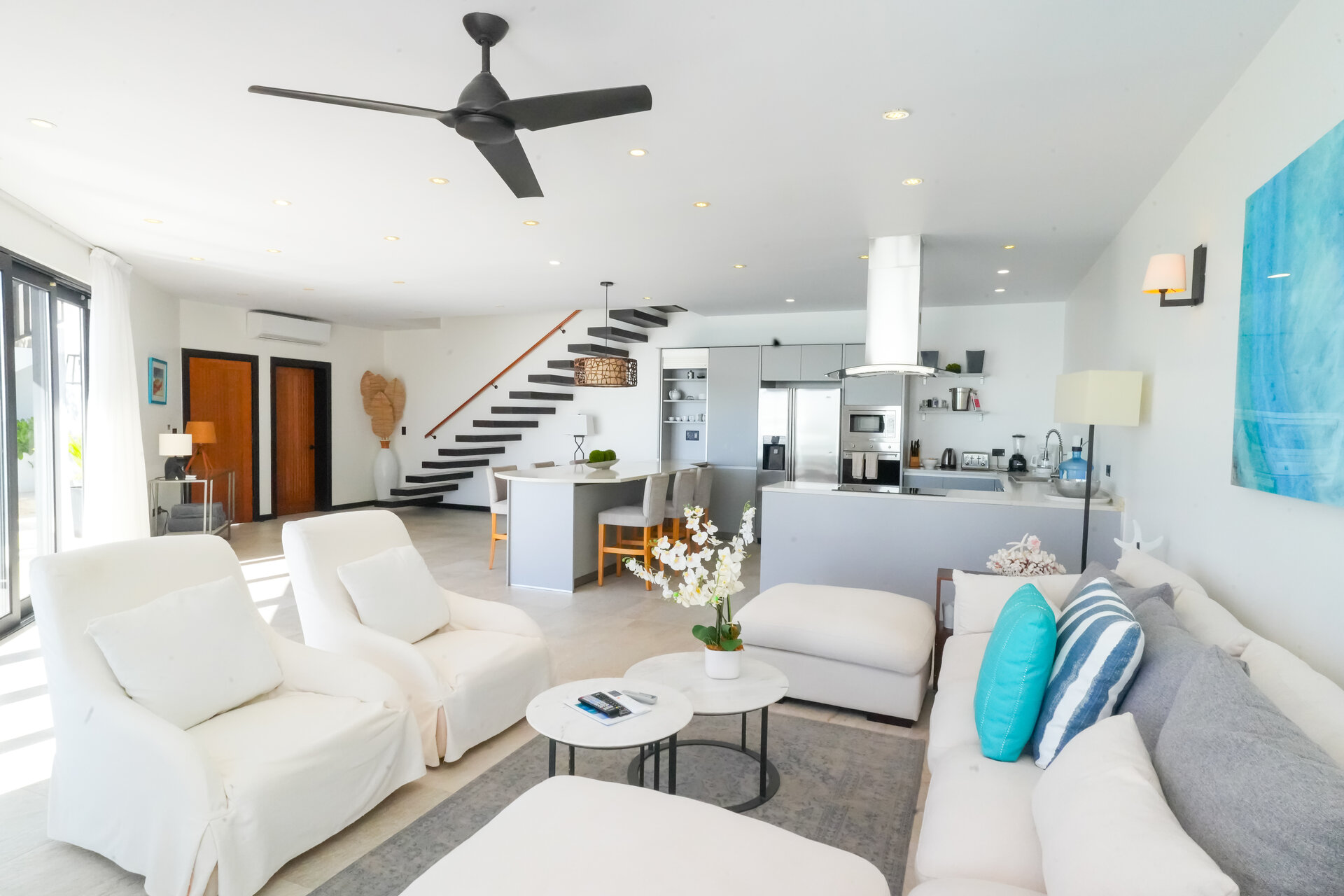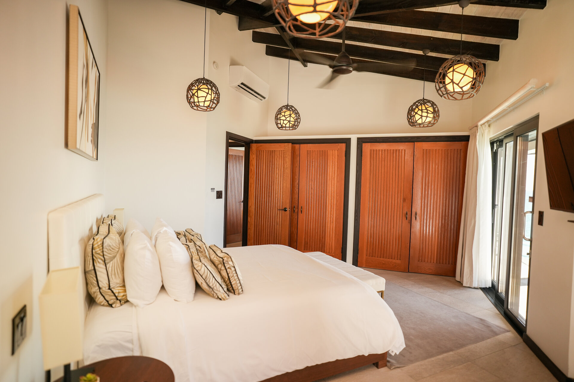 Air conditioning and ceiling fans are installed throughout the villa, ensuring a comfortable indoor climate in all seasons and allowing guests to tailor the environment to their preference.