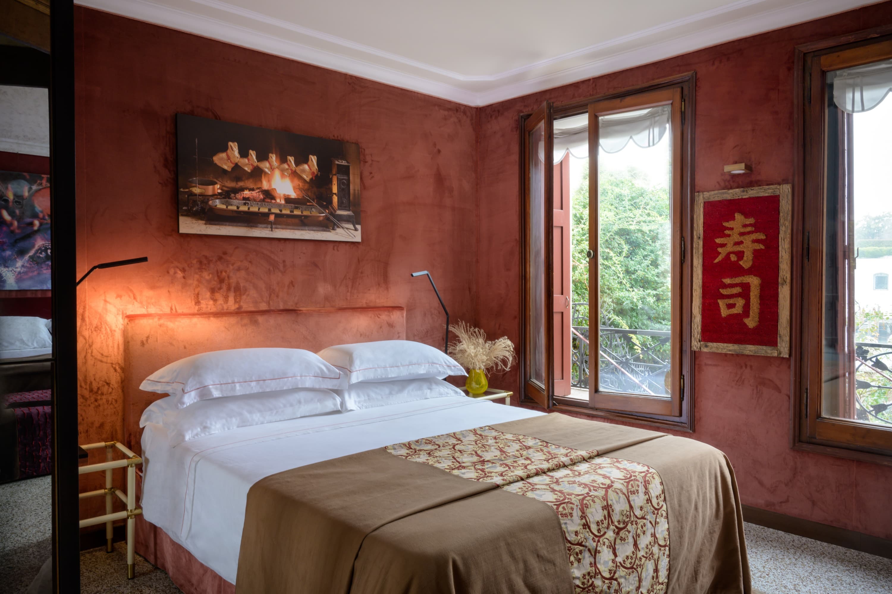 Set along the Grand Canal in one of Venice’s most distinguished residential quarters, Palazzo Canale Rosso is a rare private residence that captures the city’s artistic soul and architectural elegance. With its distinctive terracotta façade softened by cascading greenery, the palazzo stands quietly among Venice’s most historic addresses, offering both presence and privacy.