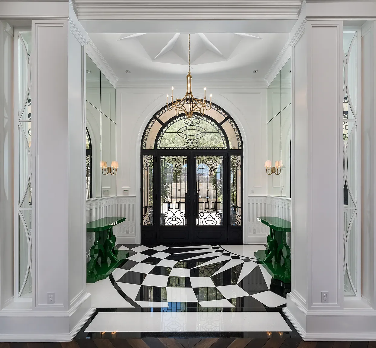 This remarkable 20,000 square foot property includes 7 ensuite bedrooms, 13 bathrooms, 4 fireplaces, 4 separate laundry facilities, 3 full bars, a private office, media room, game room and giant entertaining space. Nationally recognized interior designer, Jamie Herzlinger, completed this home with state of the art furnishings and design elements hearkening back to the time of the Golden Era.