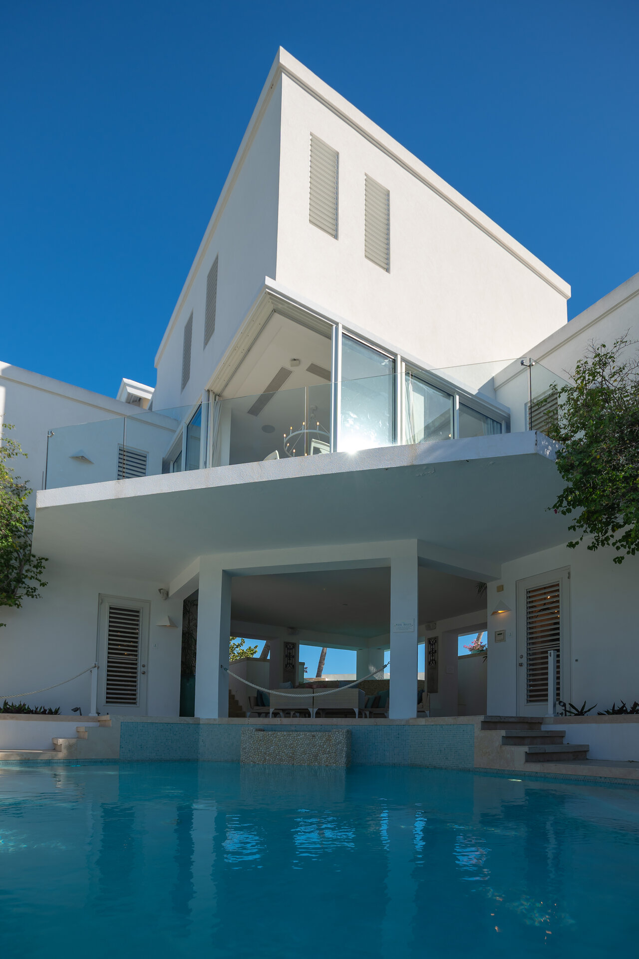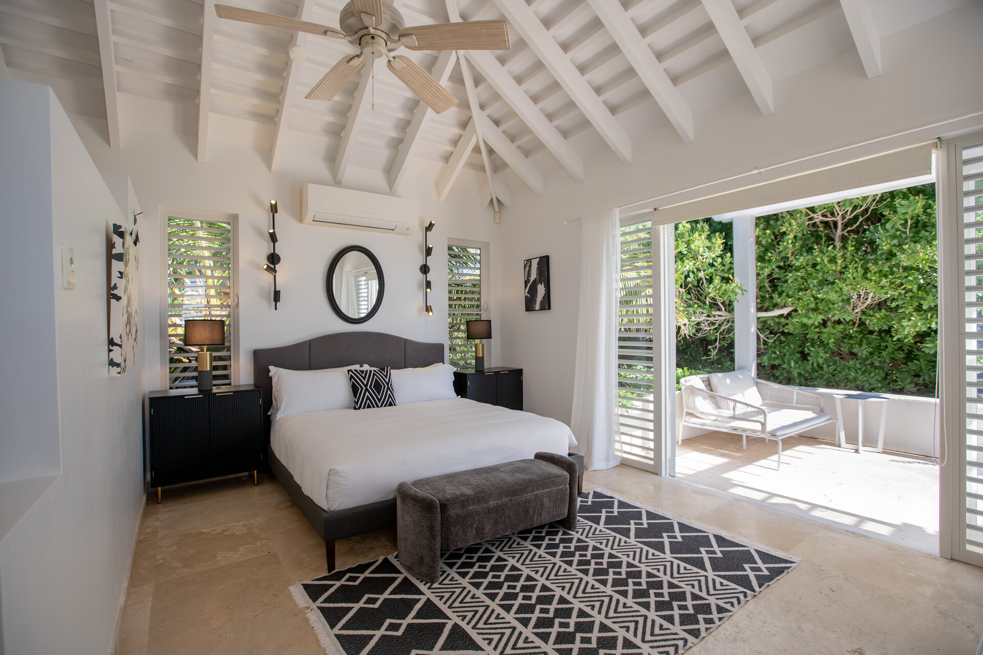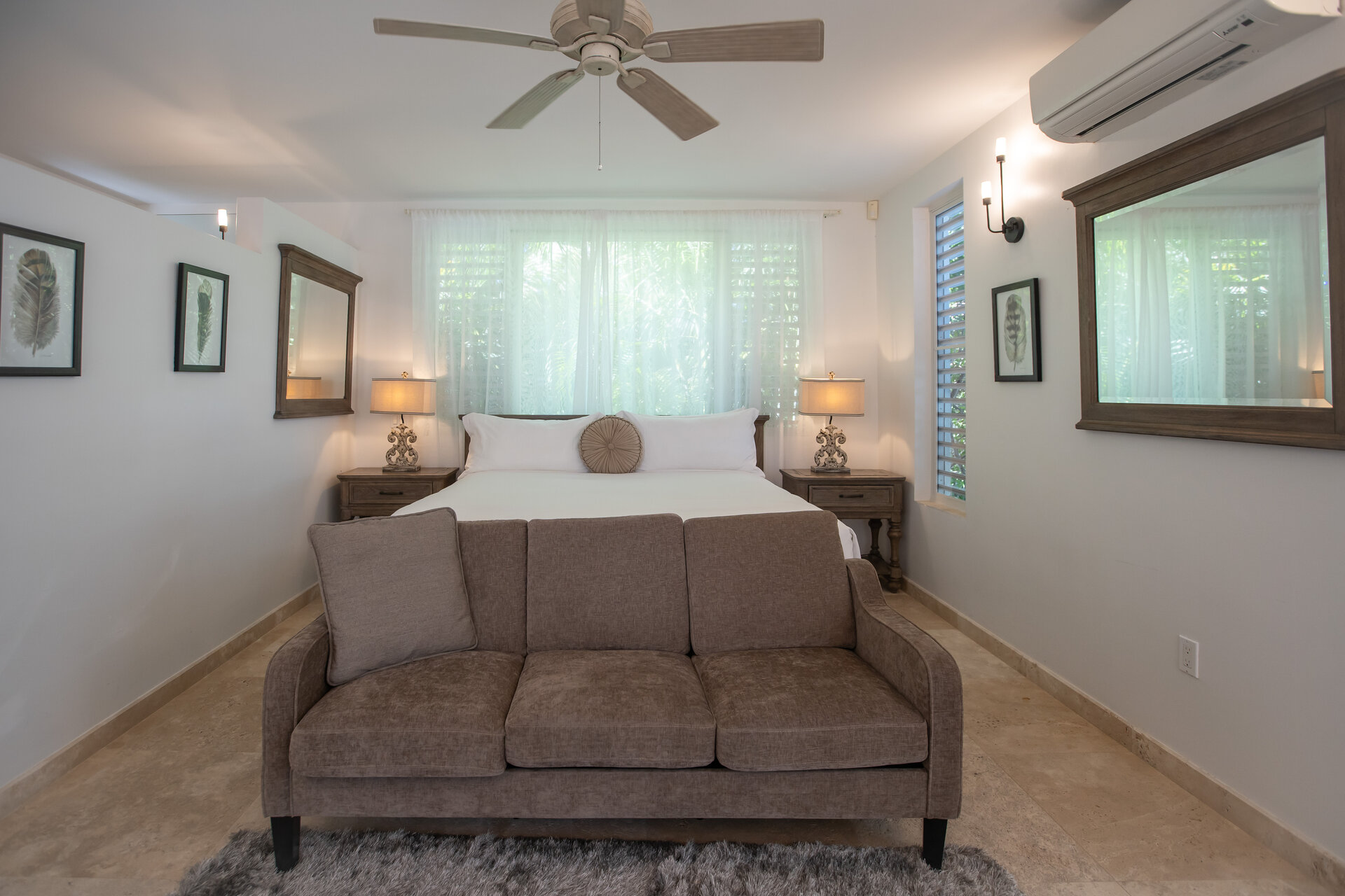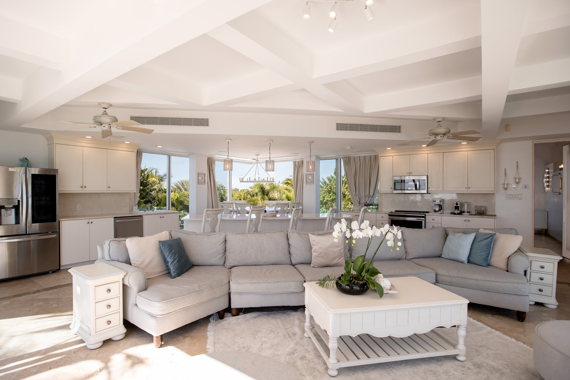 Non metered air conditioning and ceiling fans are installed throughout the villa, maintaining a comfortable climate year round. Shaded terraces and ocean breezes further enhance natural cooling across the estate.