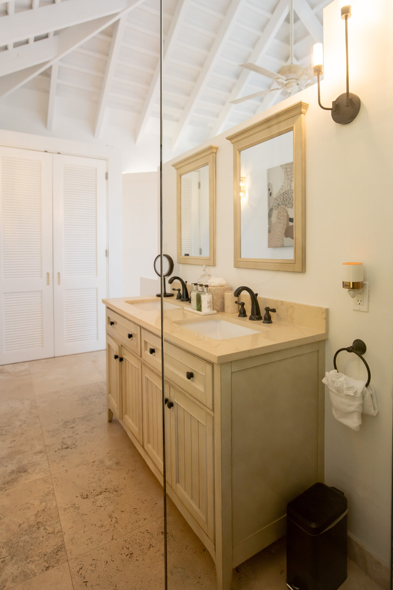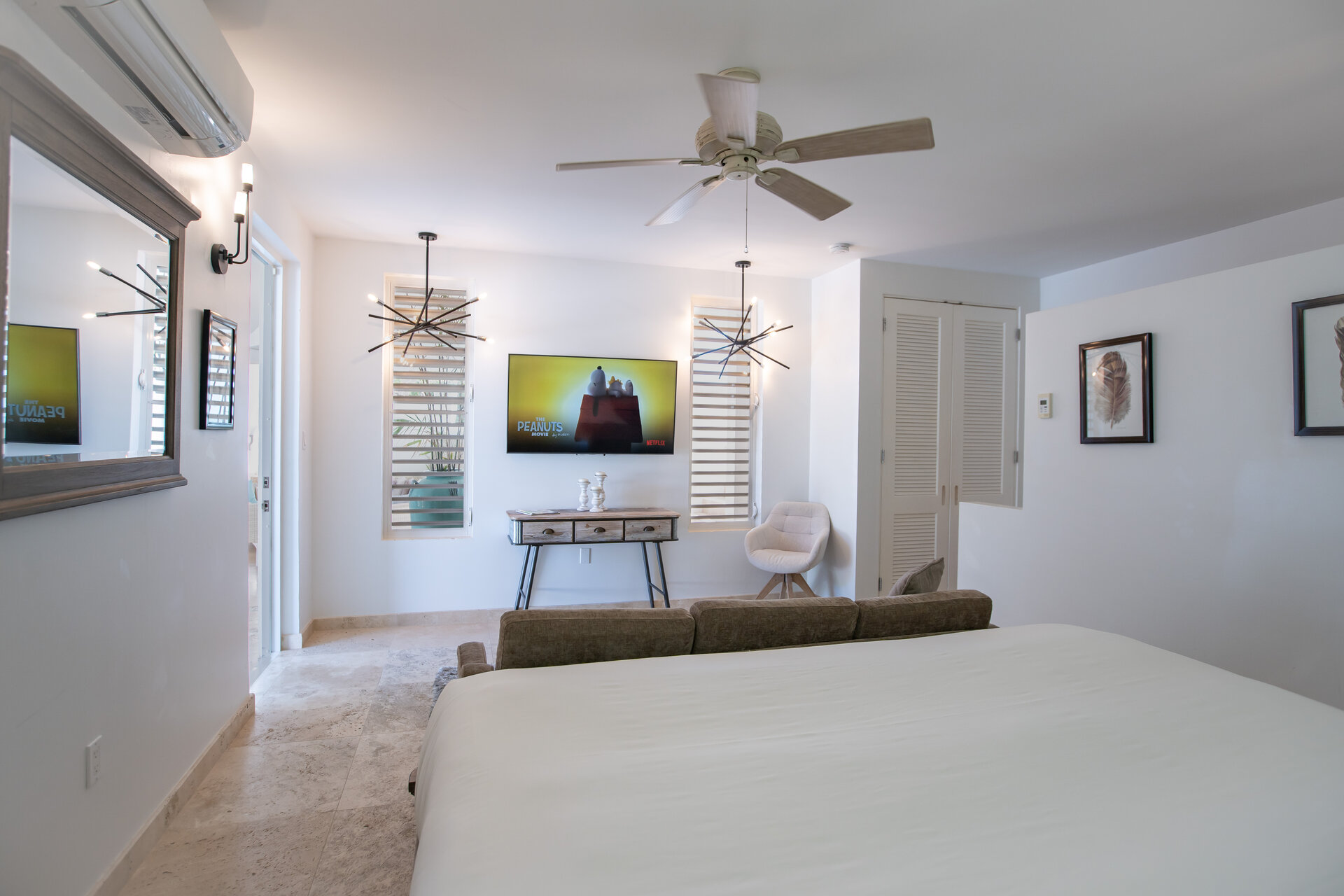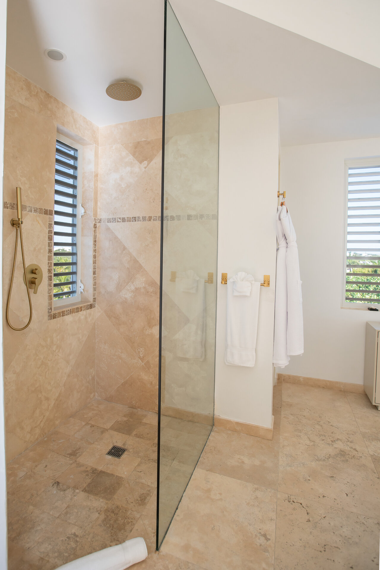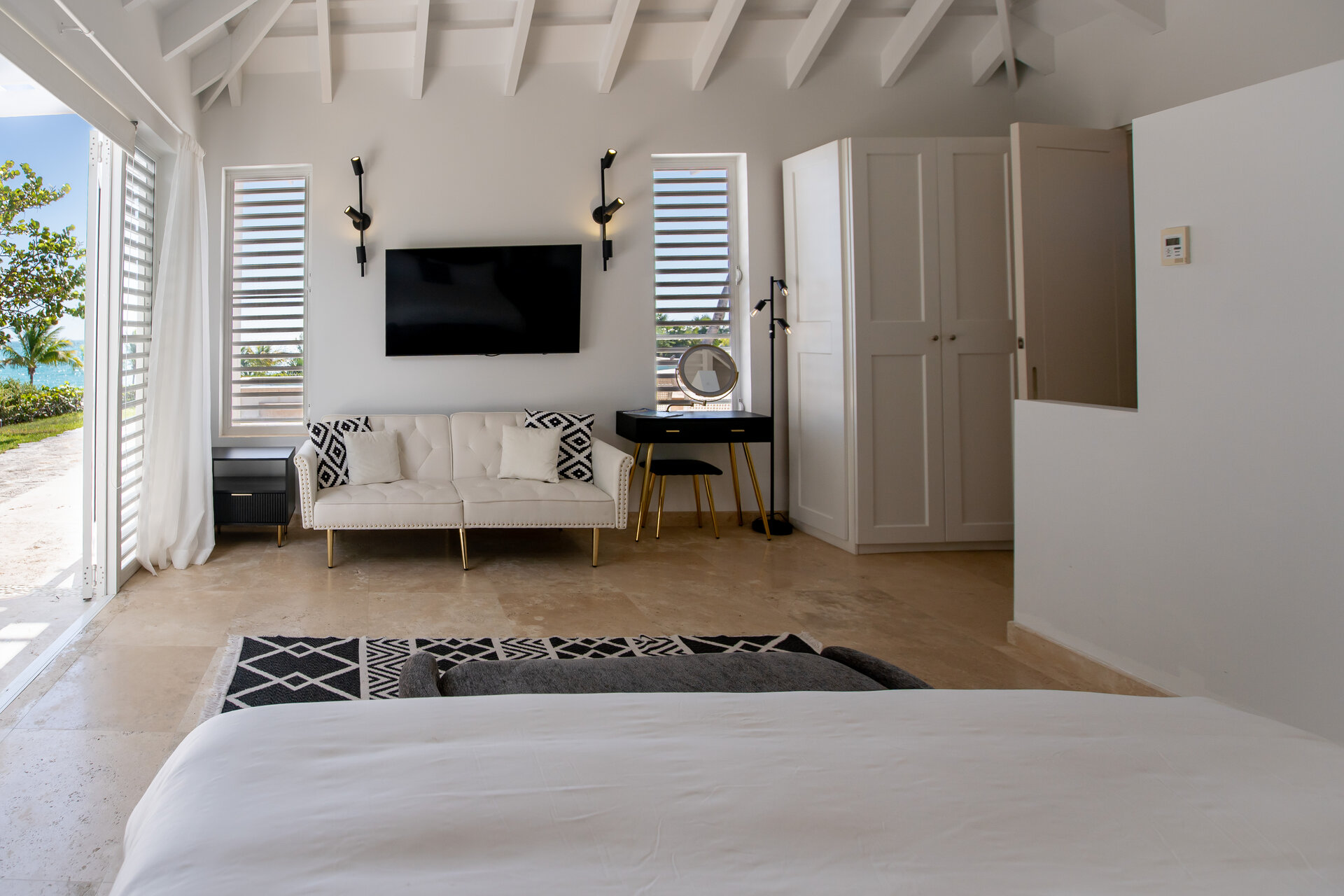 Non metered air conditioning and ceiling fans are installed throughout the villa, maintaining a comfortable climate year round. Shaded terraces and ocean breezes further enhance natural cooling across the estate.