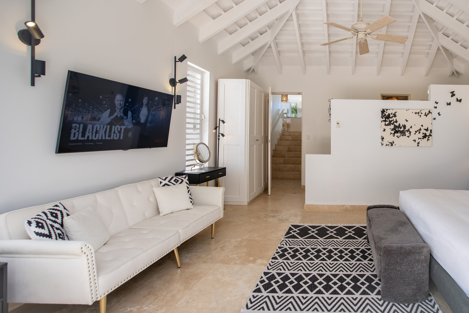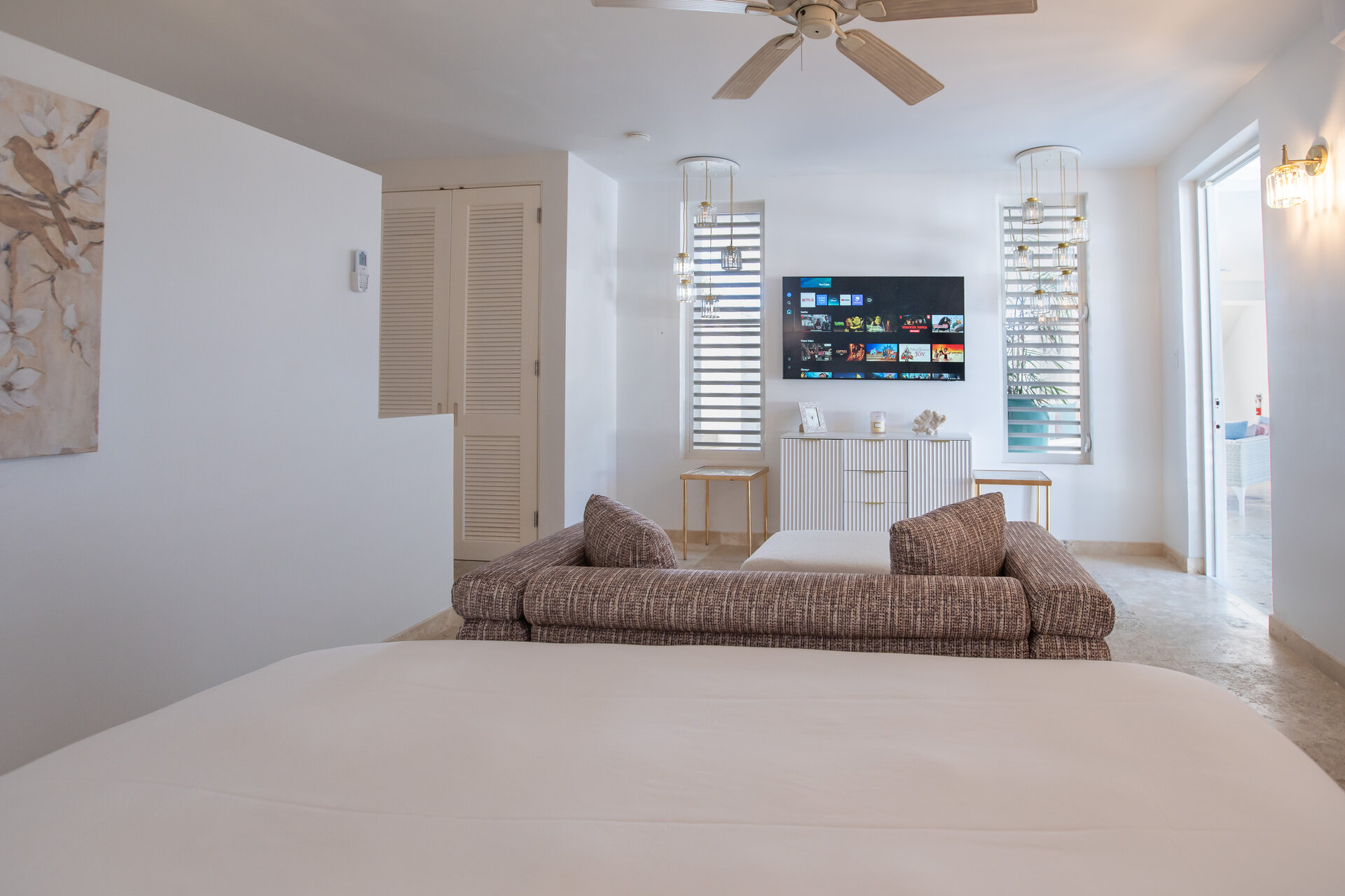High speed Wi Fi is available throughout the villa, ensuring reliable connectivity in all living areas and bedrooms. The layout allows for comfortable remote working when required, without compromising the relaxed flow of the home.